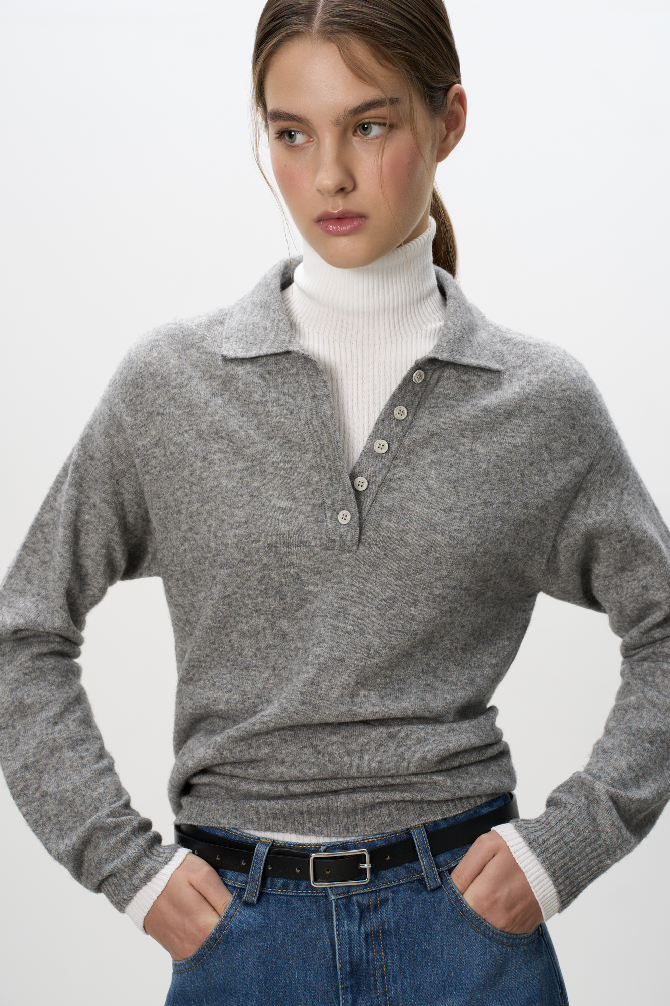 Джемпер из кашемира и шерсти с воротником поло