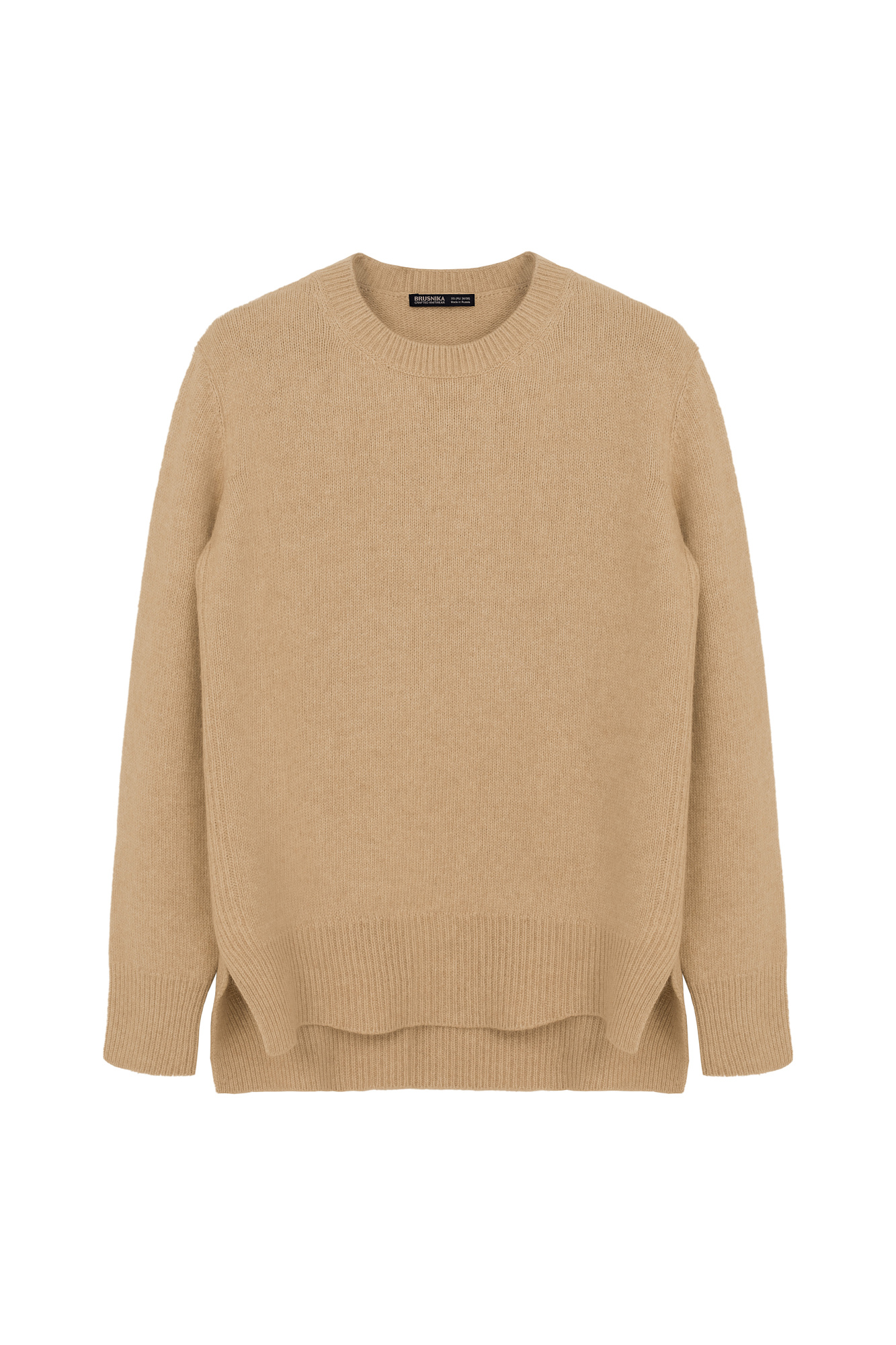 Трикотажный джемпер из кашемира и шерсти. Модель свободного силуэта с удлиненной спинкой и разрезами по бокам. Манжеты рукавов и низ изделия выполнены в рубчик.