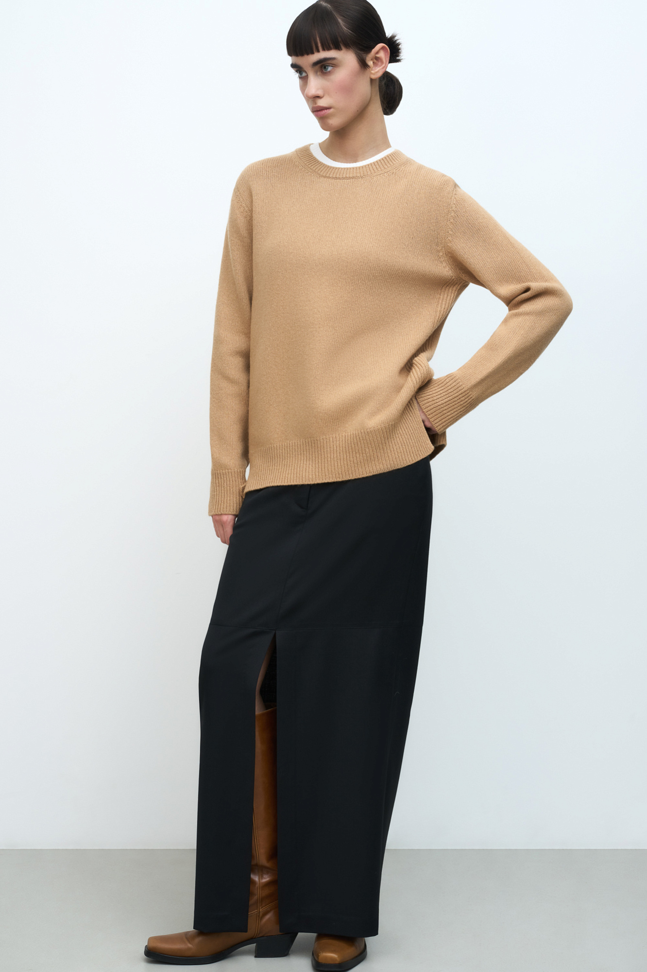 Джемпер из кашемира и шерсти с удлиненной спинкой