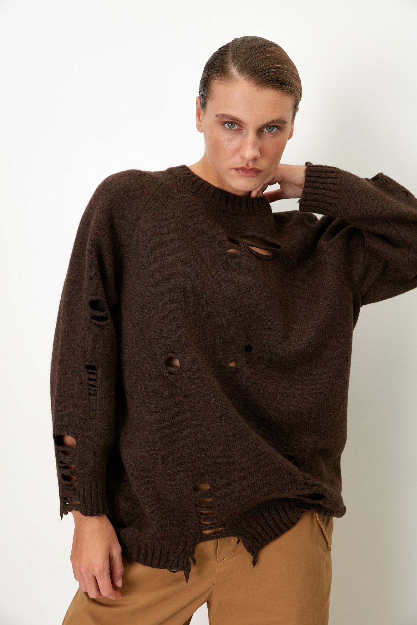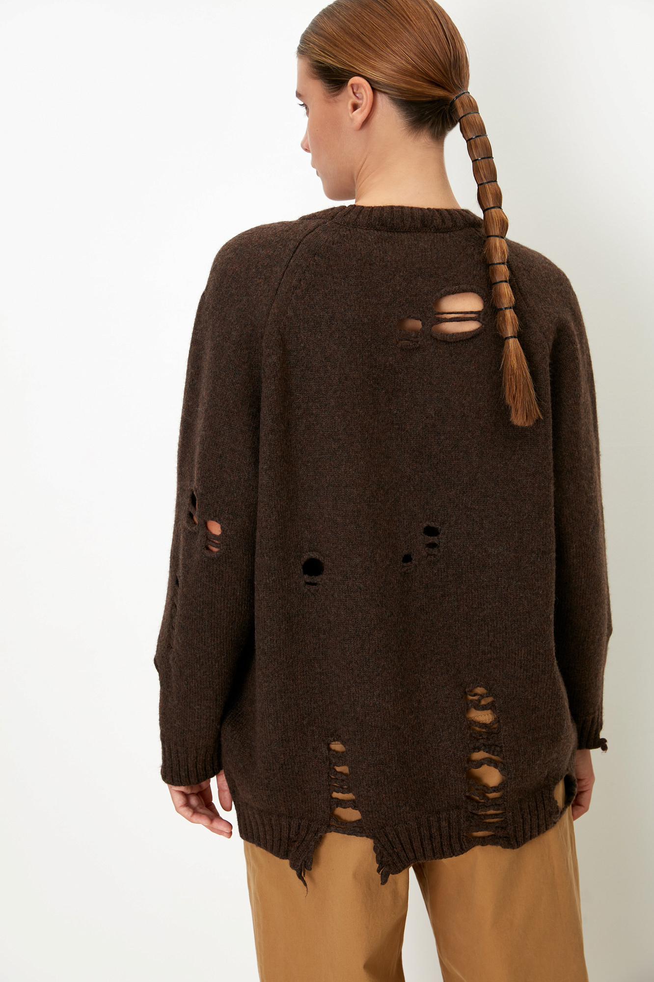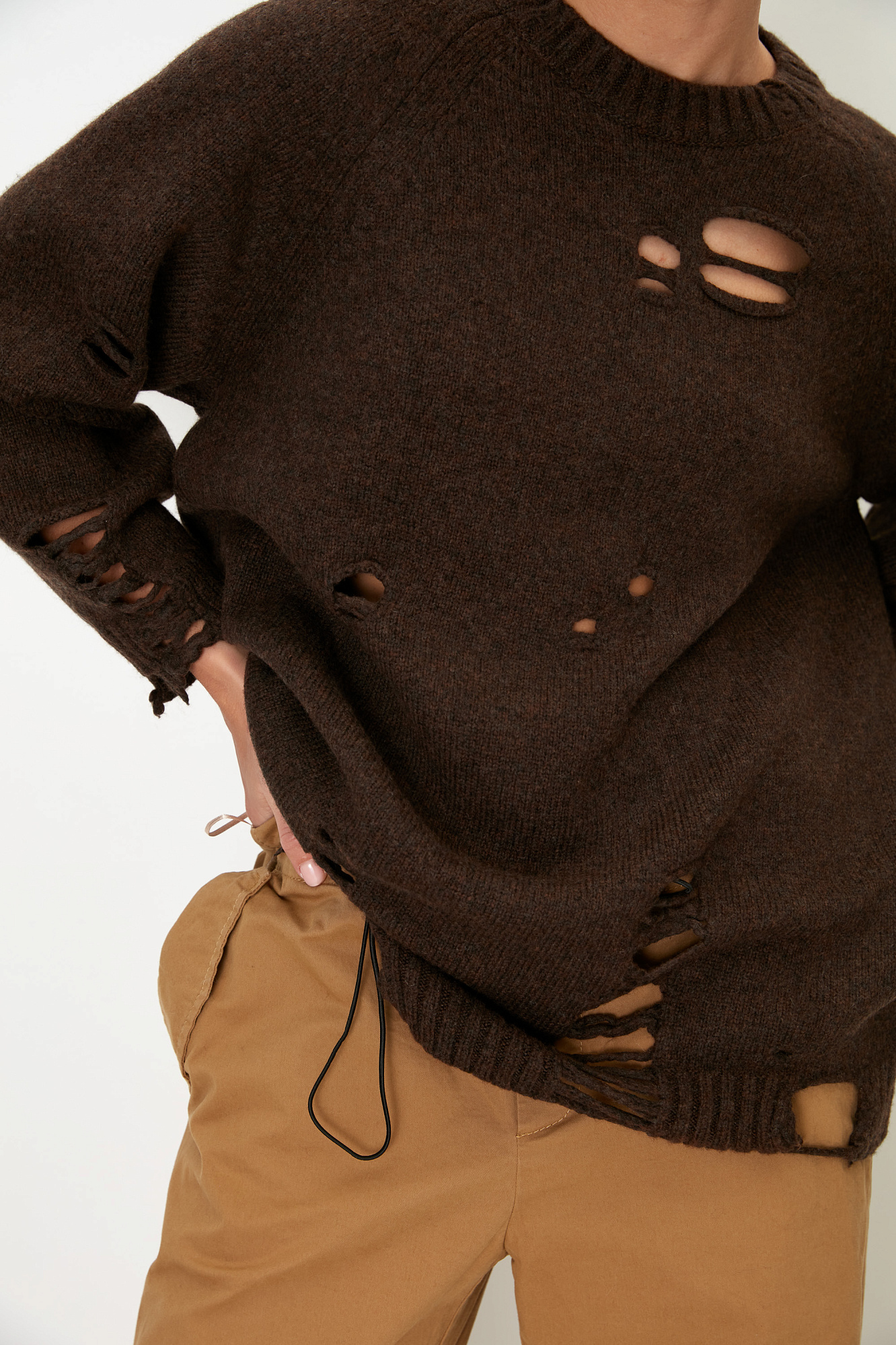 Трикотажный джемпер с разрезами в стиле гранж