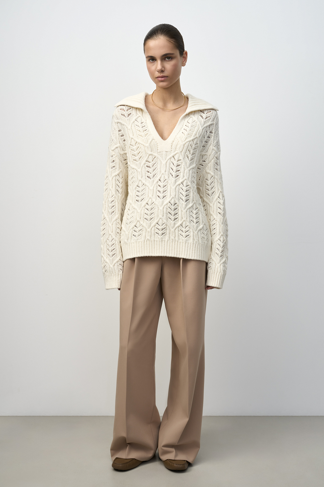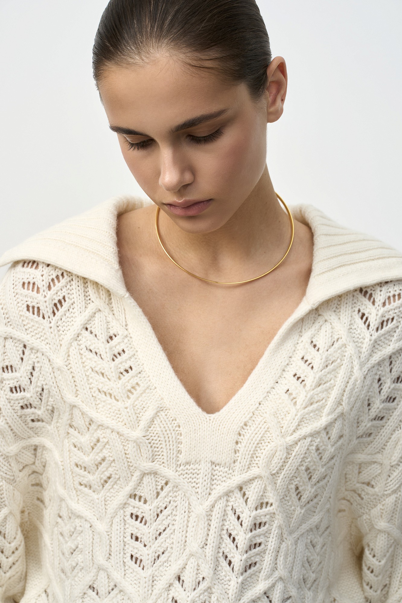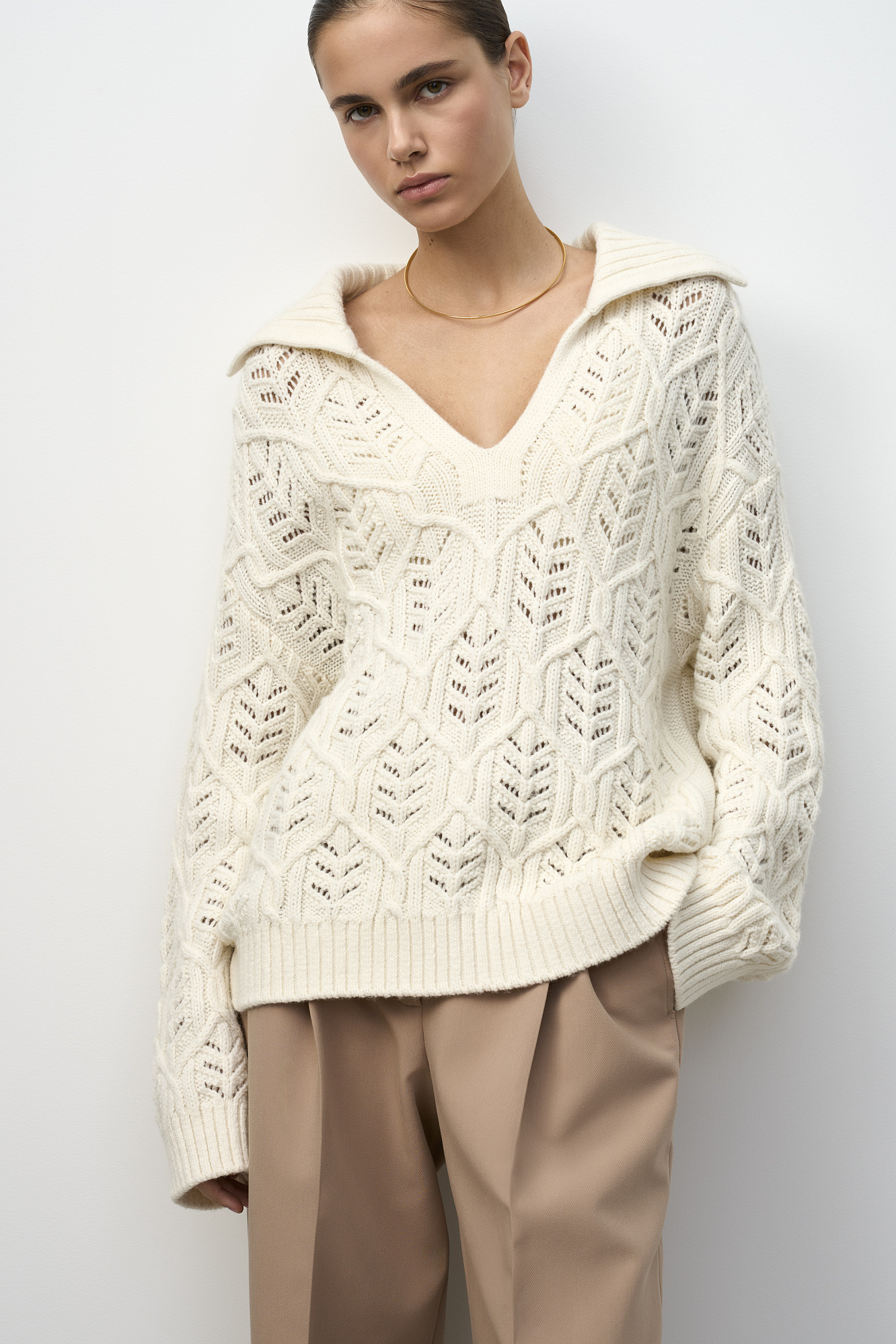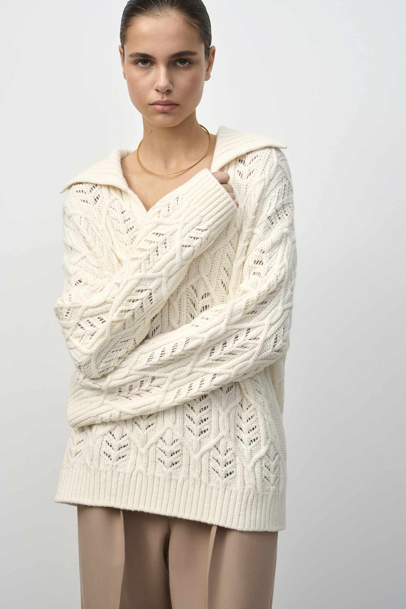 Ажурный джемпер с воротником