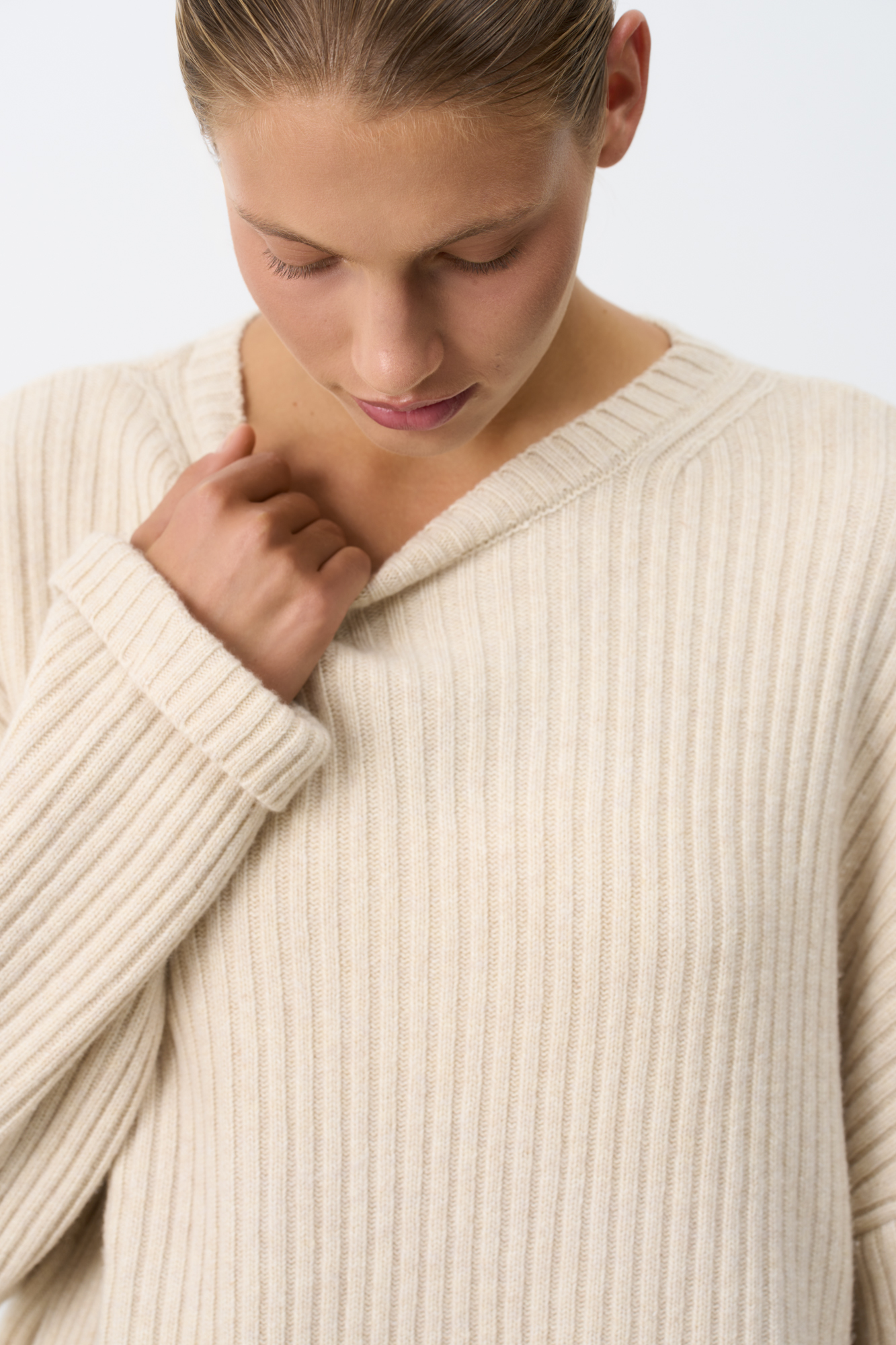 Джемпер из кашемира и шерсти в широкий рубчик