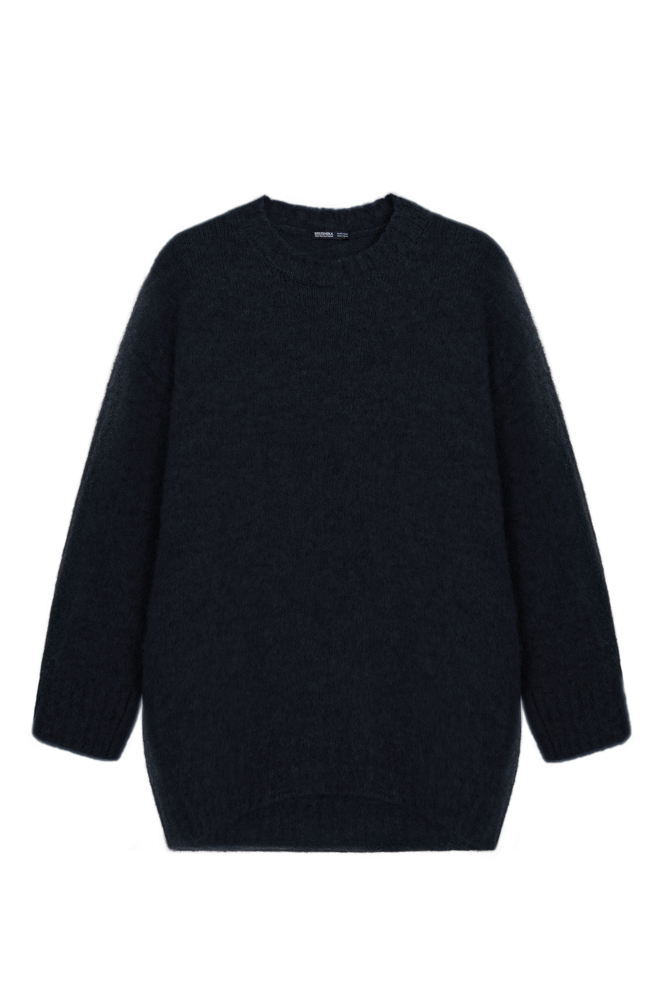 Трикотажный джемпер из пушистой пряжи на основе шерсти альпака. Модель свободного силуэта со спущенной линией плеча. Края изделия в рубчик.