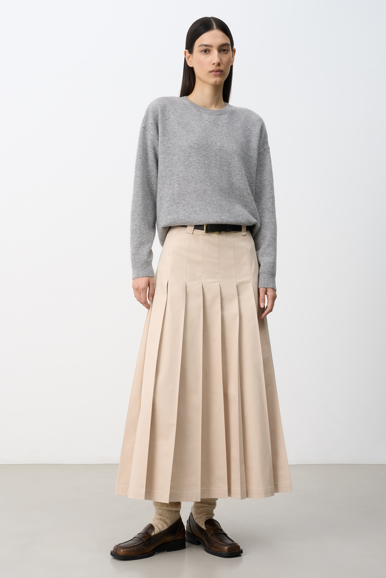 Трикотажный джемпер из 100% кашемира. Модель свободного силуэта со спущенной линией плеча и закругленным нижним краем. Края изделия в рубчик.