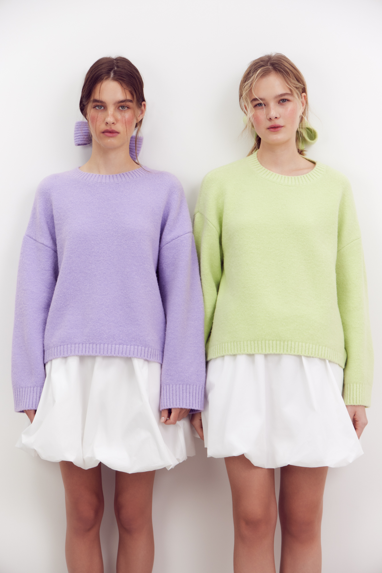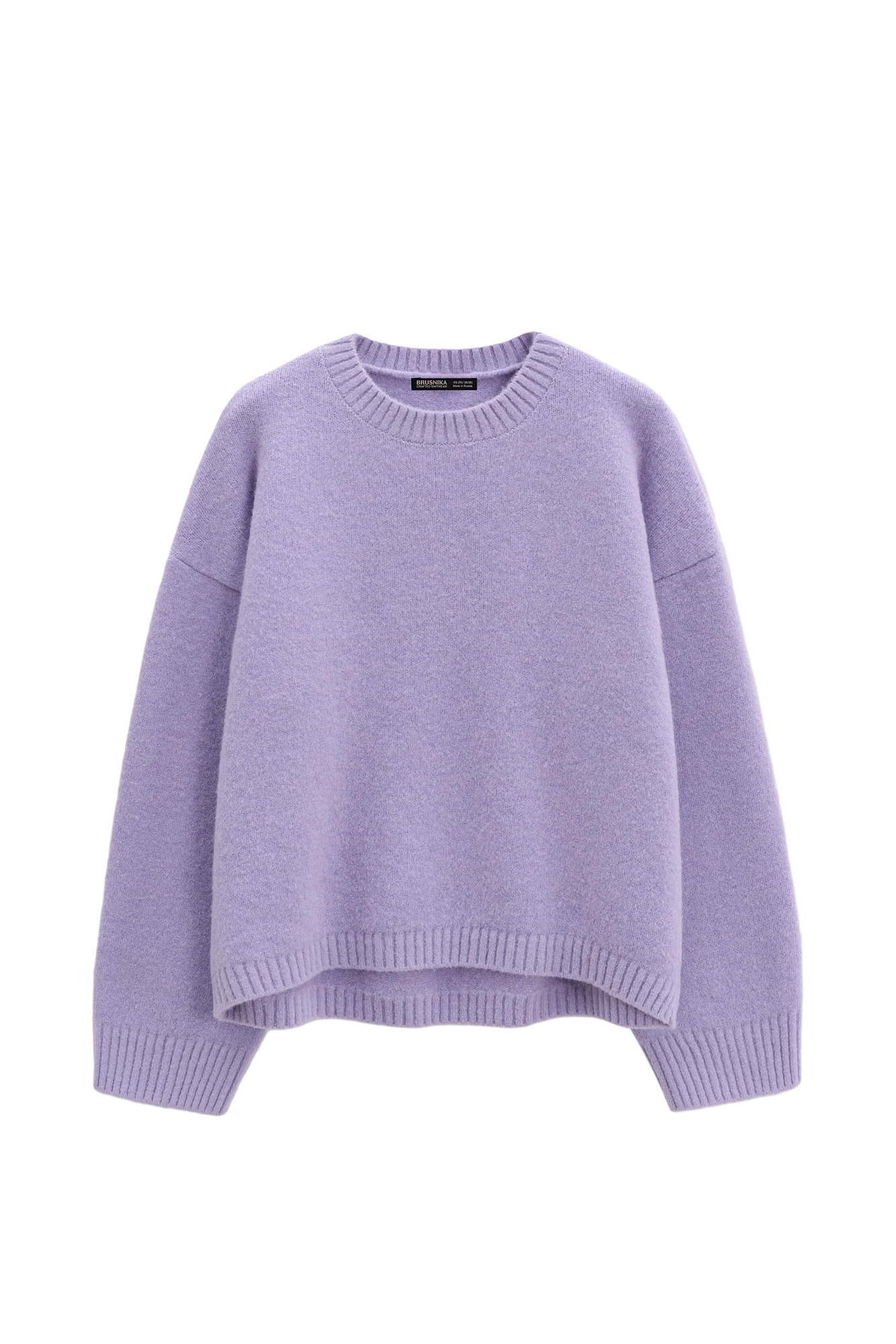 Трикотажный джемпер из смесовой шерсти с добавлением мохера. Модель свободного силуэта со спущенной линией плеч и круглым вырезом горловины. Края изделия выполнены в рубчик.Дополнить образ можно юбкой.