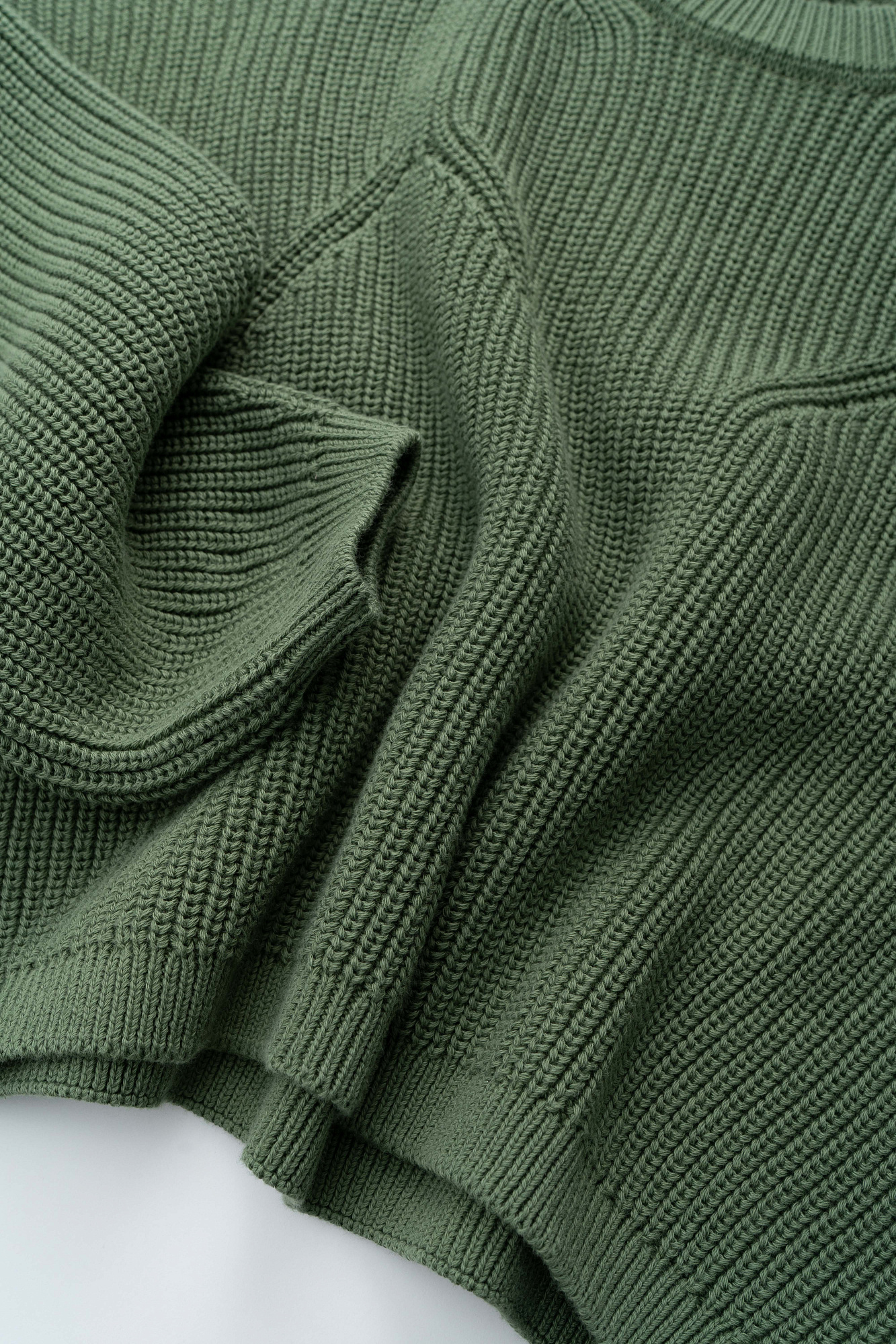 Трикотажный джемпер из 100% хлопка с декоративными сбавками на груди и воротнике. модель свободного силуэта со спущенной линией плеч и круглым вырезом горловины. Манжеты рукавов и низ изделия выполнены на эластичной резинке.