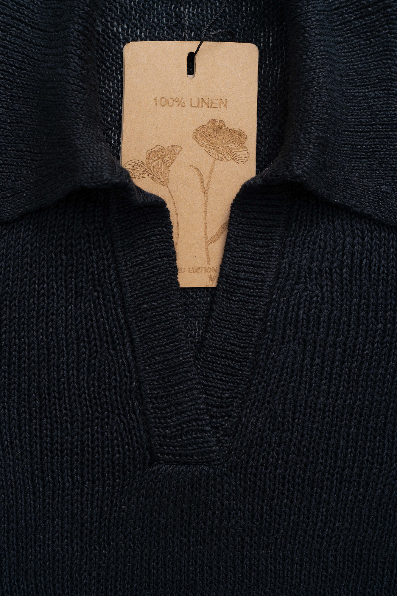 Джемпер из 100% льна с воротником поло