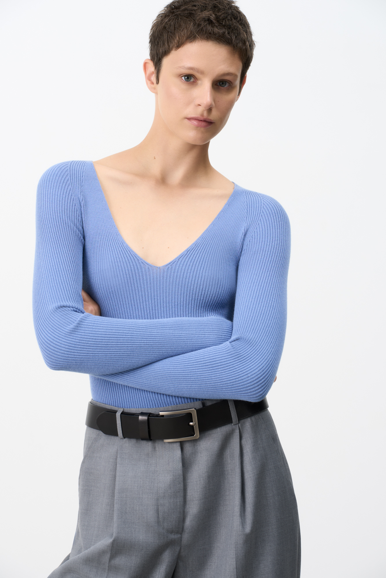 Лонгслив с V-образным вырезом
