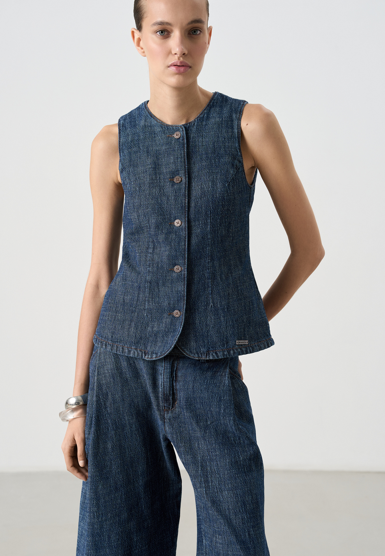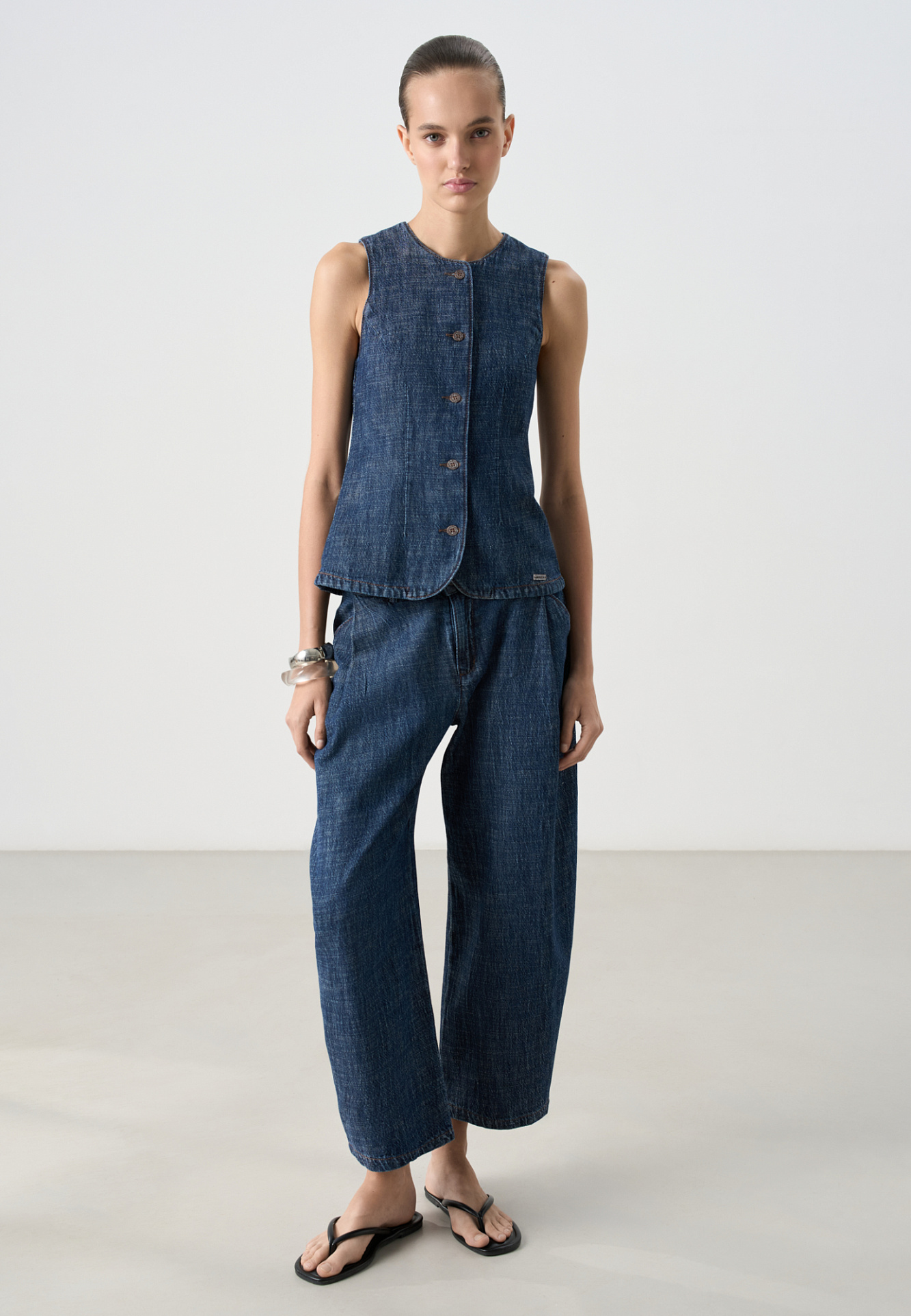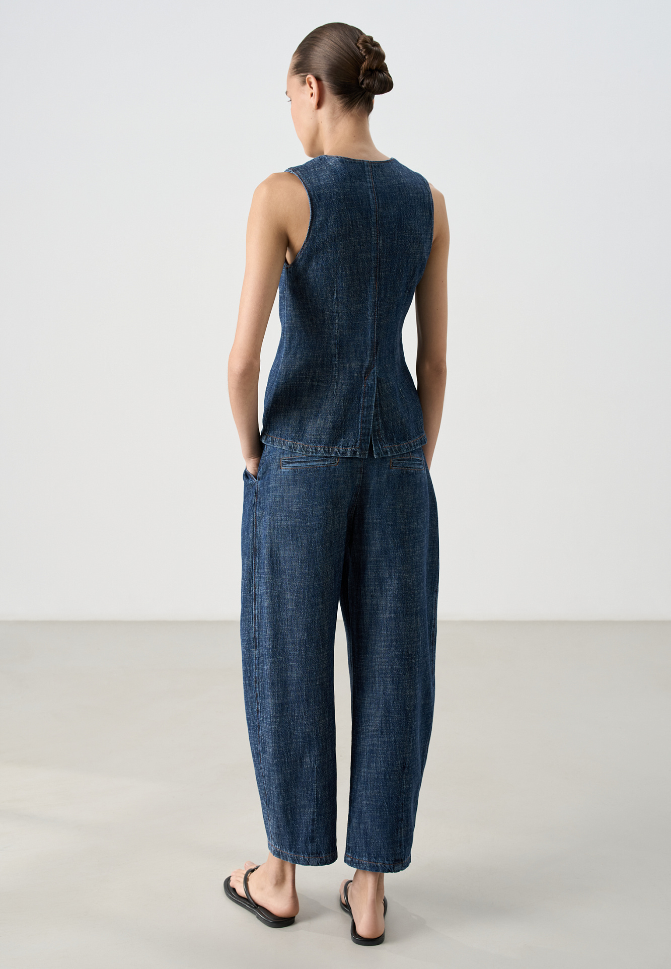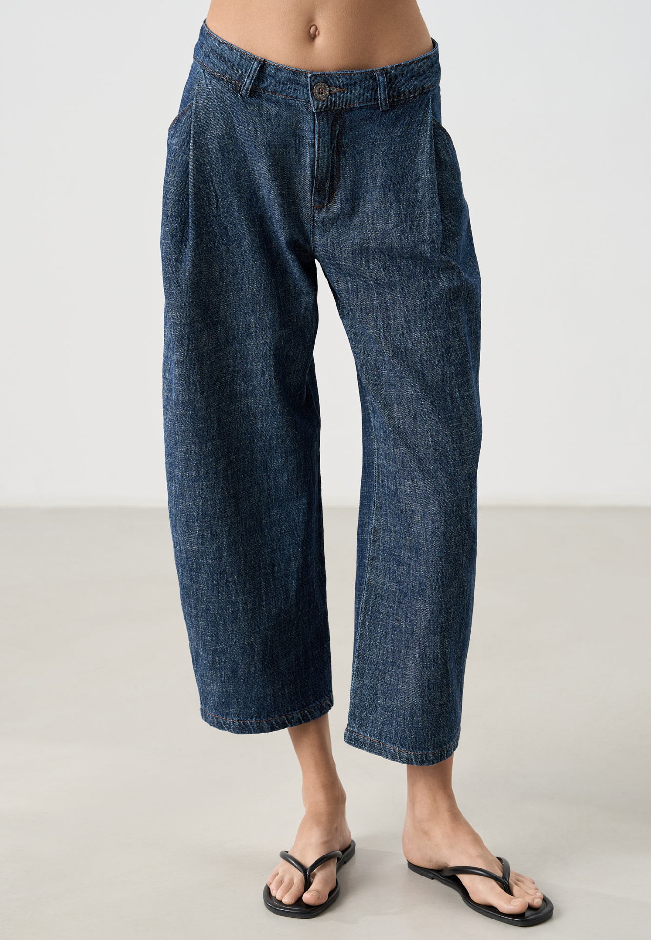 Джинсы с защипами на карманах