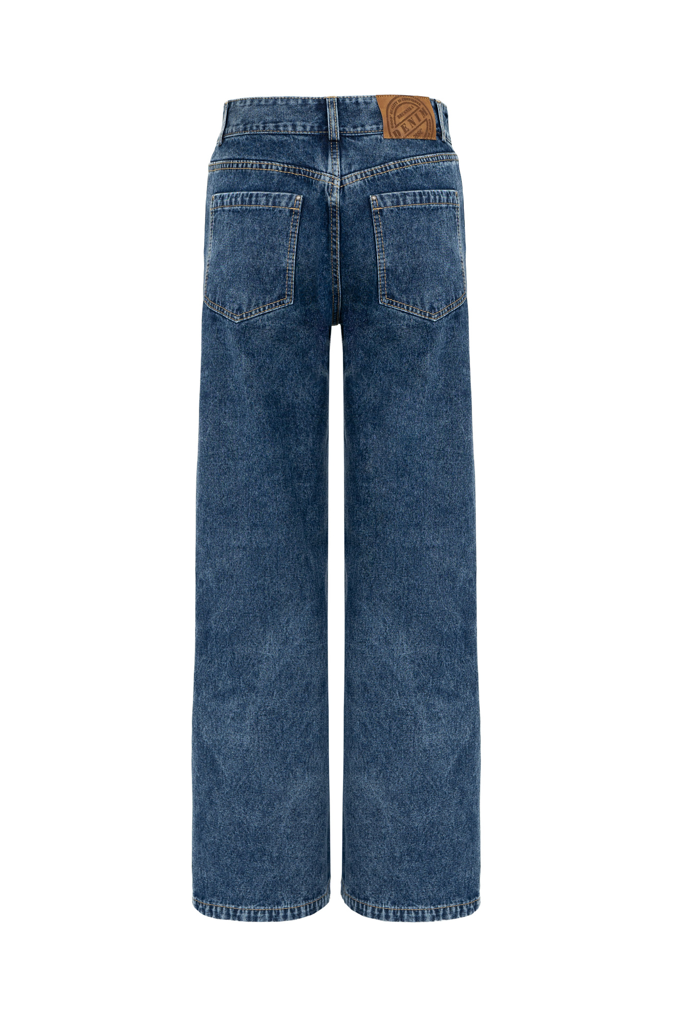 Широкие джинсы из 100% хлопка с боковыми карманами, кулиской и потайной застежкой на молнии и пуговицу. Дополнить образ можно джинсовкой или корсетом.