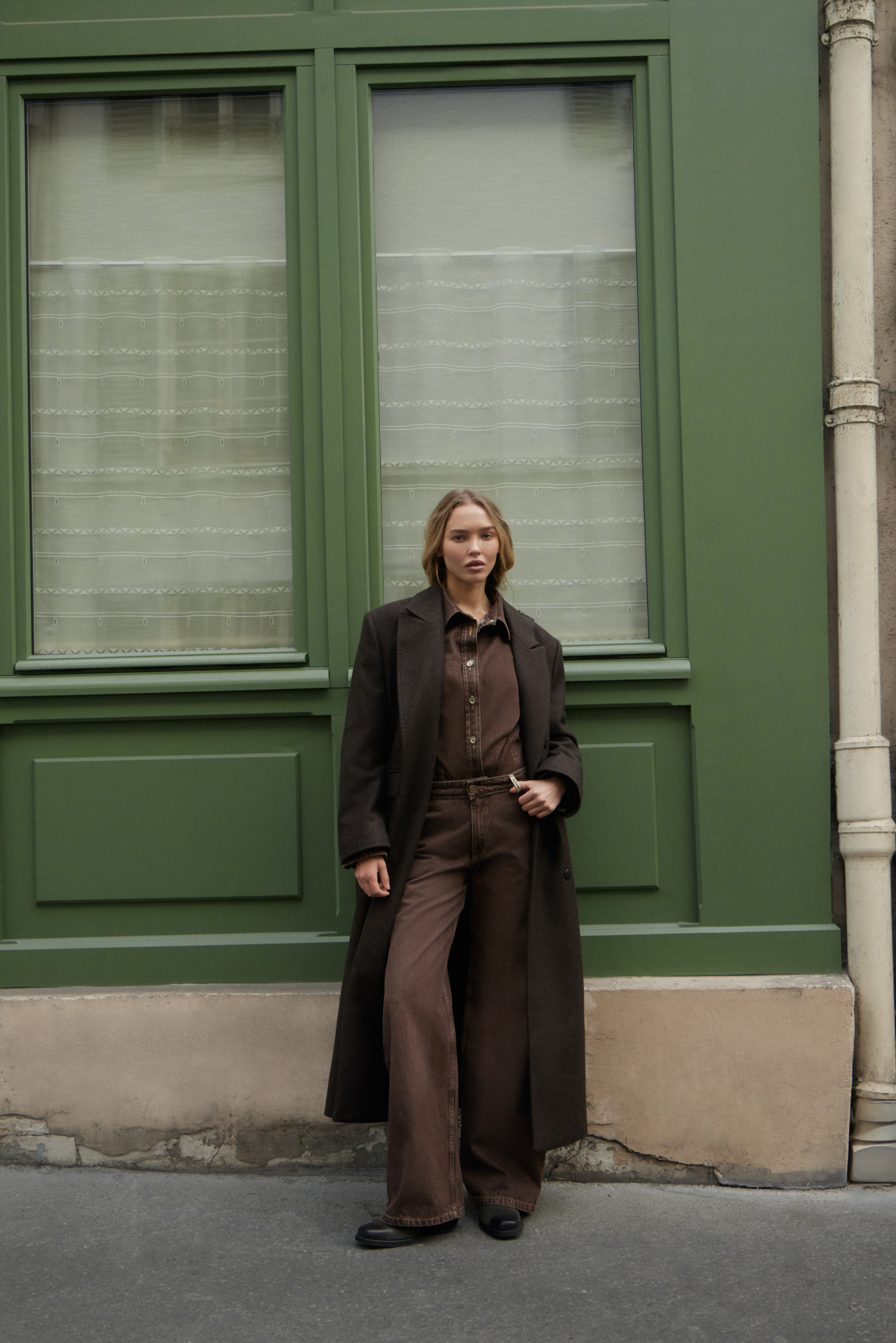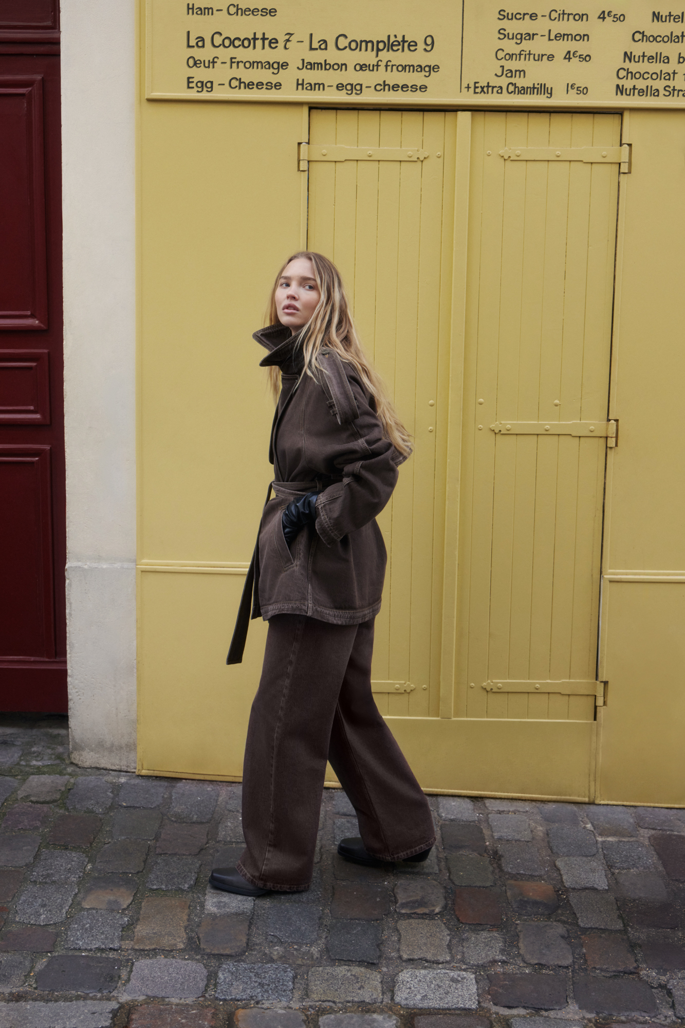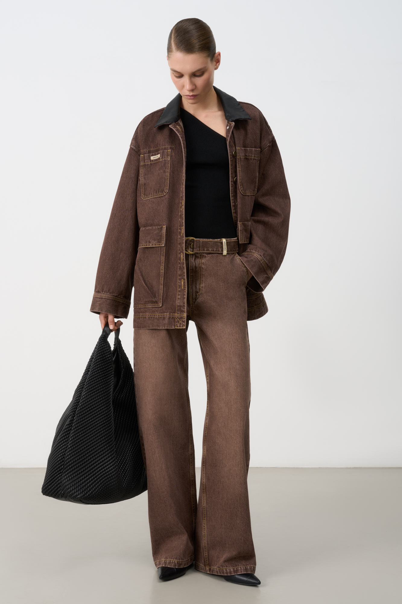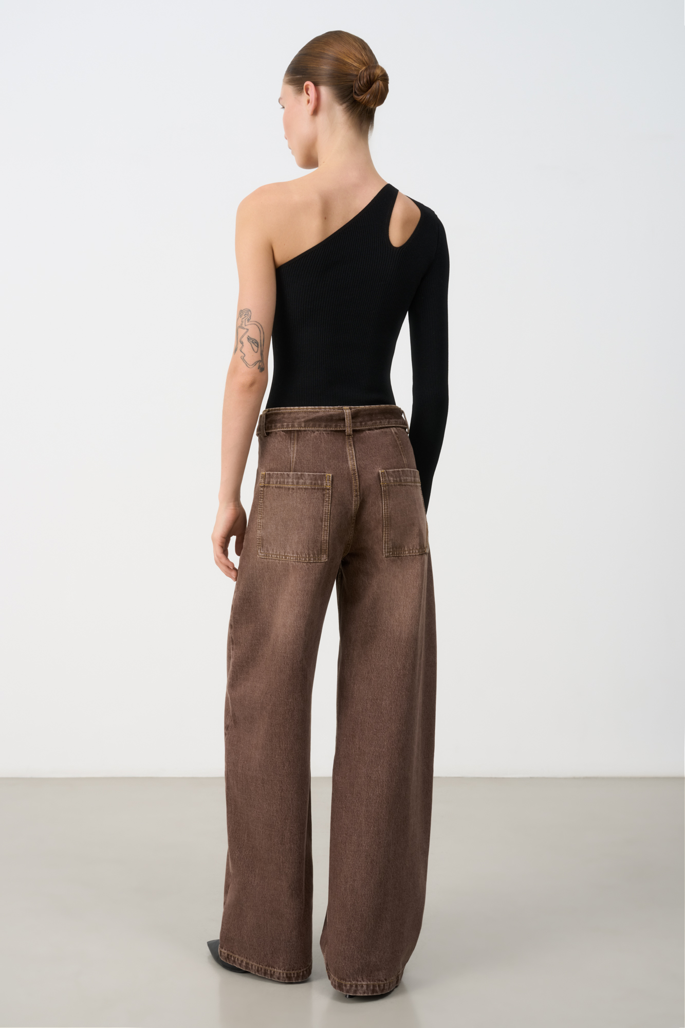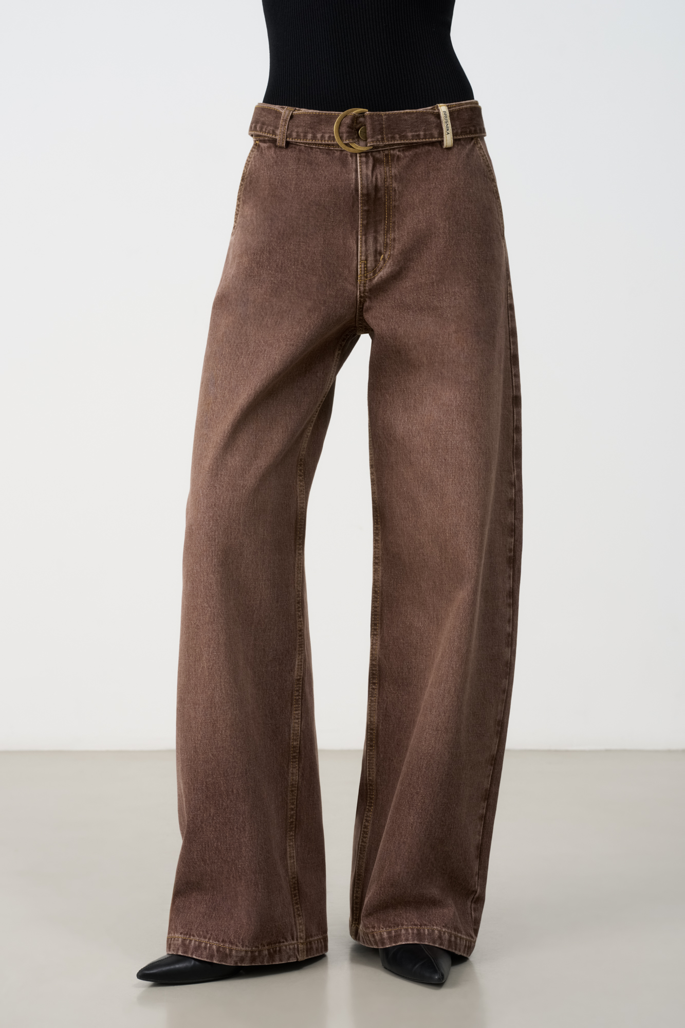 Прямые джинсы со средней посадкой из 100% хлопка с боковыми карманами. Модель дополнена поясом. Застежка на молнию и пуговицу.