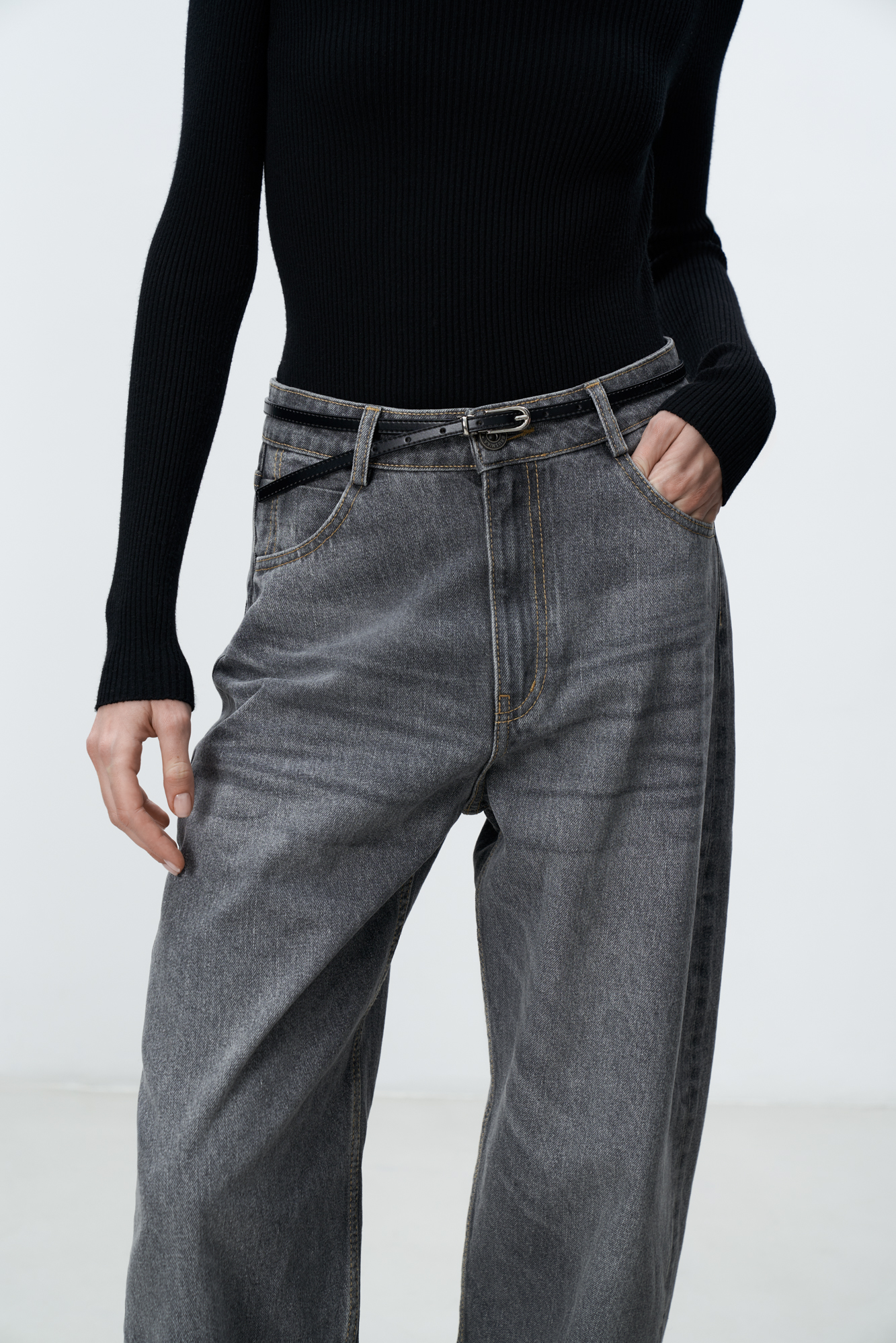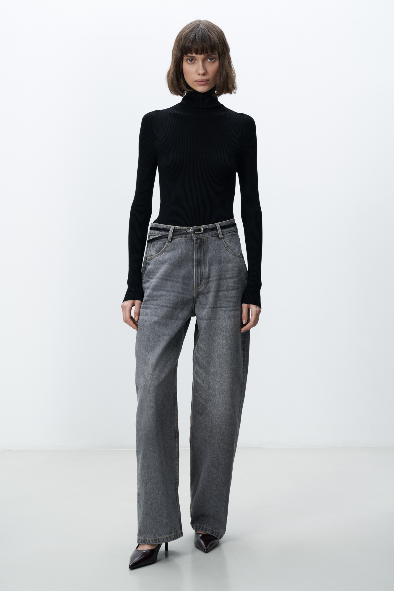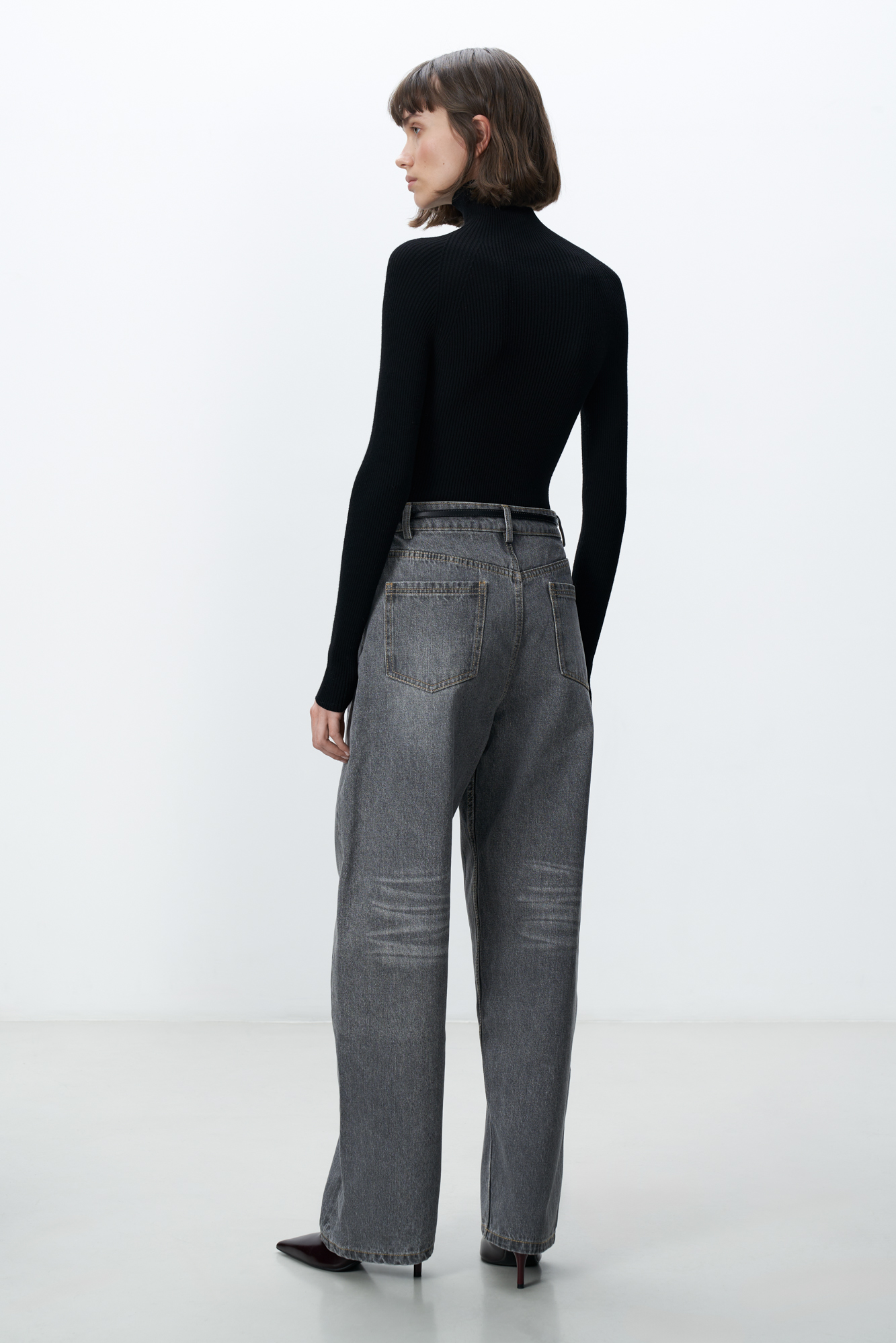 Прямые джинсы из 100% хлопка. Модель свободного силуэта со средней посадкой, пять карманов. Застежка на молнию и пуговицу.