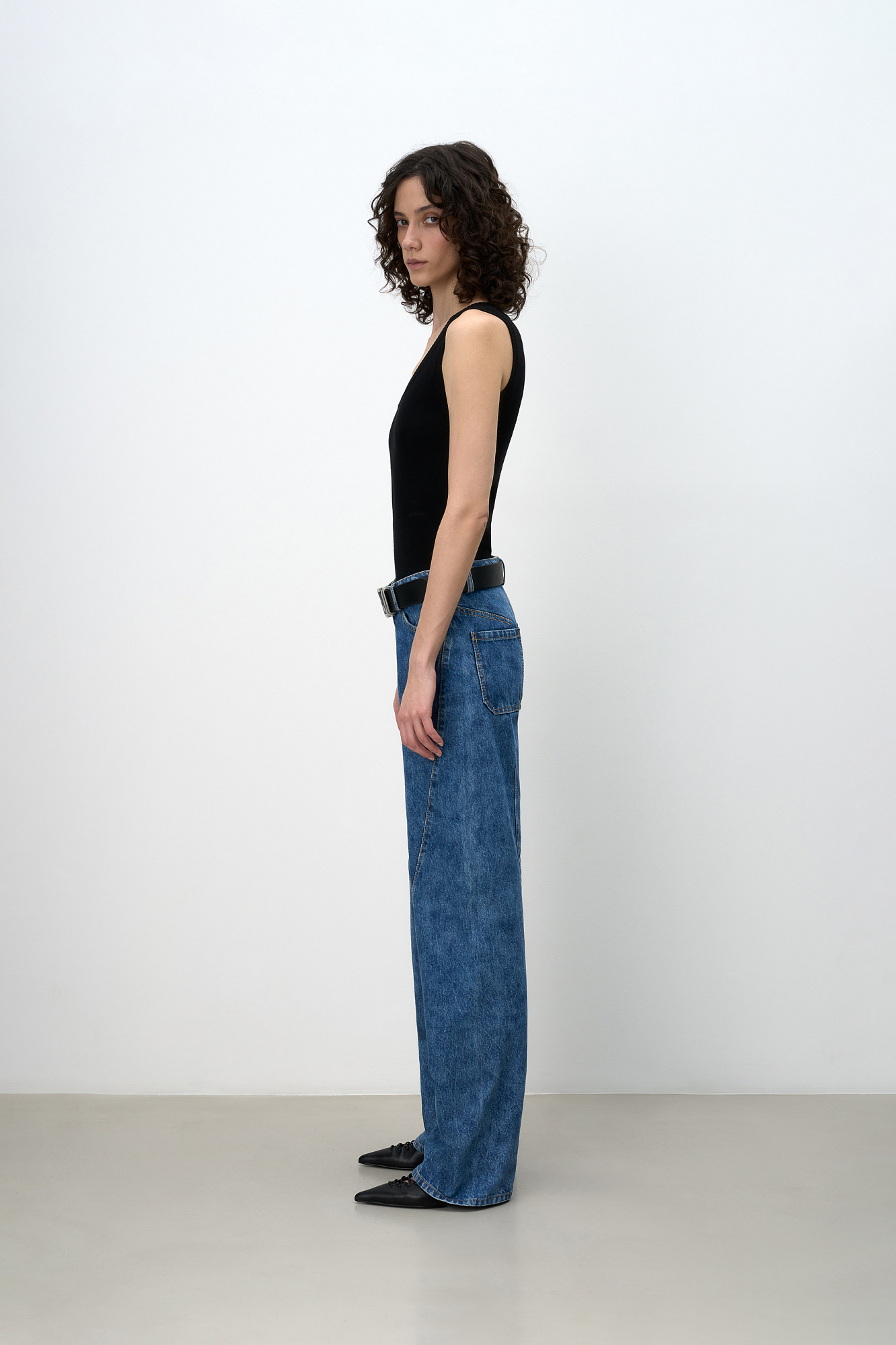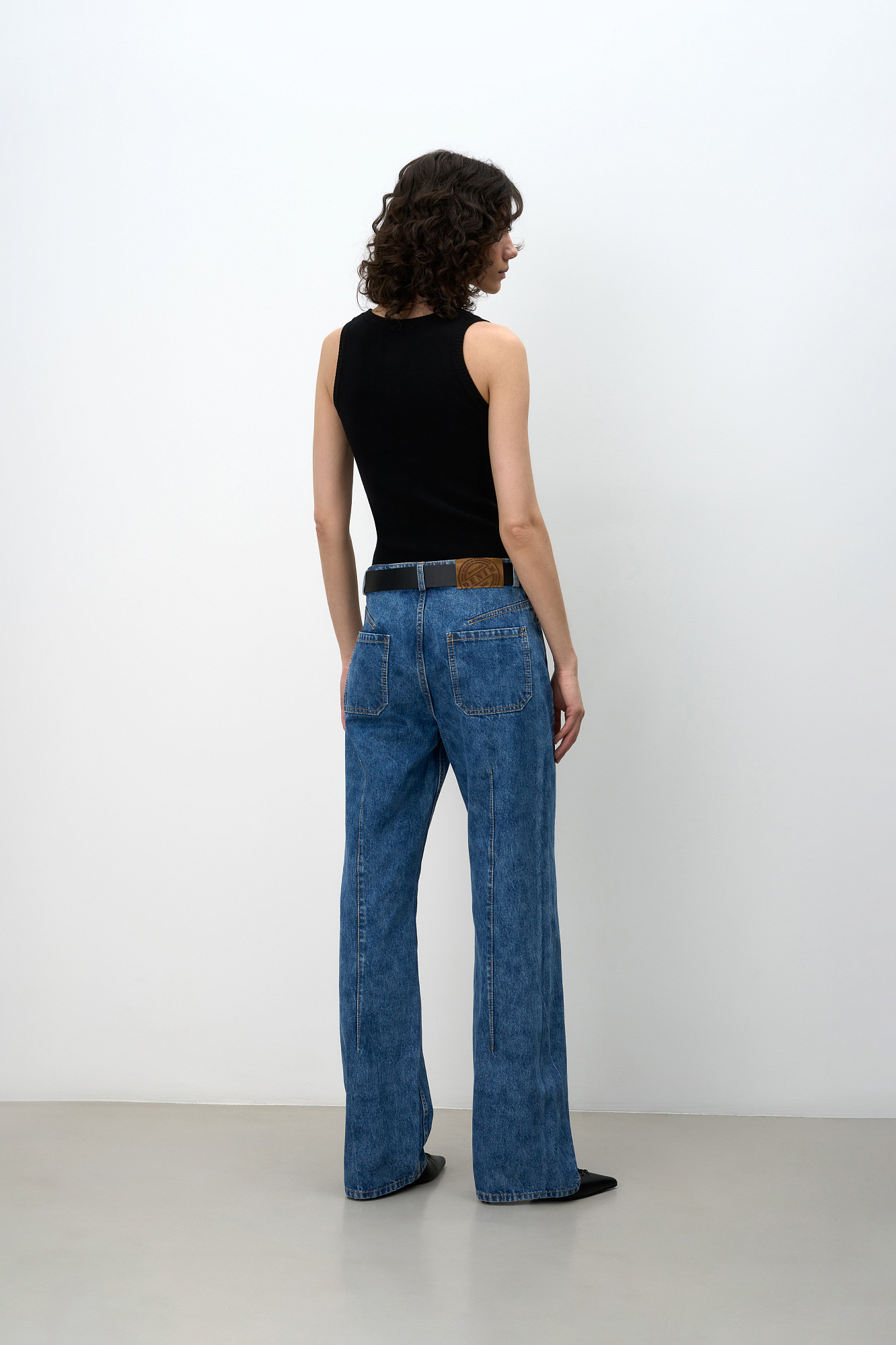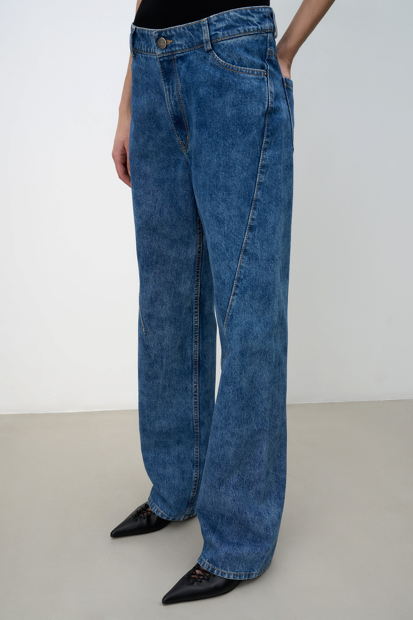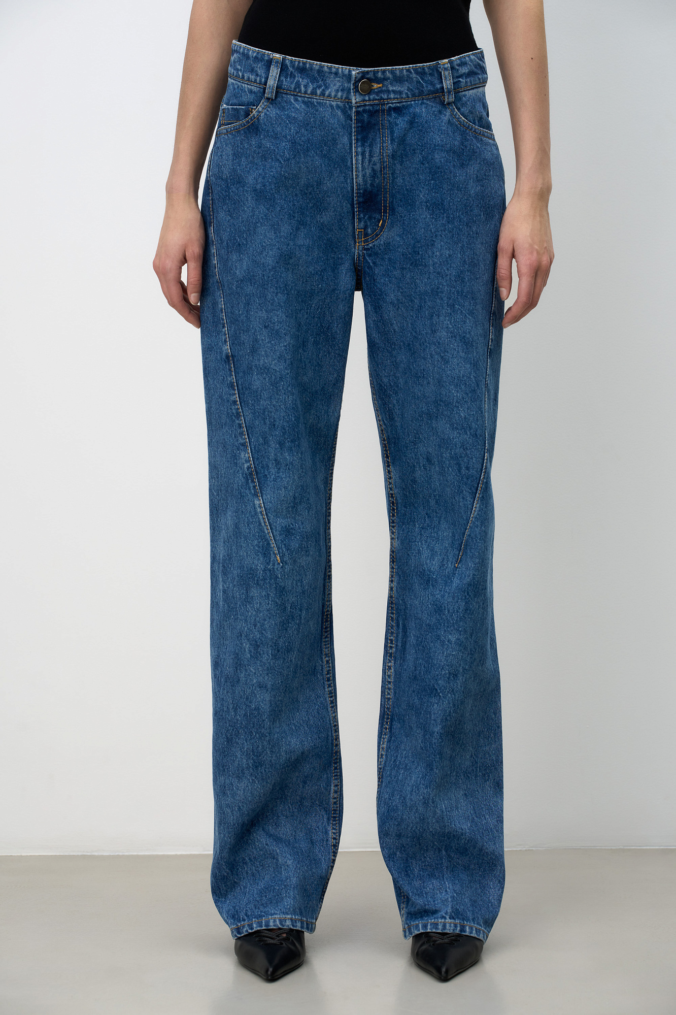 Прямые джинсы из 100% хлопка. Модель прямого кроя, заужена к низу. Пять карманов. Застежка на молнию и металлическую пуговицу.