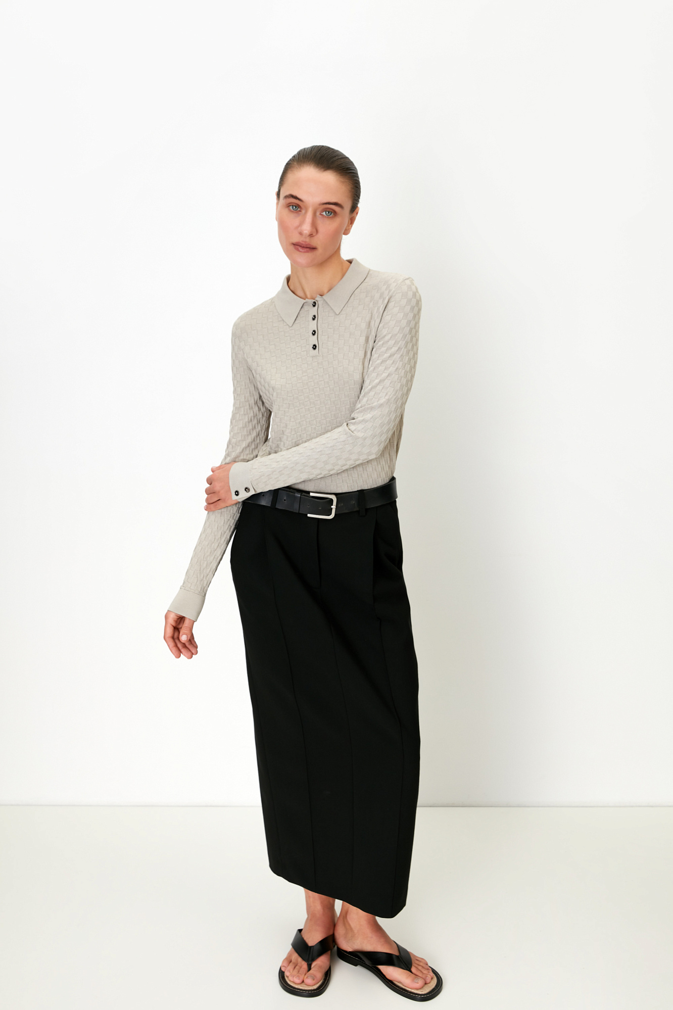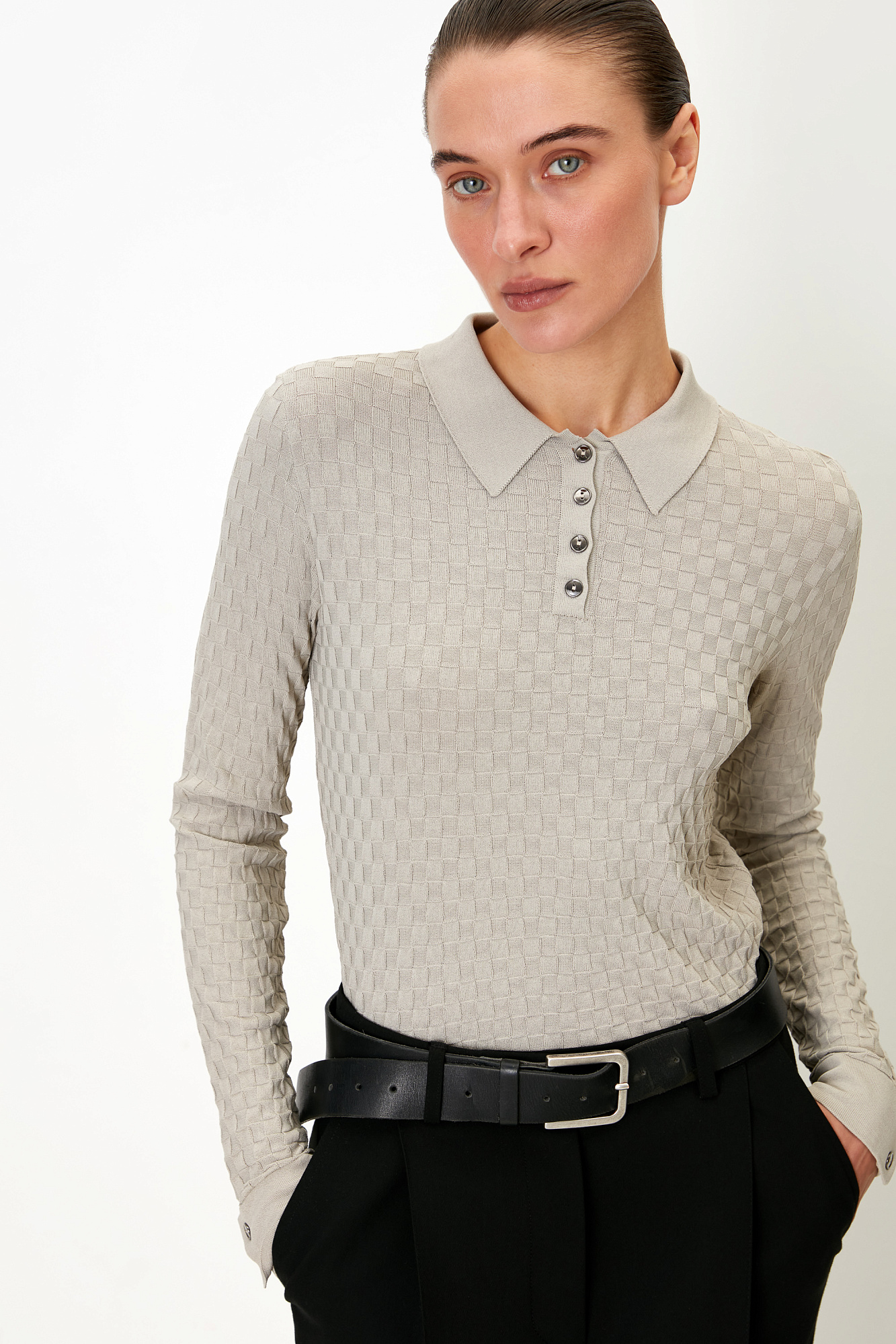 Лонгслив с воротником поло