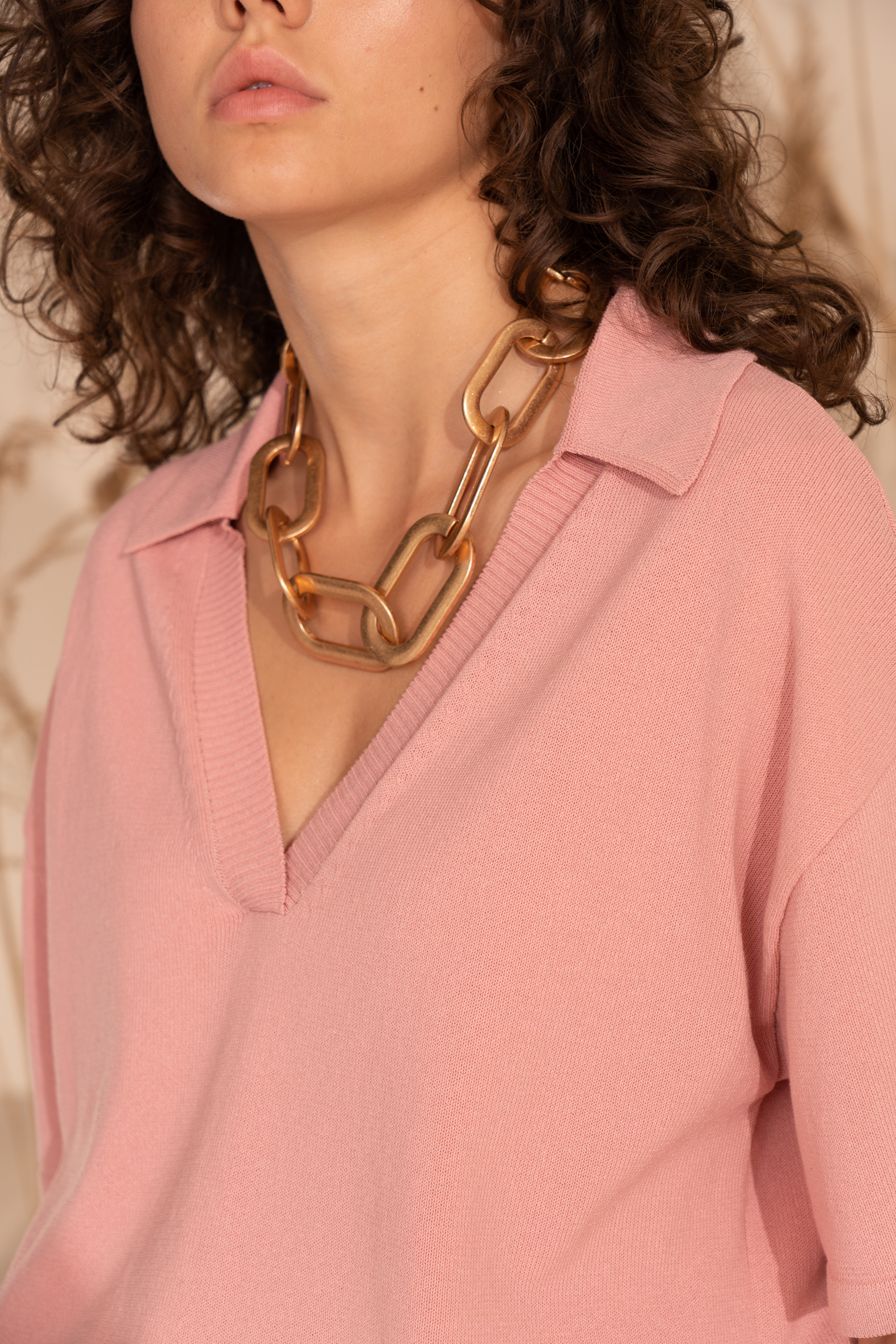 Трикотажная футболка поло из органического хлопка с V-образным вырезом.