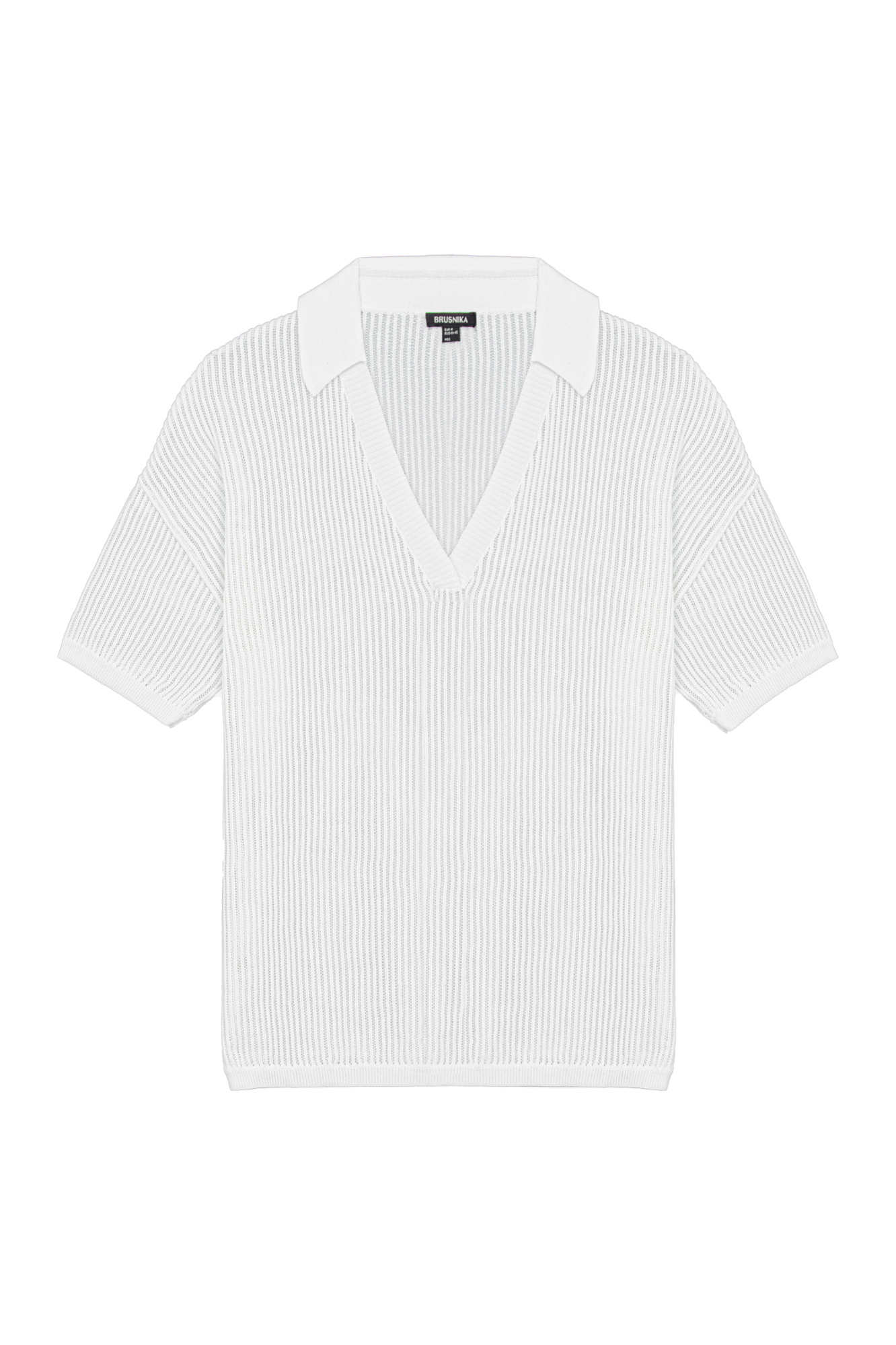 Трикотажная футболка поло из органического хлопка в рельефный рубчик. Модель свободного силуэта со спущенной линией плеча и воротником-поло.