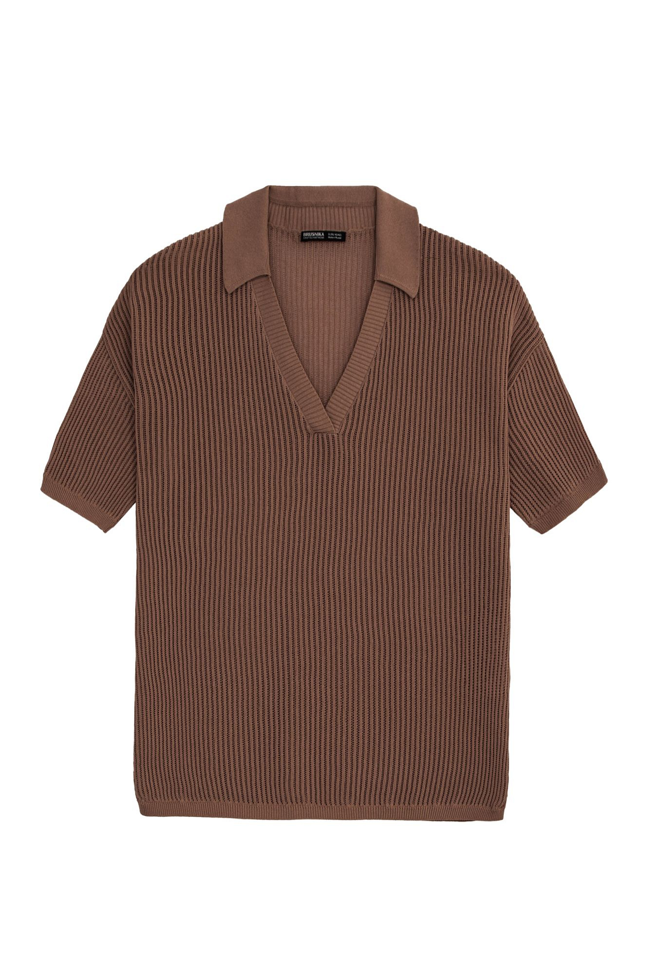 Трикотажная футболка поло из органического хлопка в рельефный рубчик. Модель свободного силуэта со спущенной линией плеча и воротником-поло.