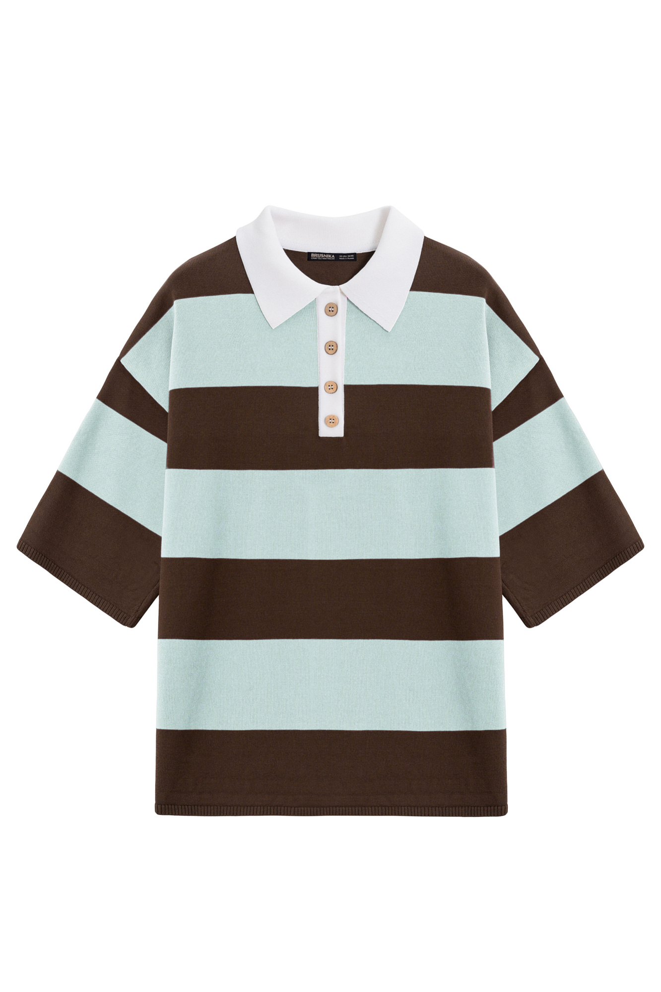 Трикотажная футболка поло из вискозы. Модель свободного кроя со спущенной линией плеч и отложным воротником с V-образным вырезом.