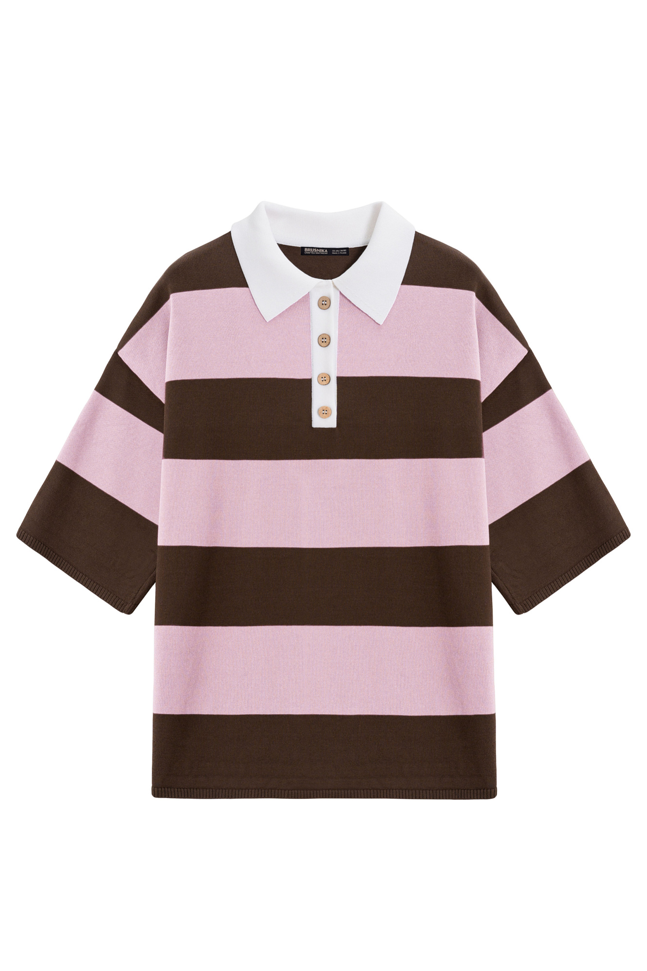 Трикотажная футболка поло из вискозы. Модель свободного кроя со спущенной линией плеч и отложным воротником с V-образным вырезом.