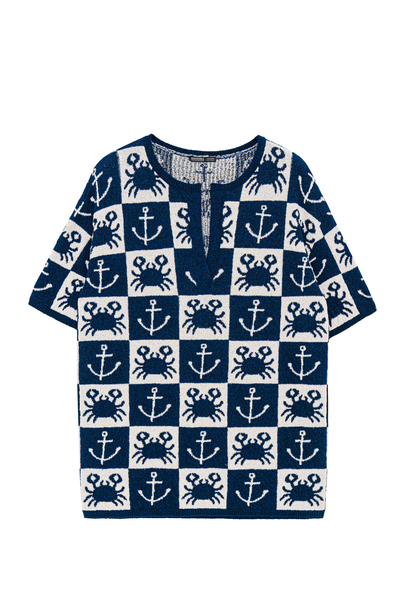 Футболка из 100% хлопка с махровой текстурой. Модель с коротким рукавом и круглым вырезом горловины и небольшим разрезом.
