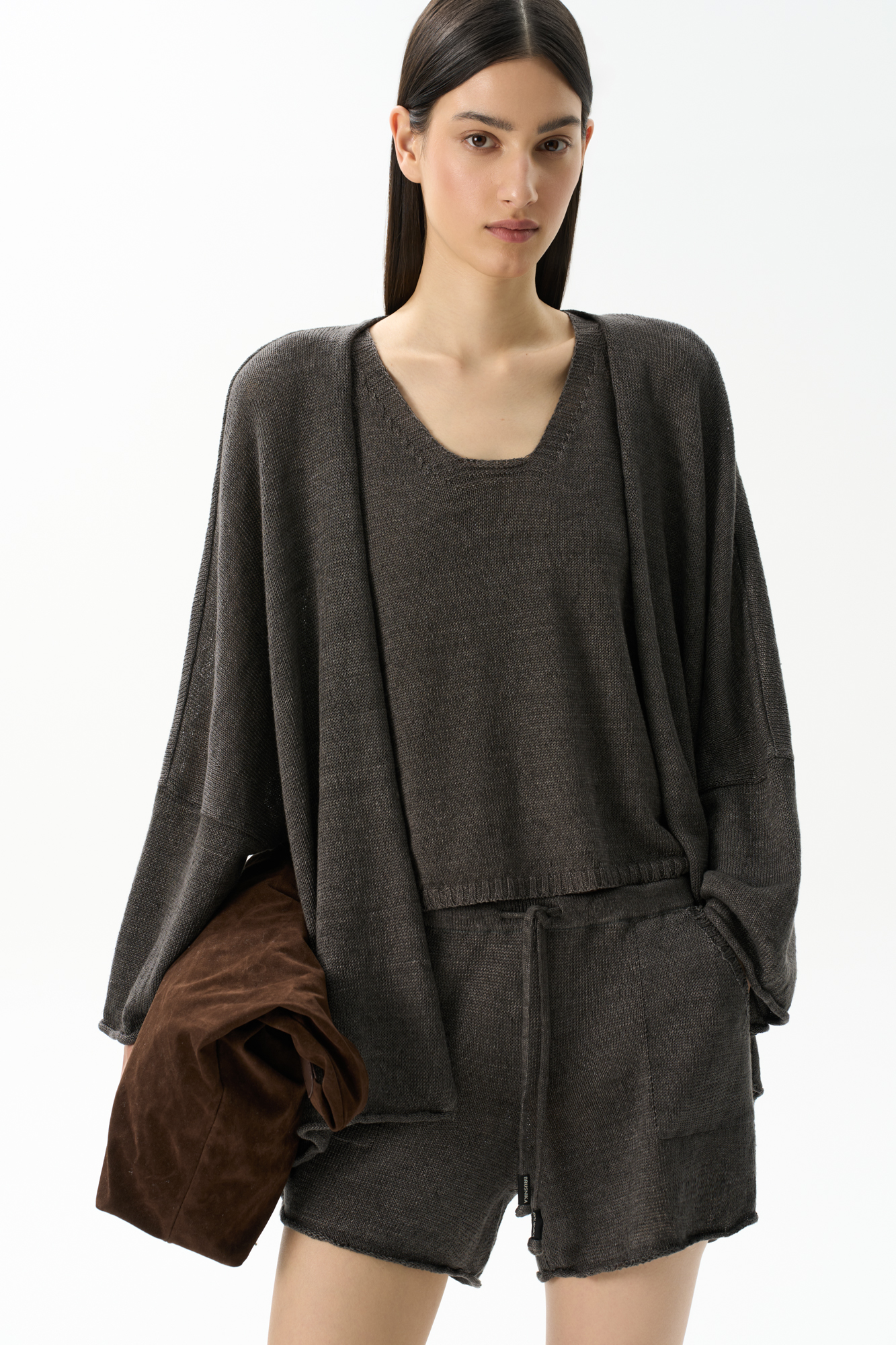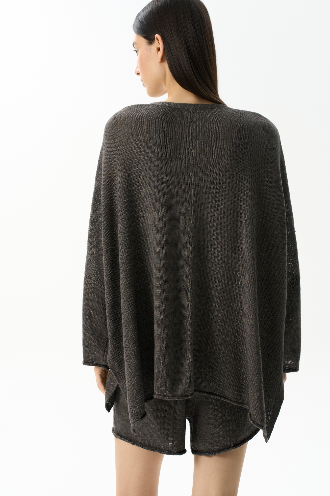 Трикотажный кардиган из 100% льна. Модель свободного кроя, с длинными широкими рукавами и спущенной линией плеч.
