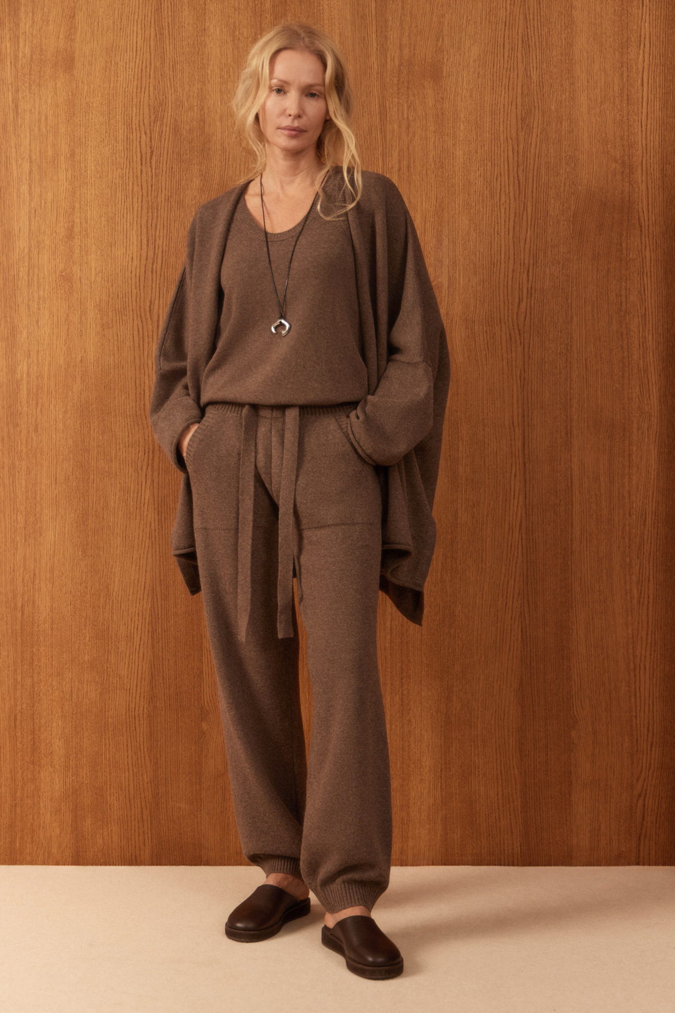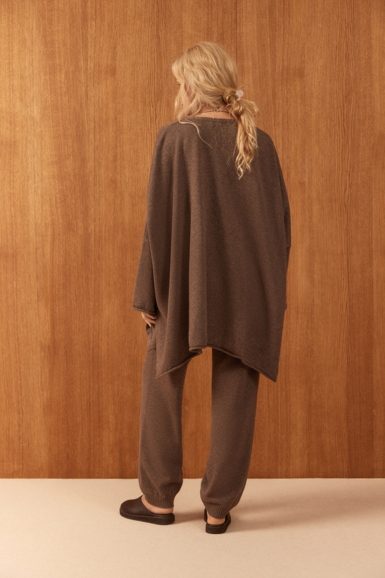 Трикотажный кардиган из шерсти и кашемира. Модель свободного кроя, с длинными широкими рукавами и спущенной линией плеч. Без застежки.
