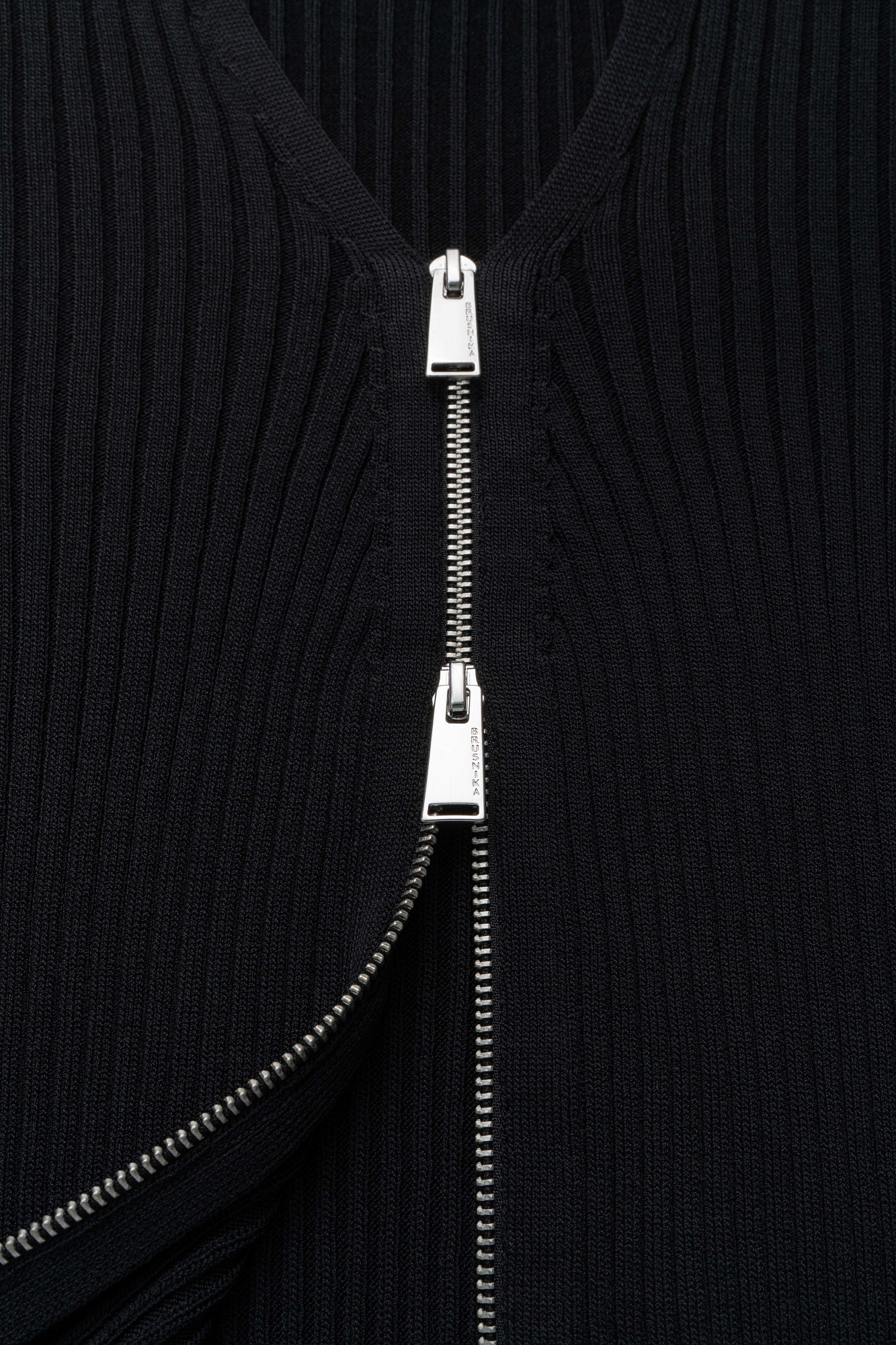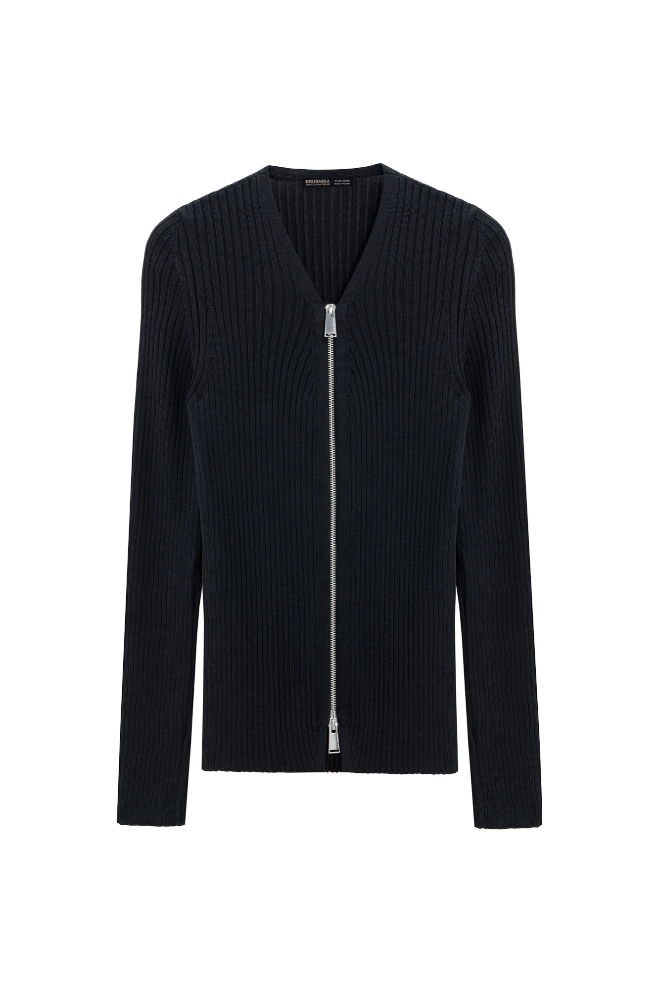 Трикотажный кардиган на молнии из вискозы. Модель прямого силуэта, с длинными рукавами и V-образным вырезом. Изделие выполнено в широкий рубчик