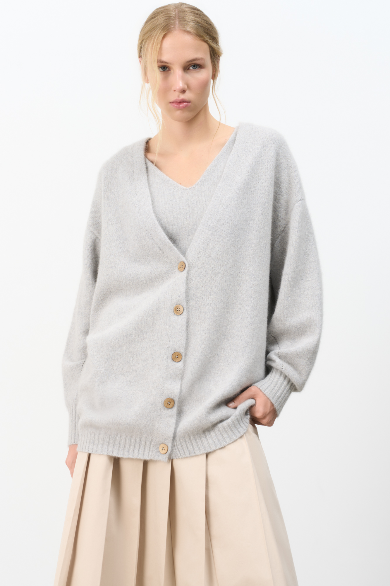 Кардиган из натурального пуха лисы. Содержание в пряже 70% натурального пуха лисы делает кардиган теплым и в тоже время очень легким и мягким.