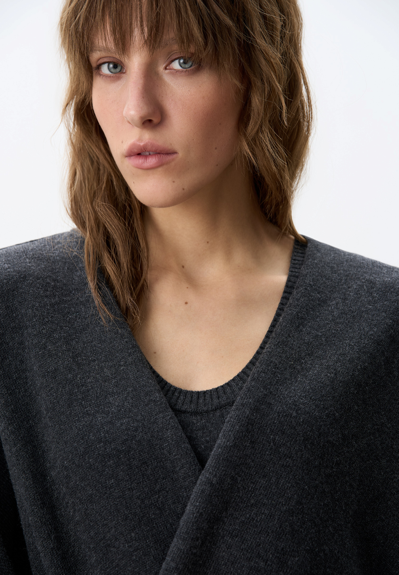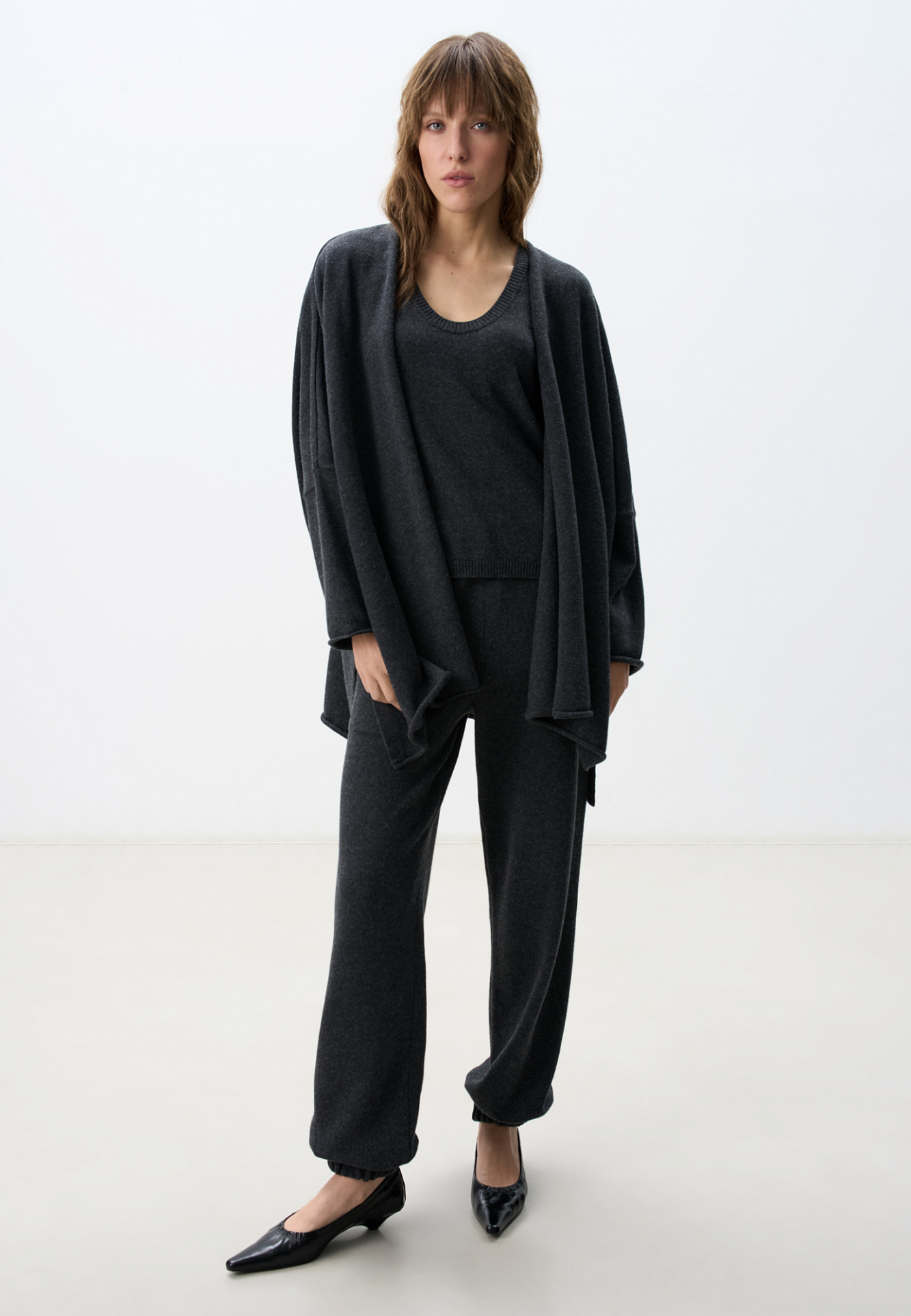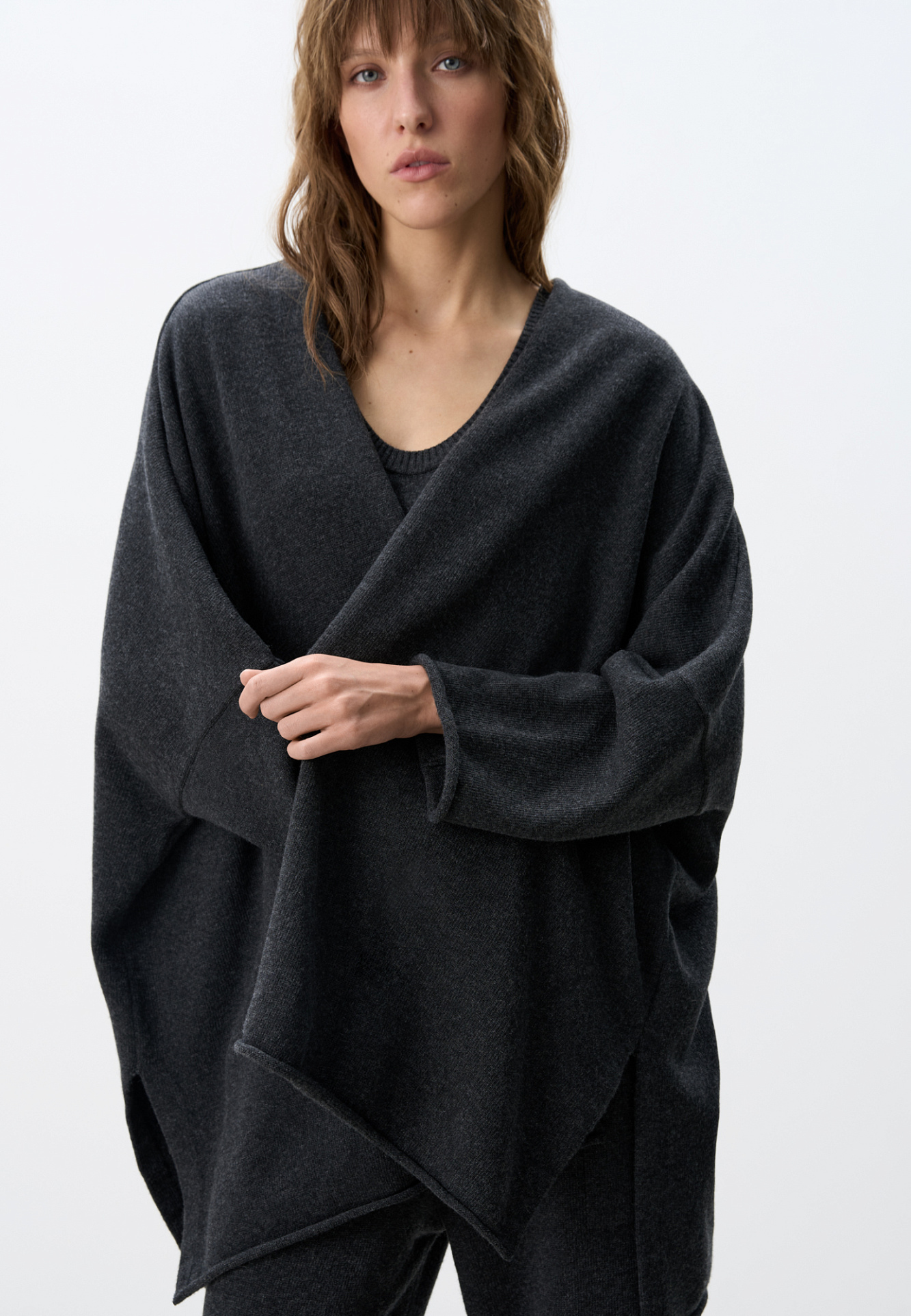 Трикотажный кардиган из шерсти и кашемира. Модель свободного кроя, с длинными широкими рукавами и спущенной линией плеч. Без застежки.