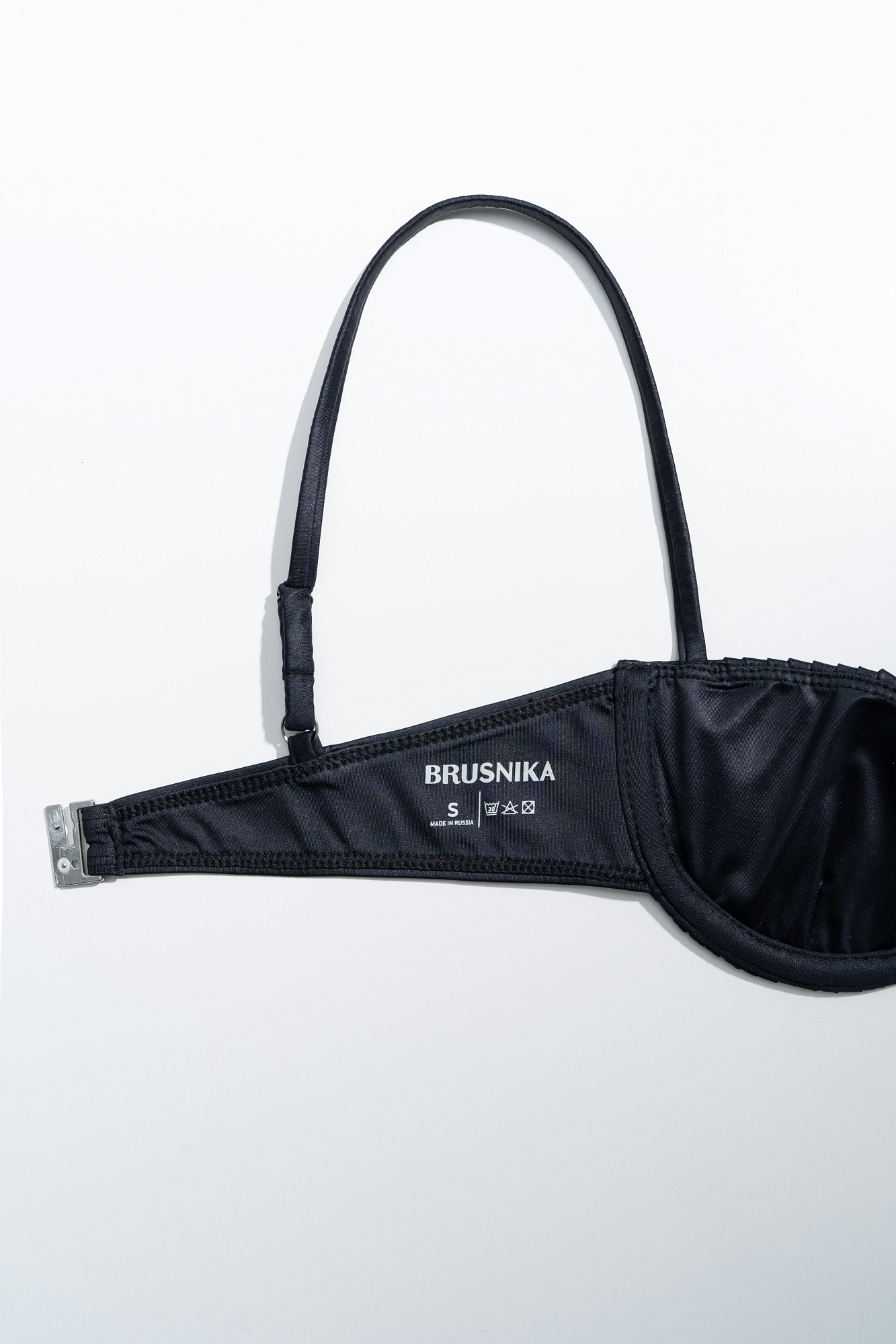 Лиф купальника с формованными чашками с драпировкой. Модель на тонких регулируемых бретелях и застежкой сзади.