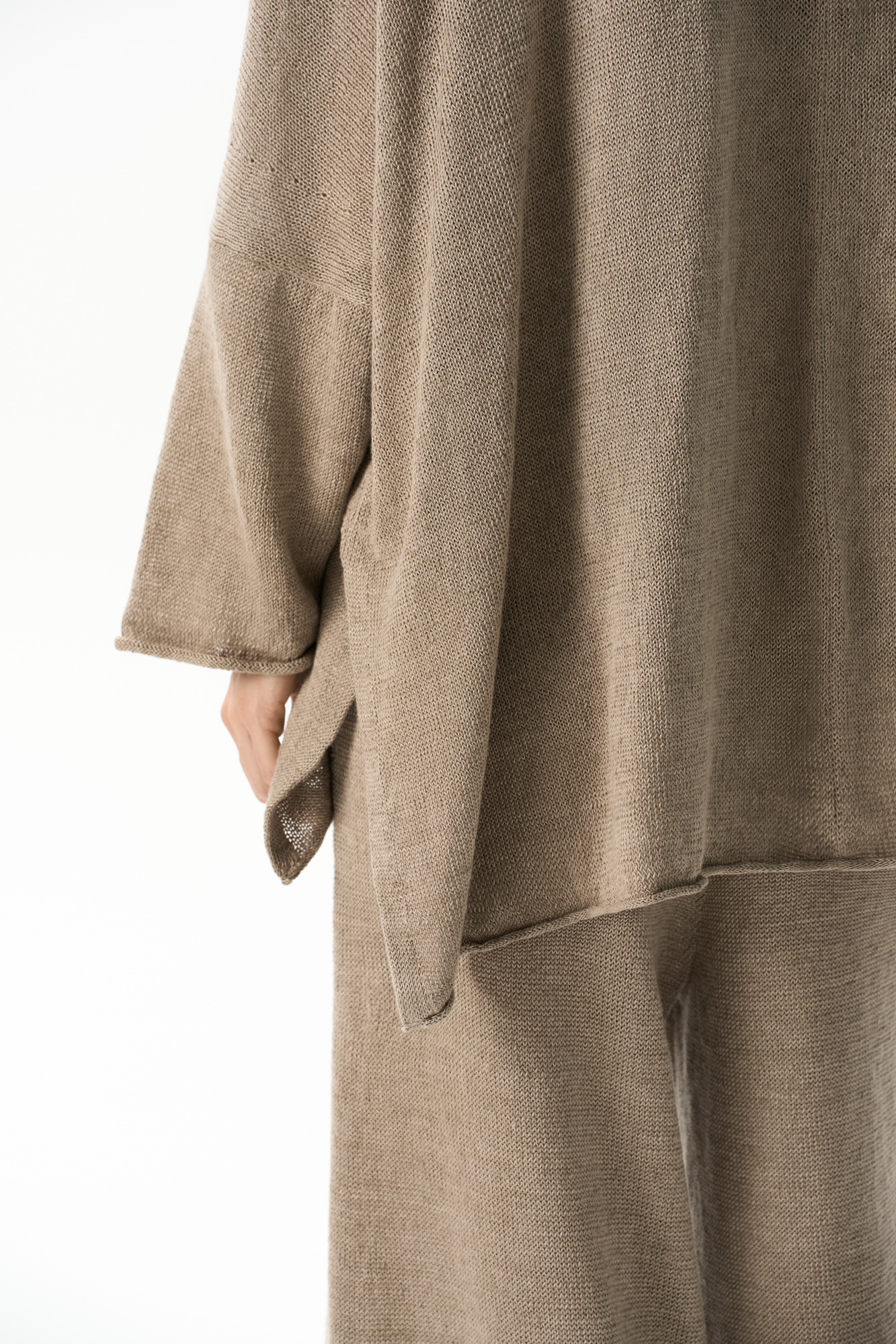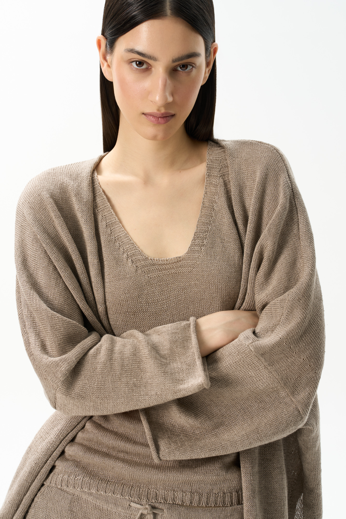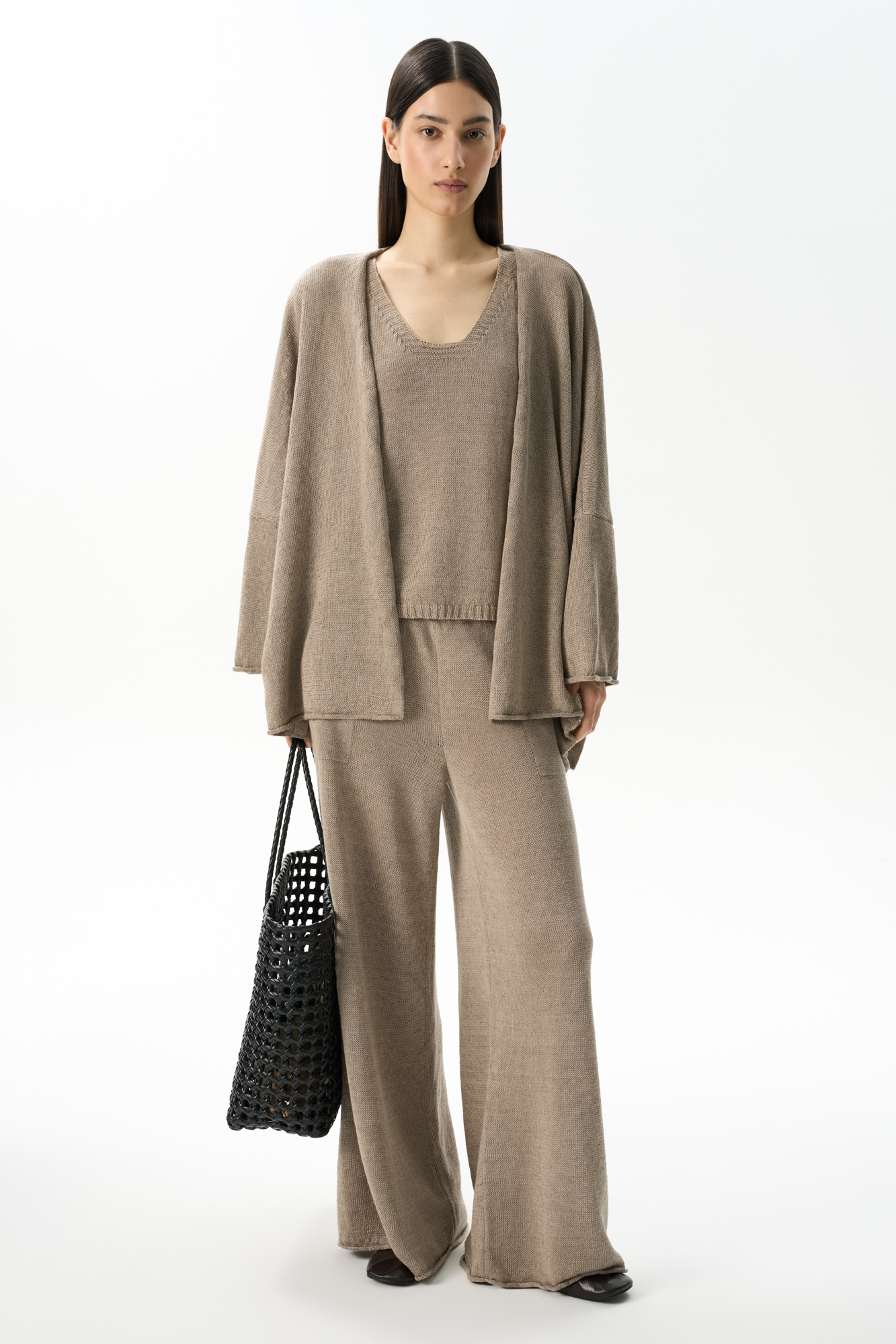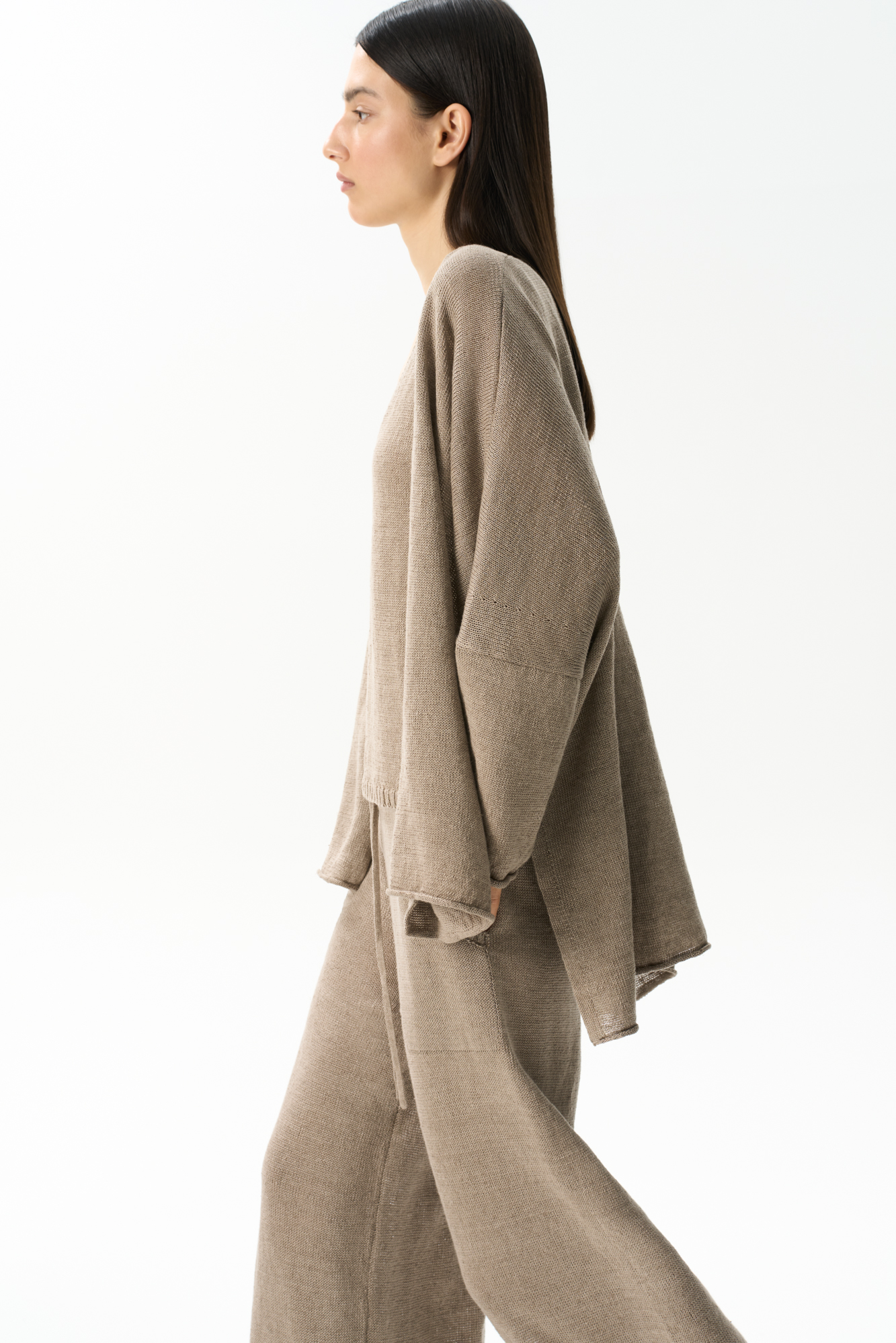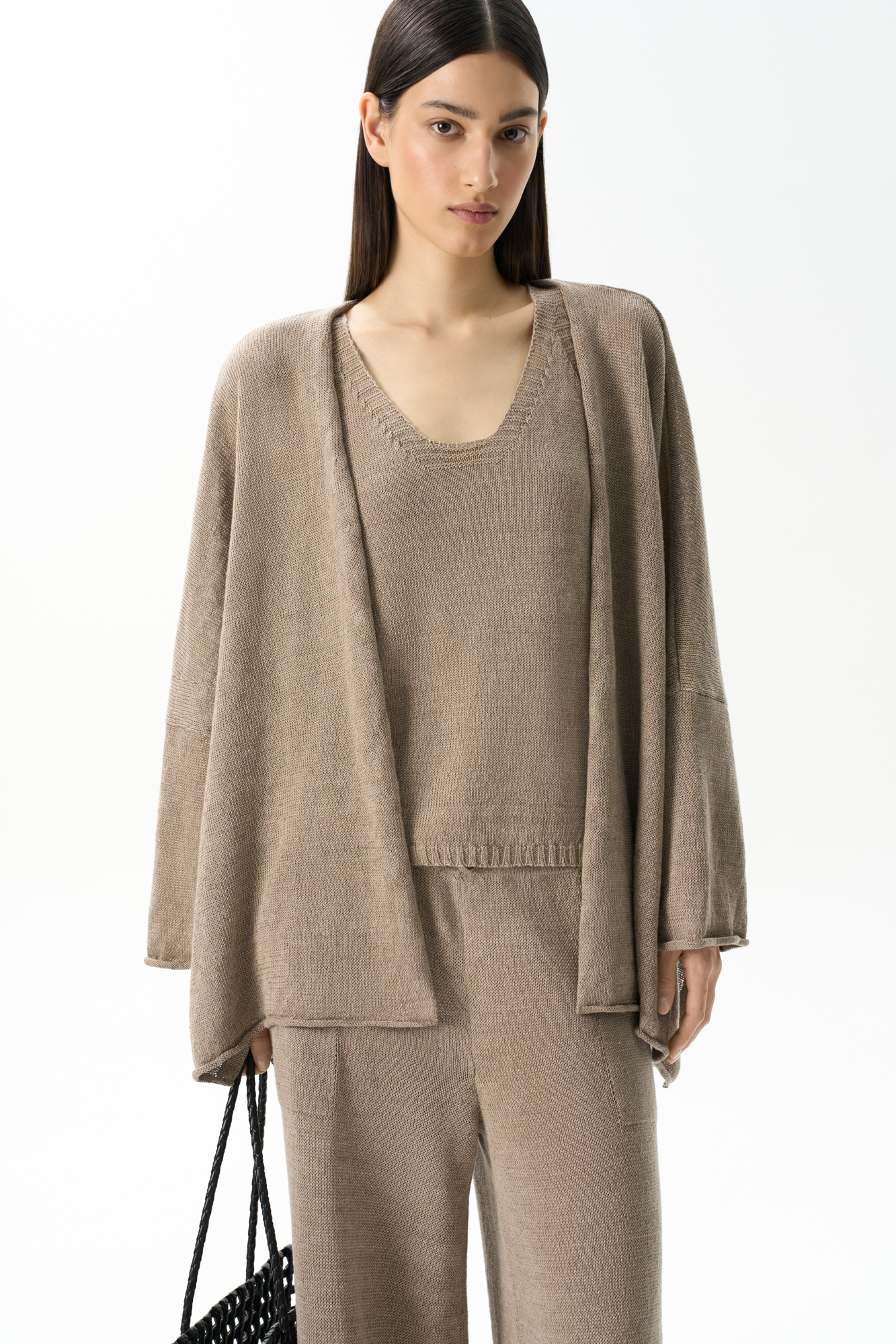 Трикотажный кардиган из 100% льна. Модель свободного кроя, с длинными широкими рукавами и спущенной линией плеч.