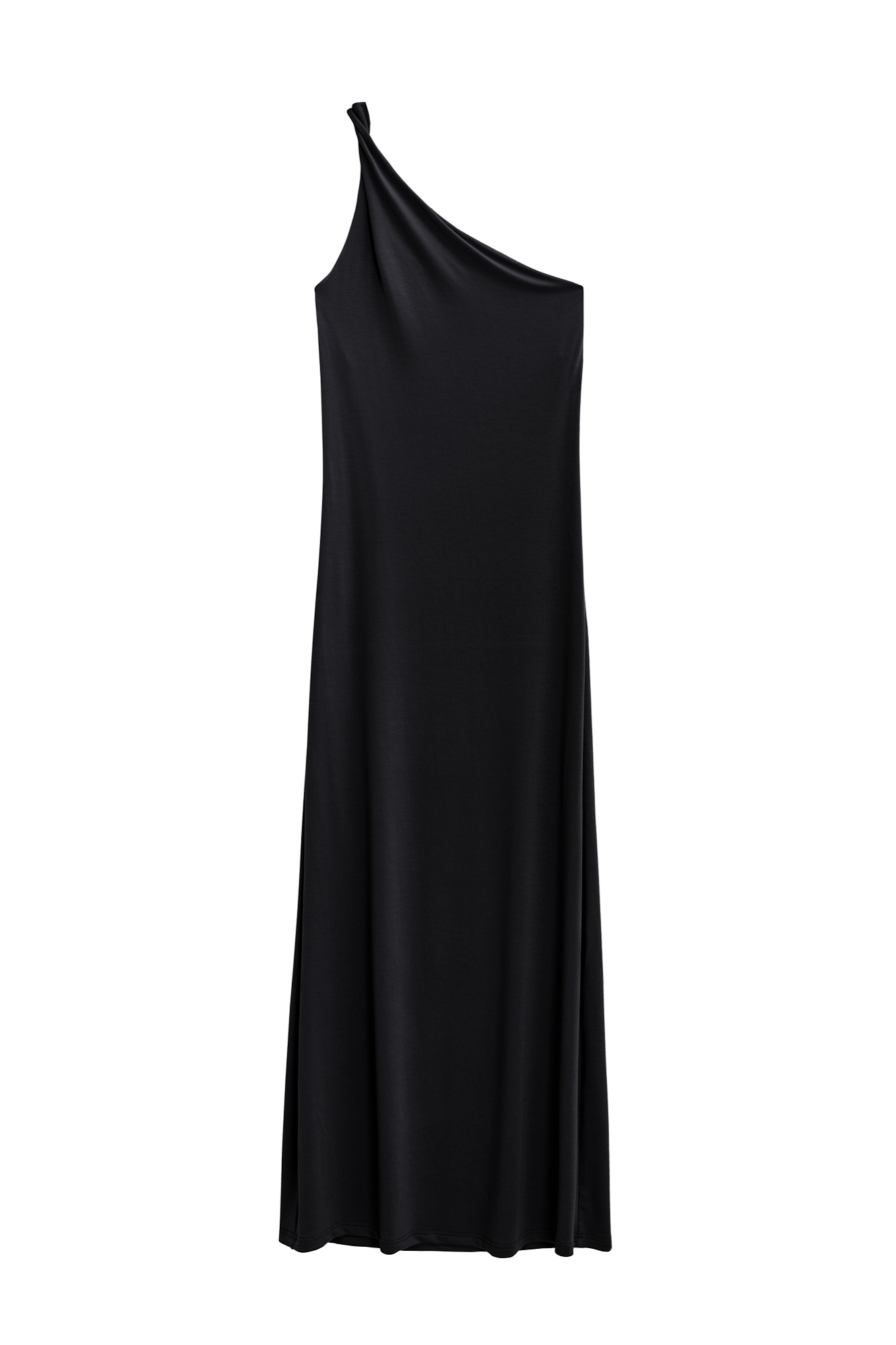 Платье длины макси из модала. Модель свободного кроя, с асимметричным верхом и перекрученной лямкой на одно плечо.