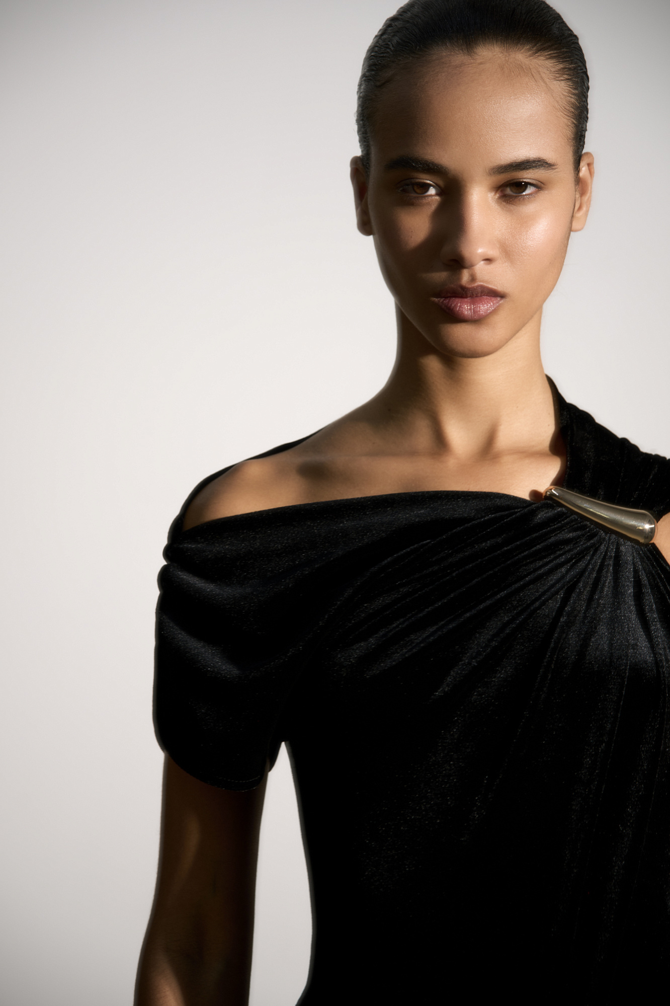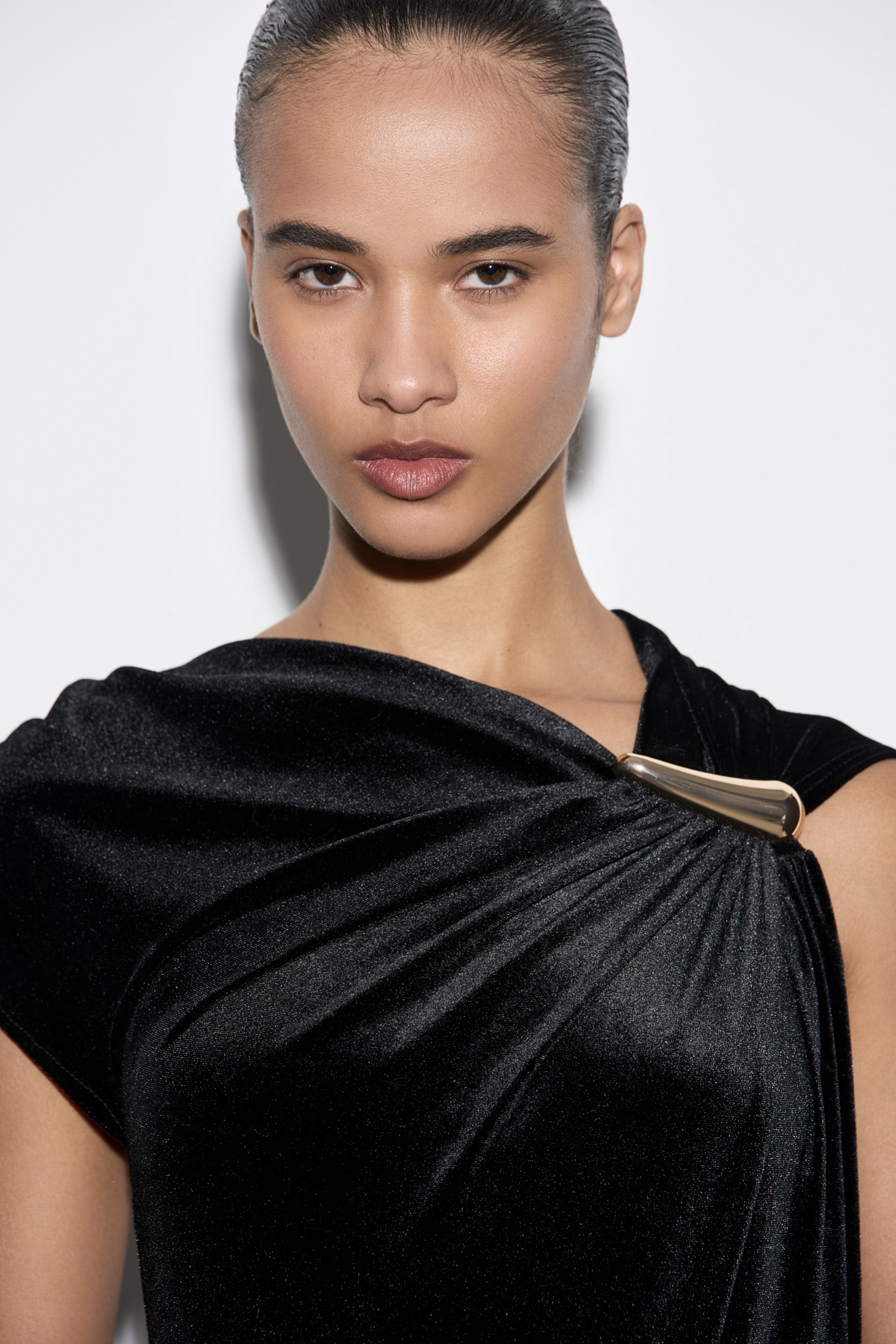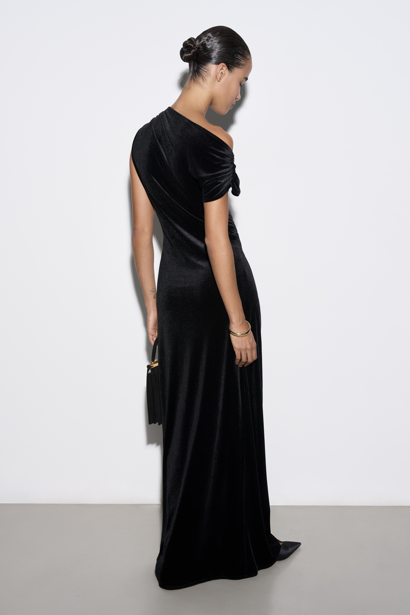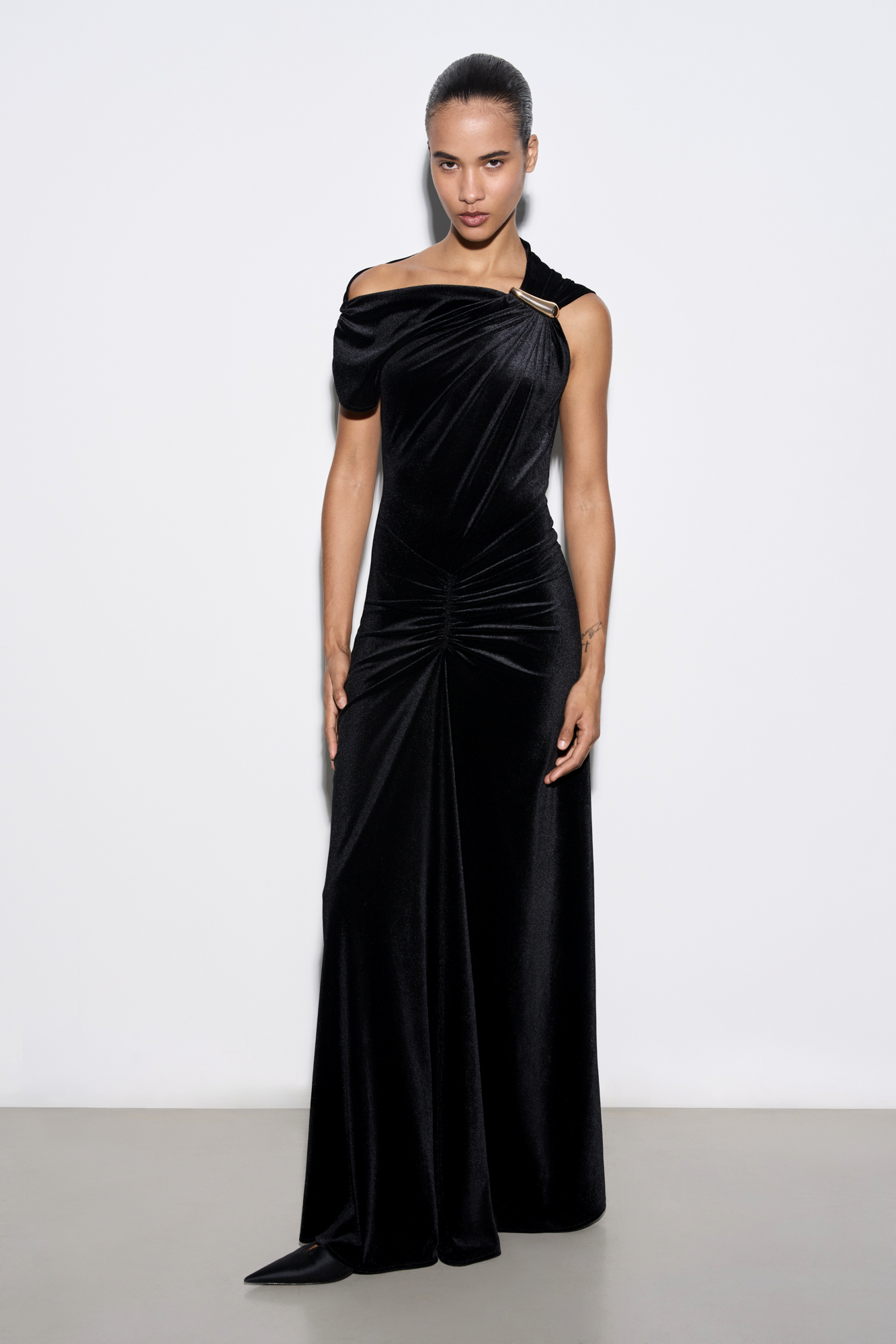 Бархатное платье макси с драпировкой
