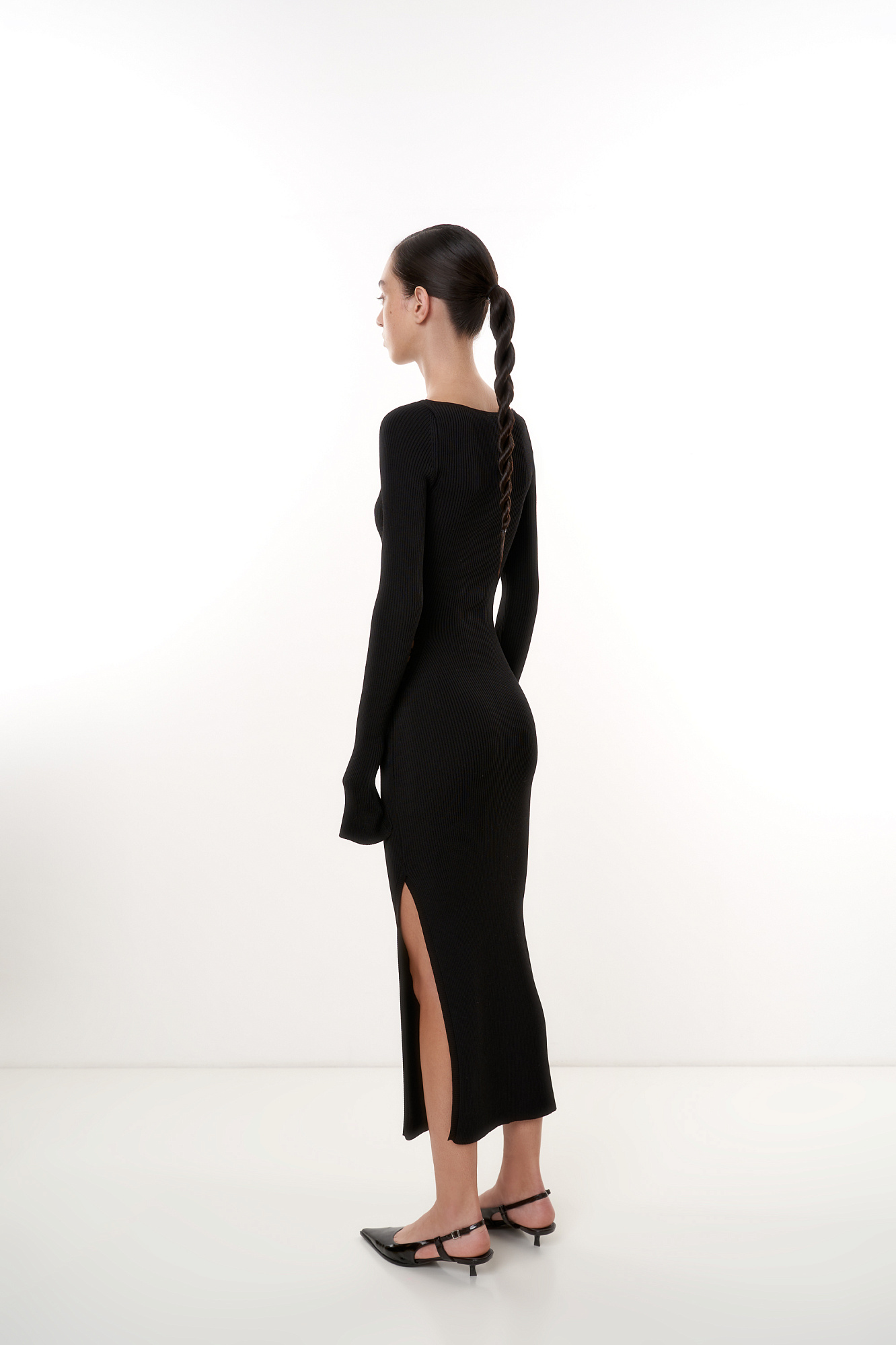 Трикотажное платье из вискозы с разрезом сбоку