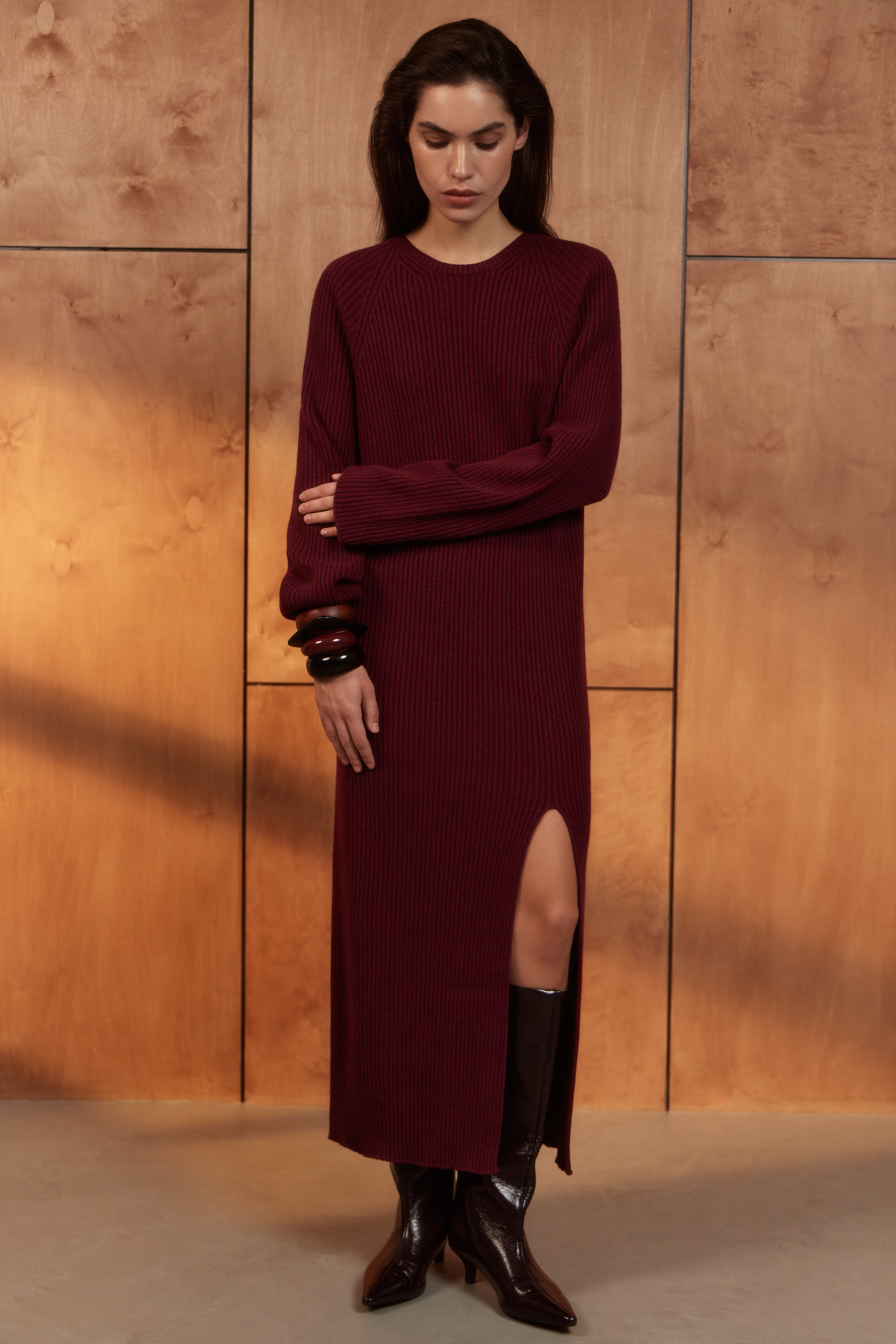 Трикотажное платье из кашемира и шерсти с разрезом