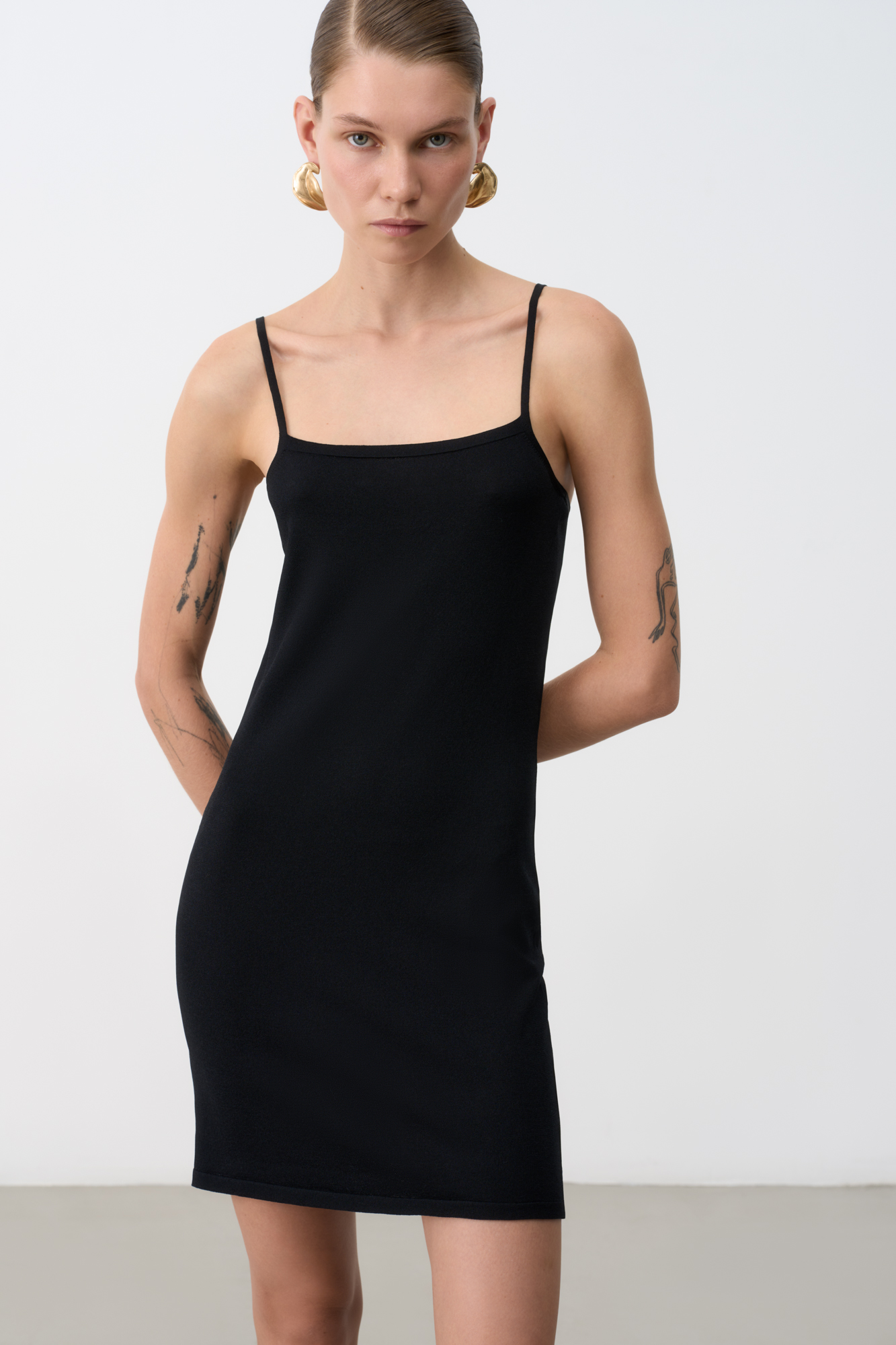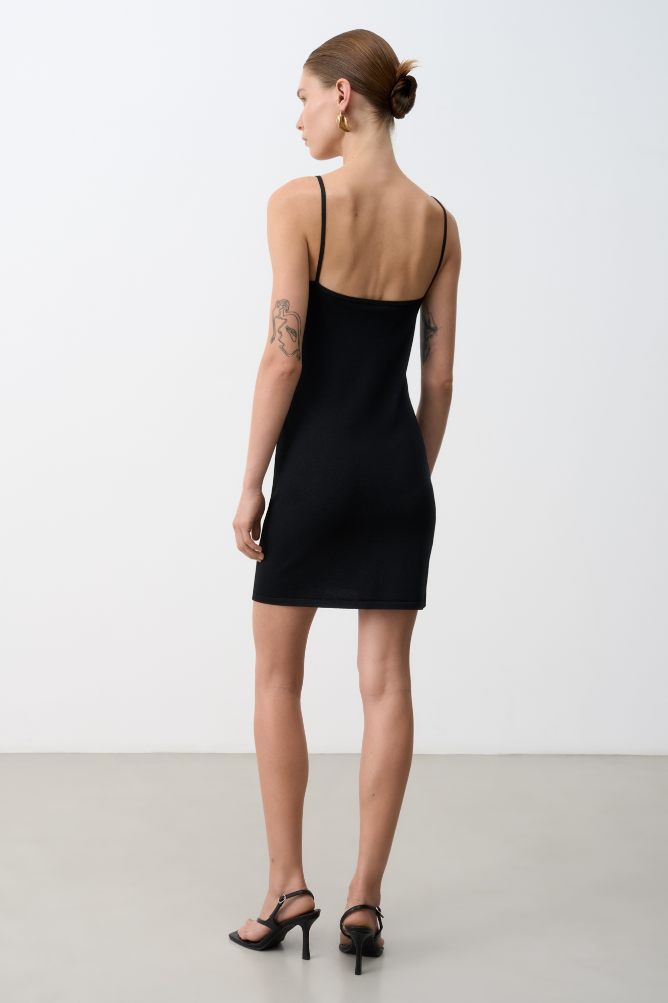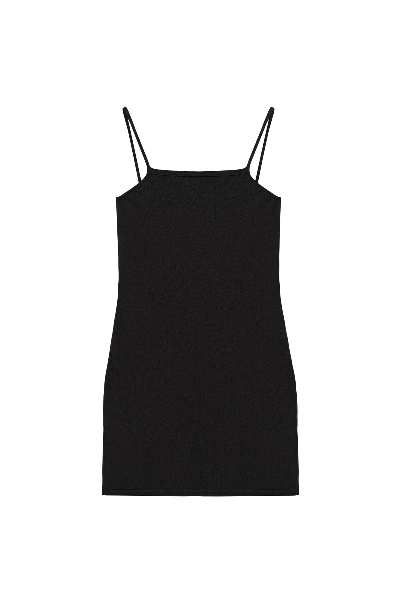 Трикотажное платье-комбинация из вискозы на тонких бретелях.