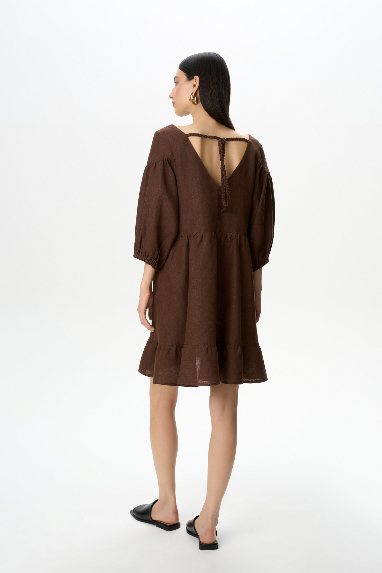 Льняное платье с завязками на спине