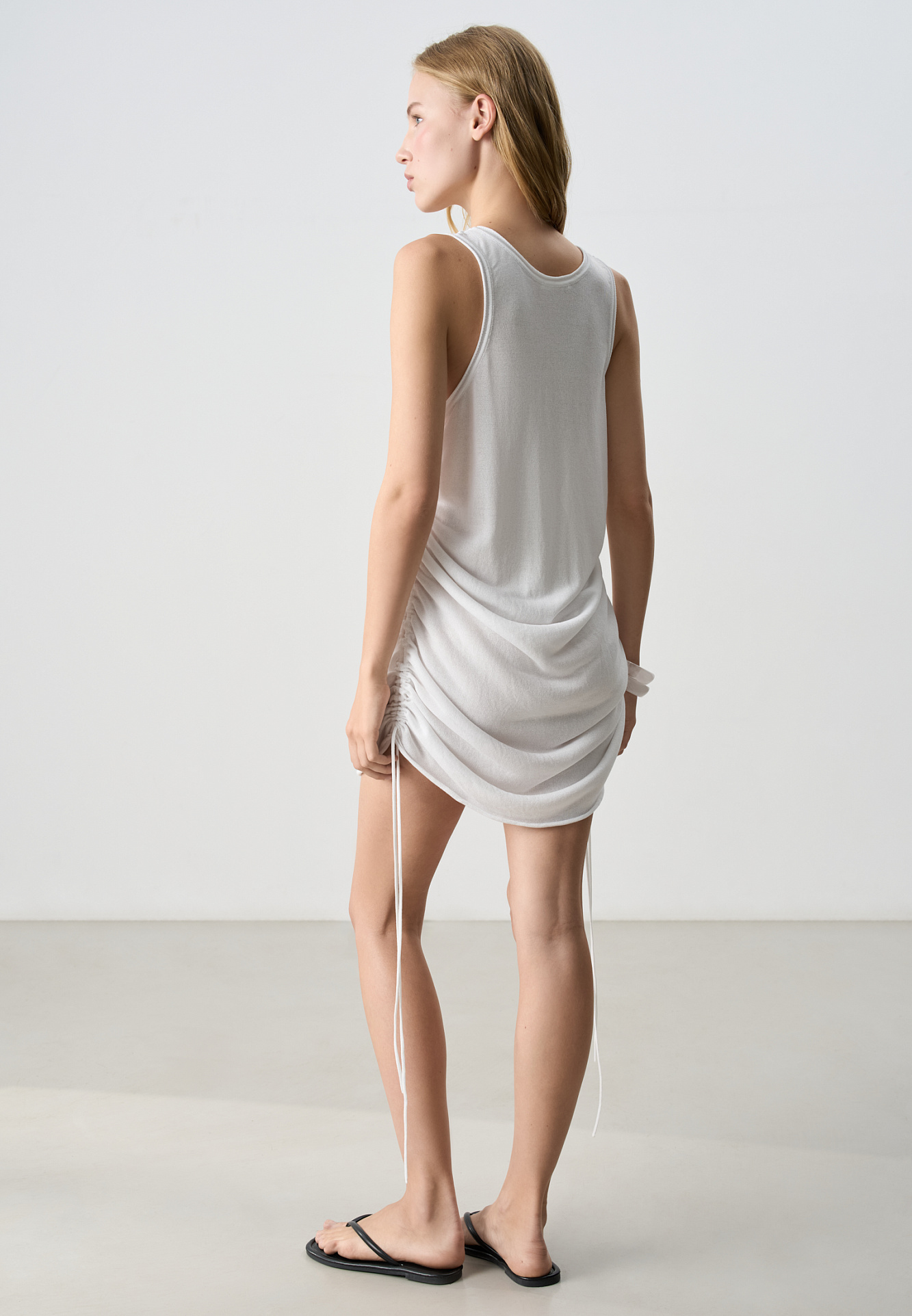 Платье мини с кулисками по бокам