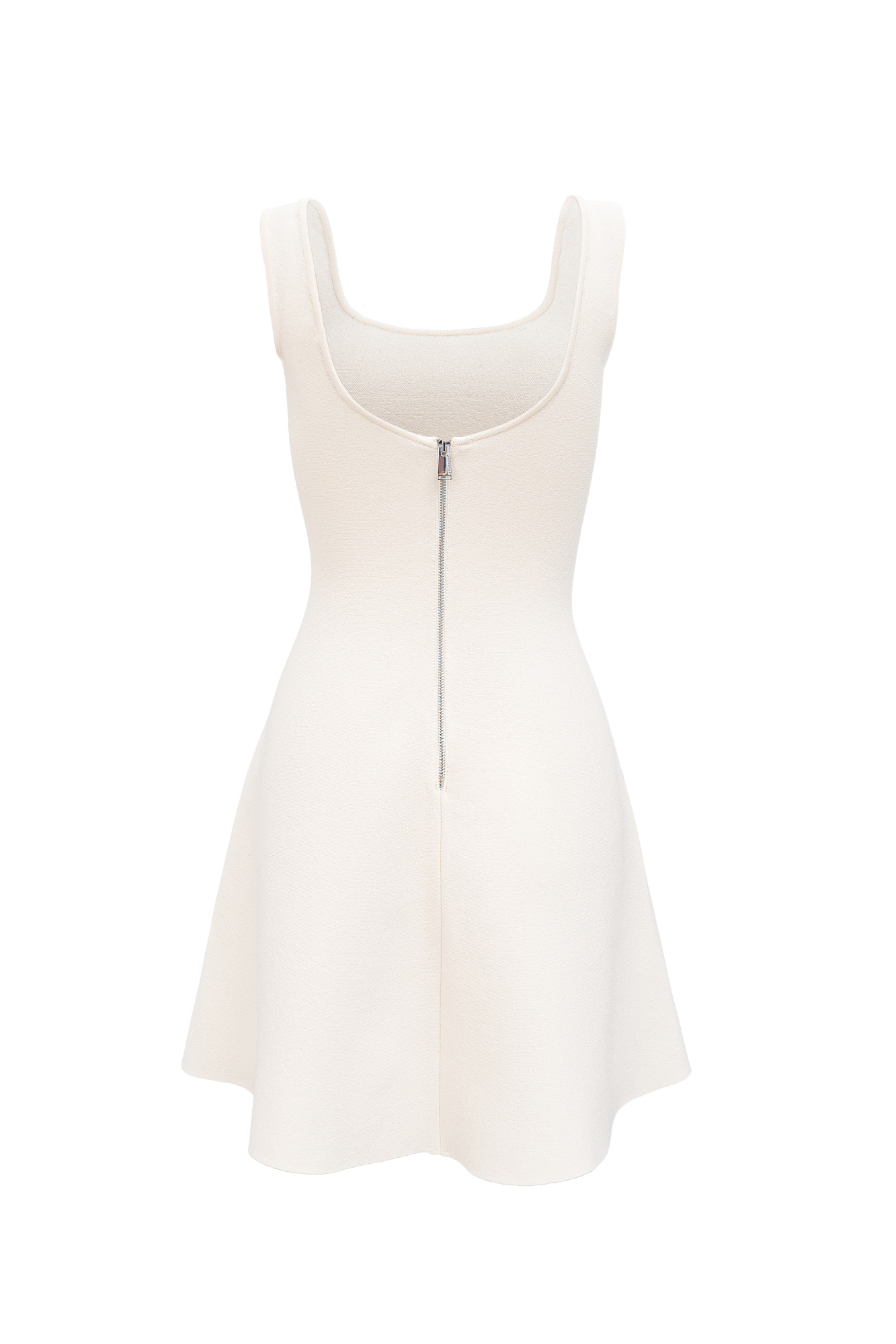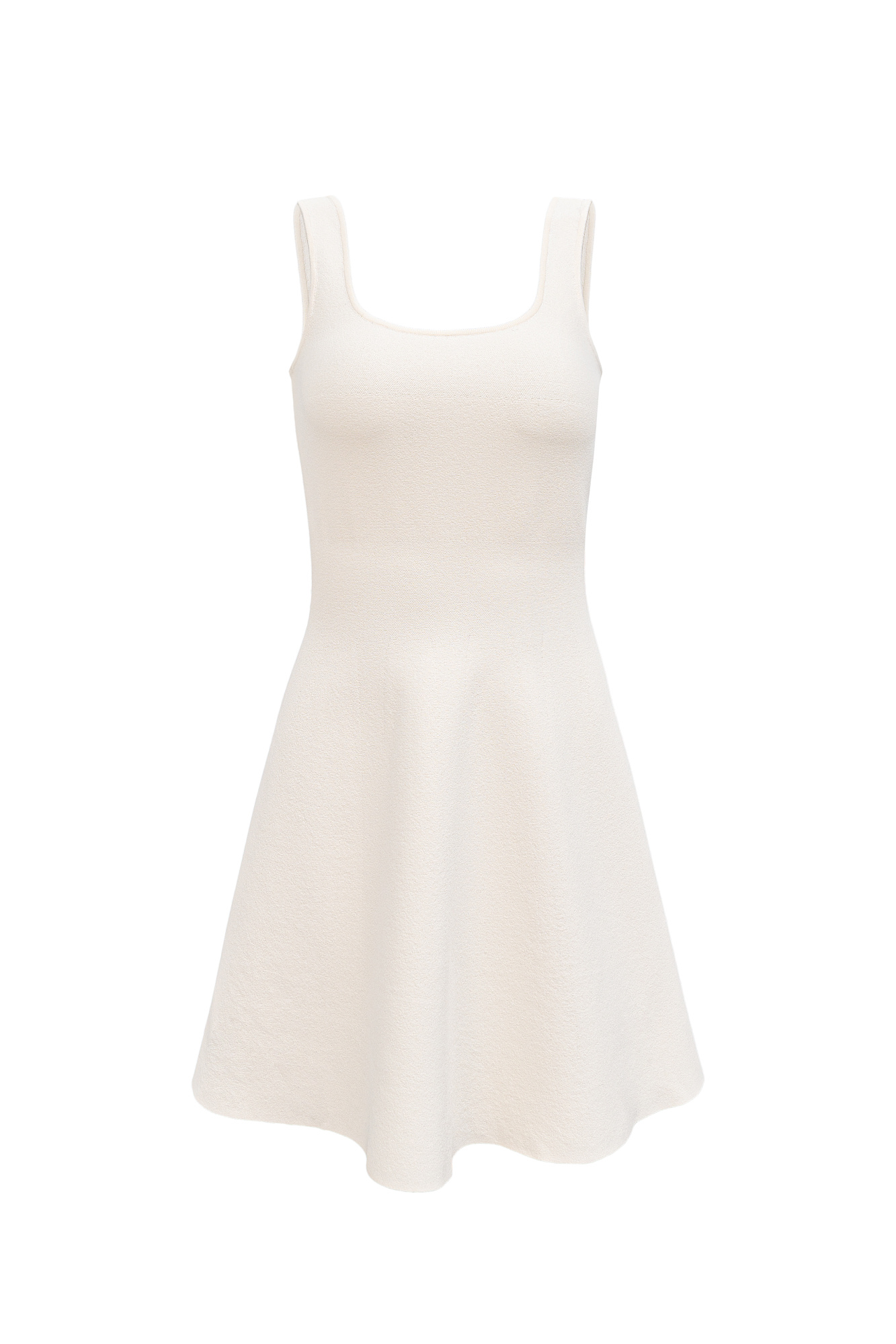 Трикотажное мини платье в стиле baby doll на широких бретелях. Круглый вырез, застежка сзади на молнию. Платье связано из плотной эластичной вискозы, что позволяет прилегать по фигуре и держать объем у юбки.
