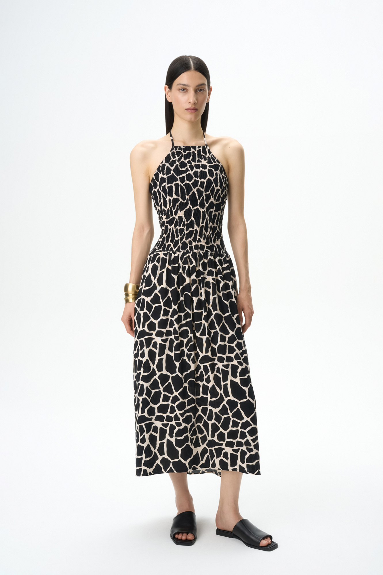 Принтованный сарафан с завязками на шее
