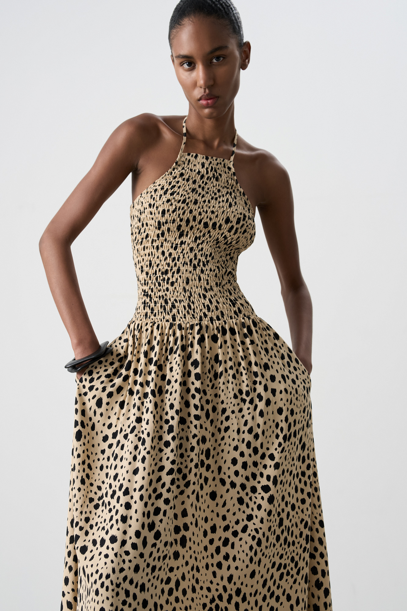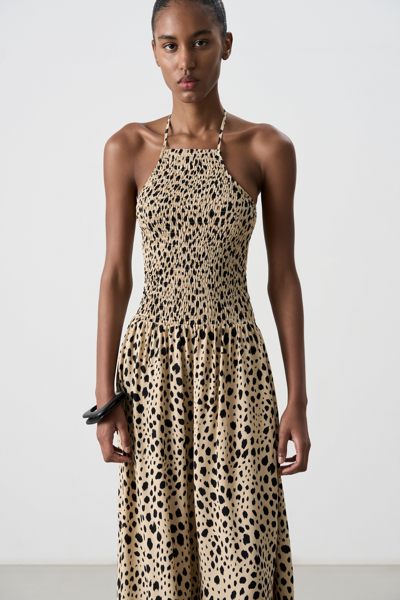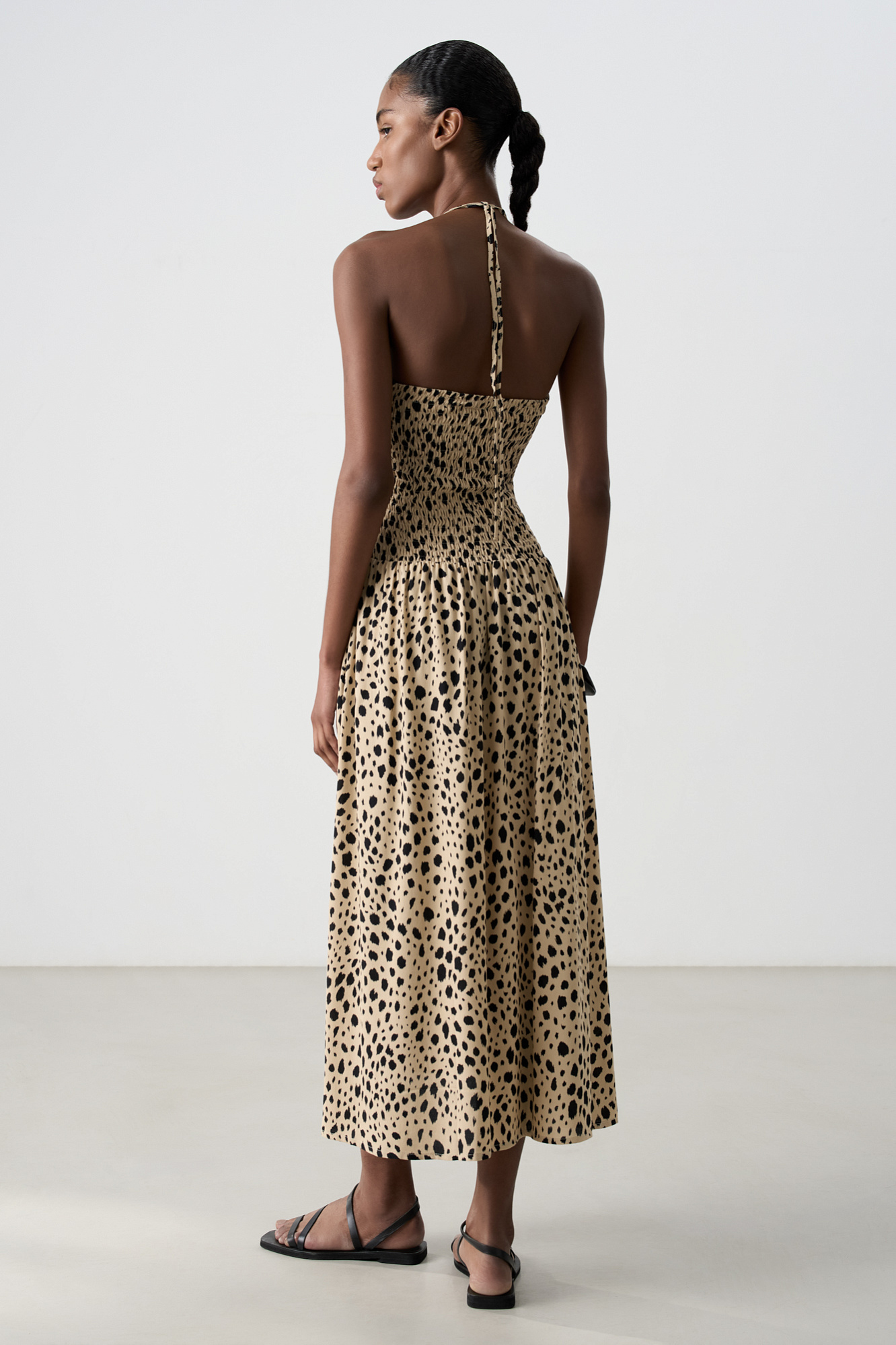 Принтованный сарафан с завязками на шее