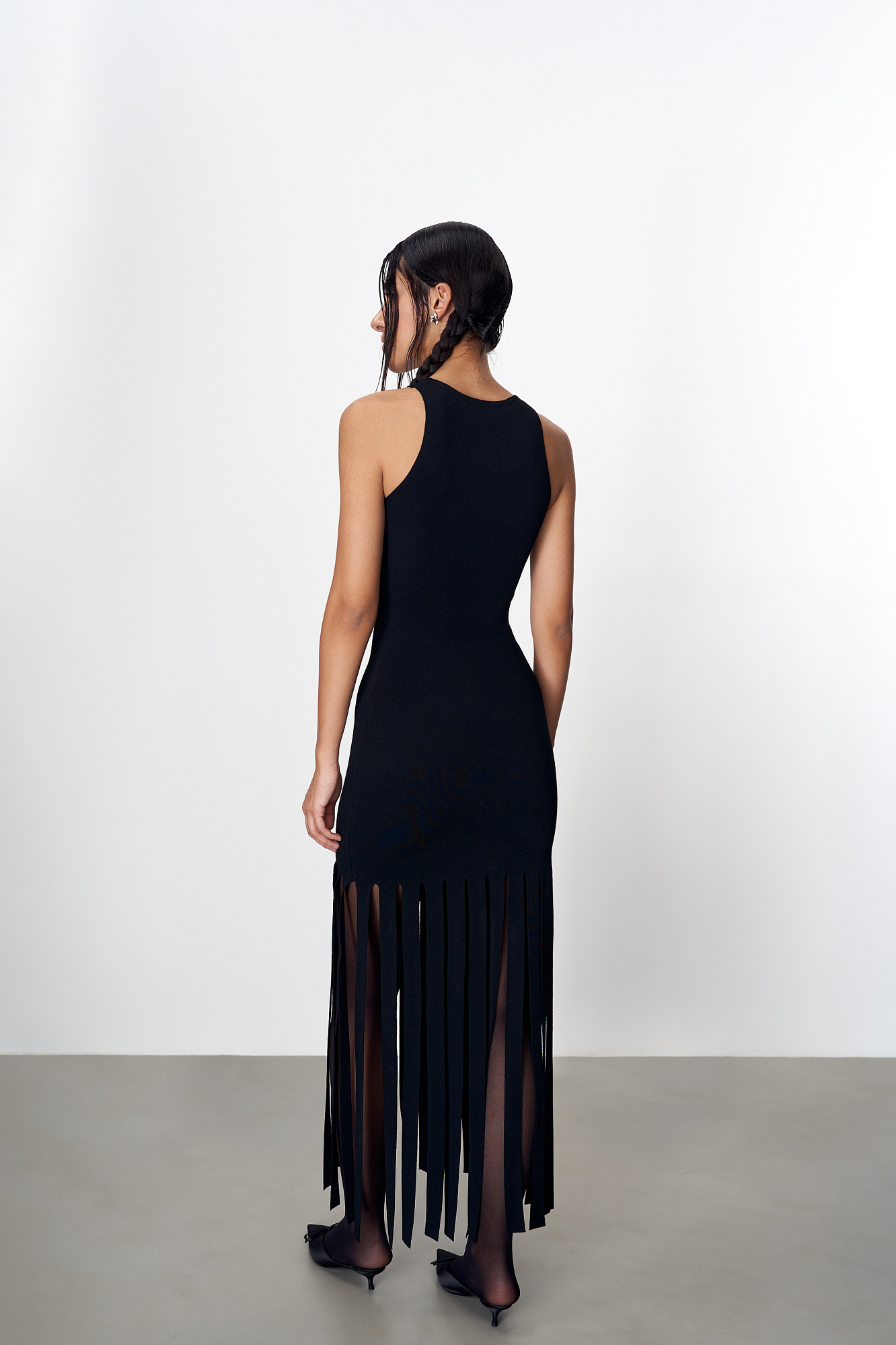 Трикотажное платье с широкой бахромой