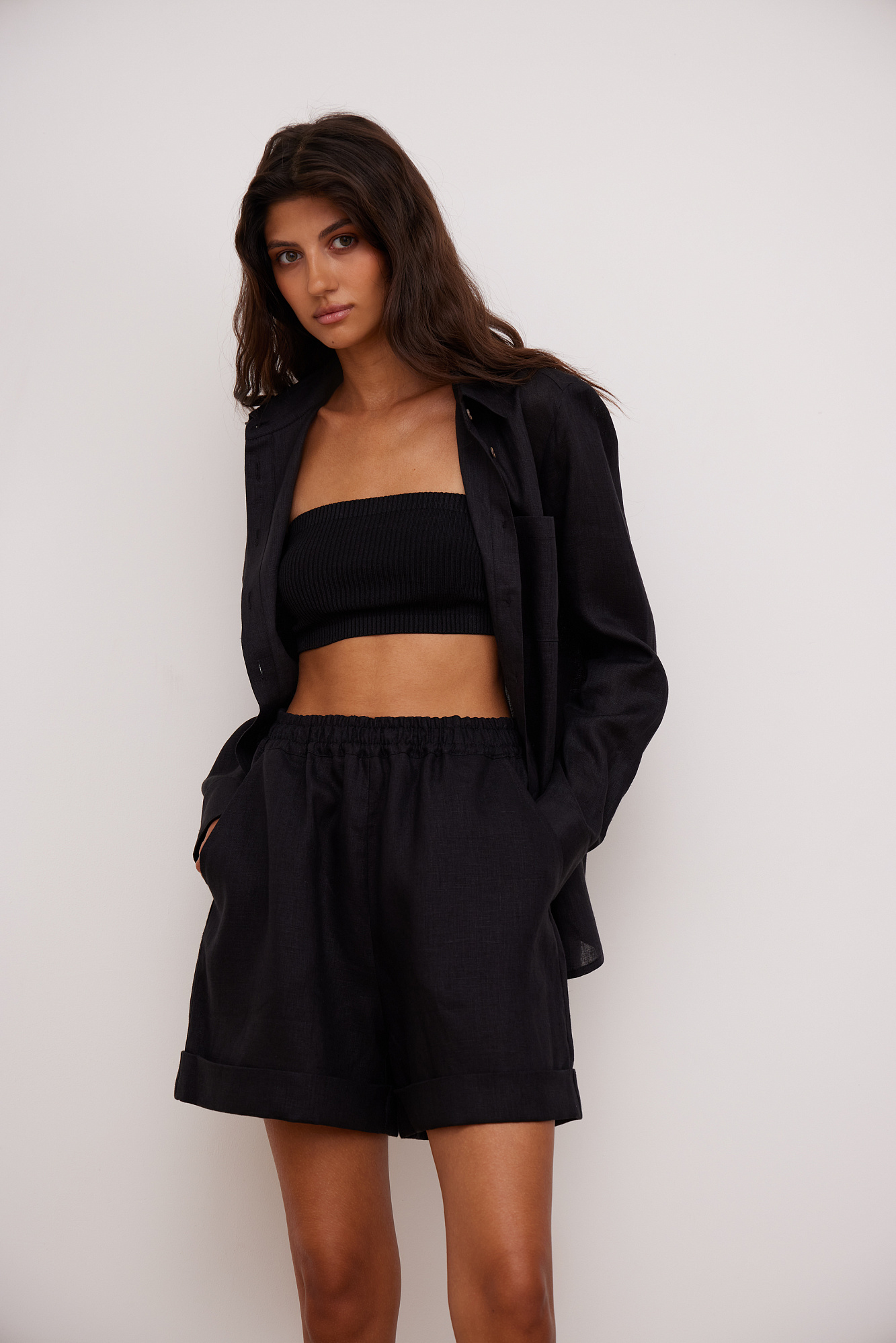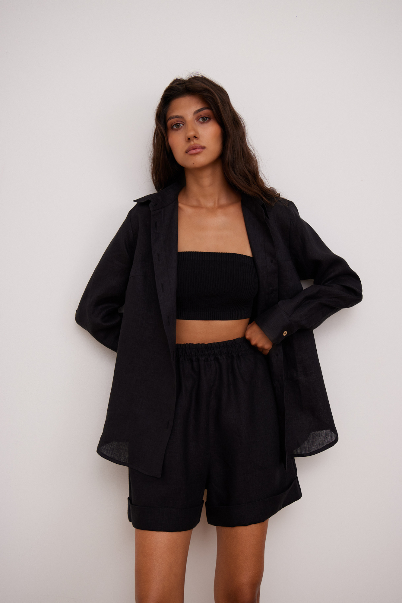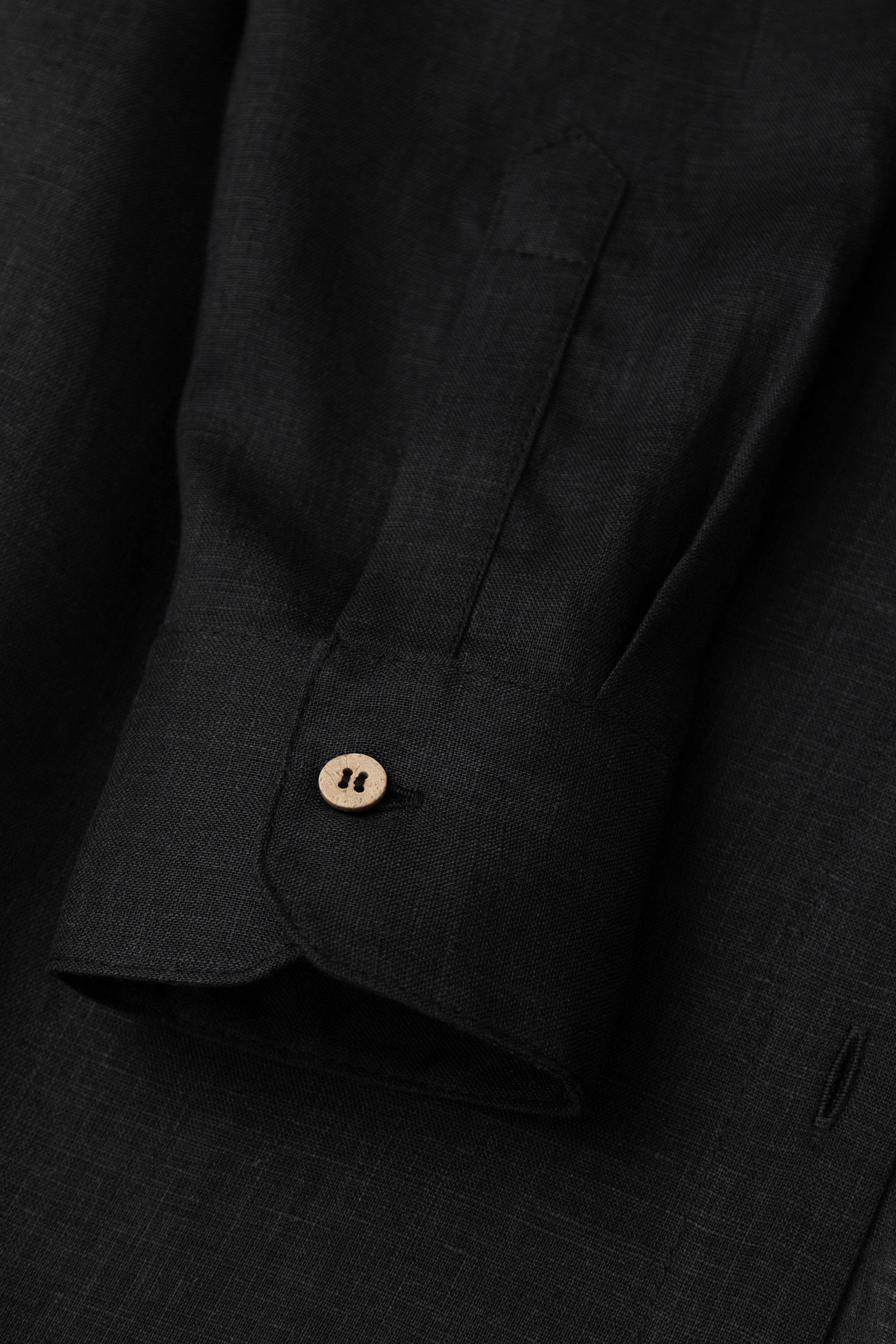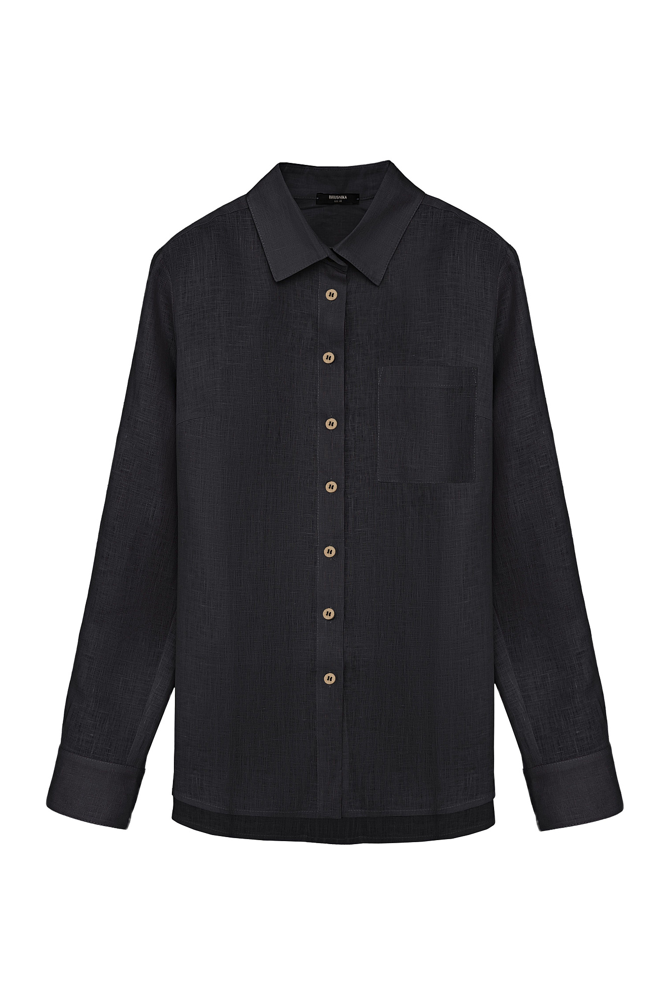 Классическая рубашка из 100% льна на пуговицах. Модель свободного кроя с накладным карманом на груди.