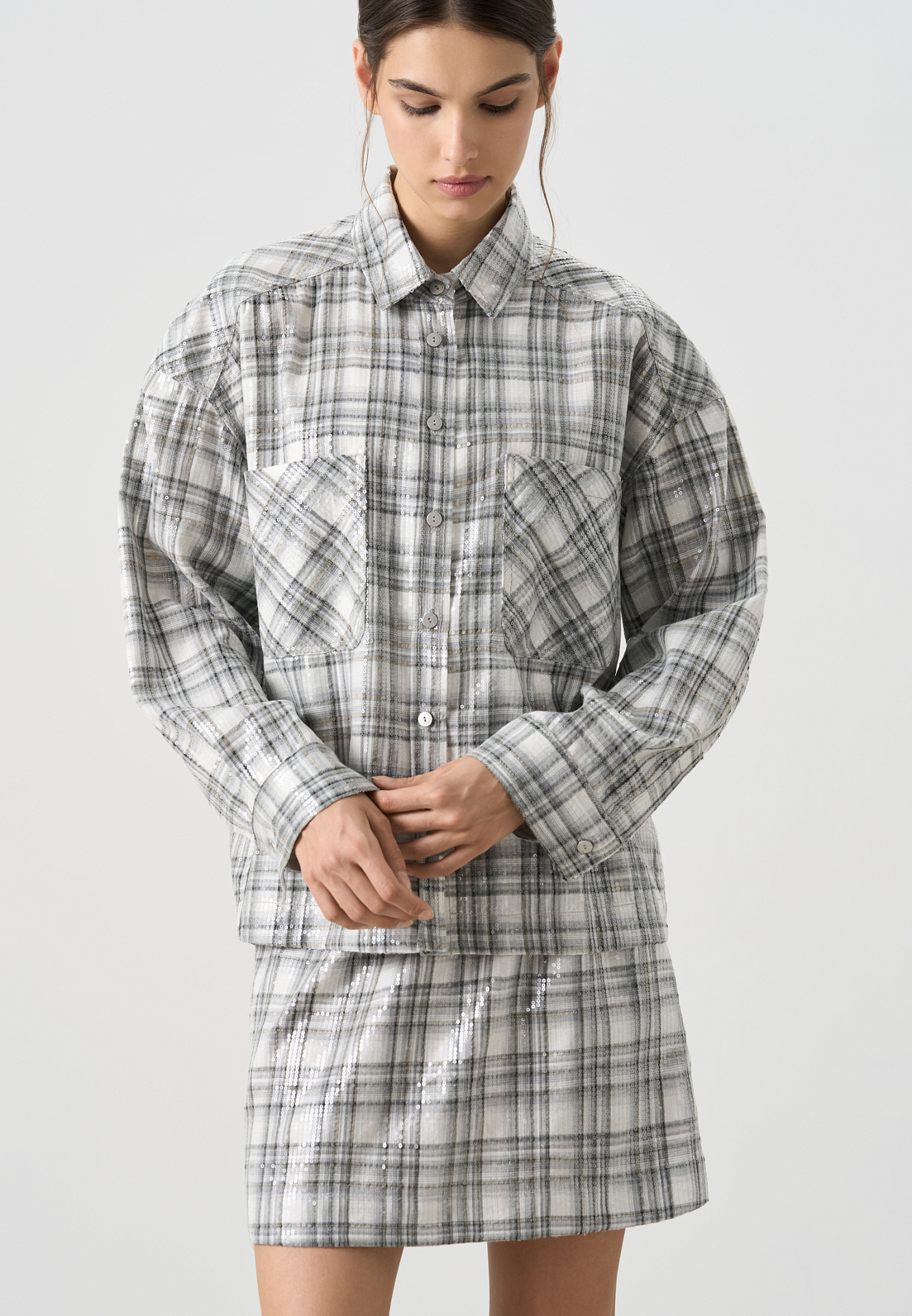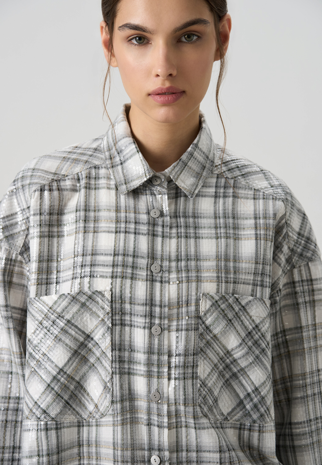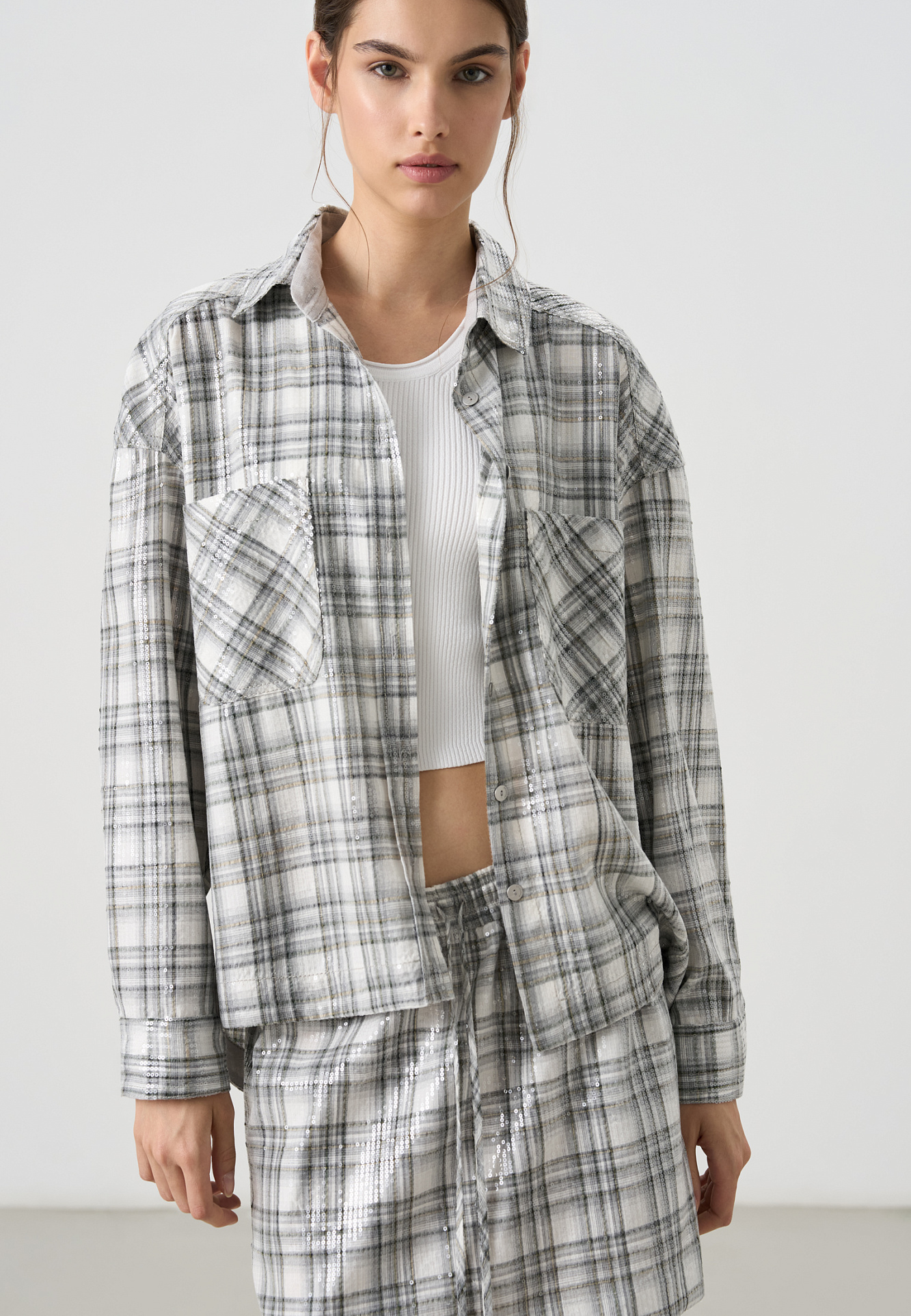 Рубашка в клетку с пайетками