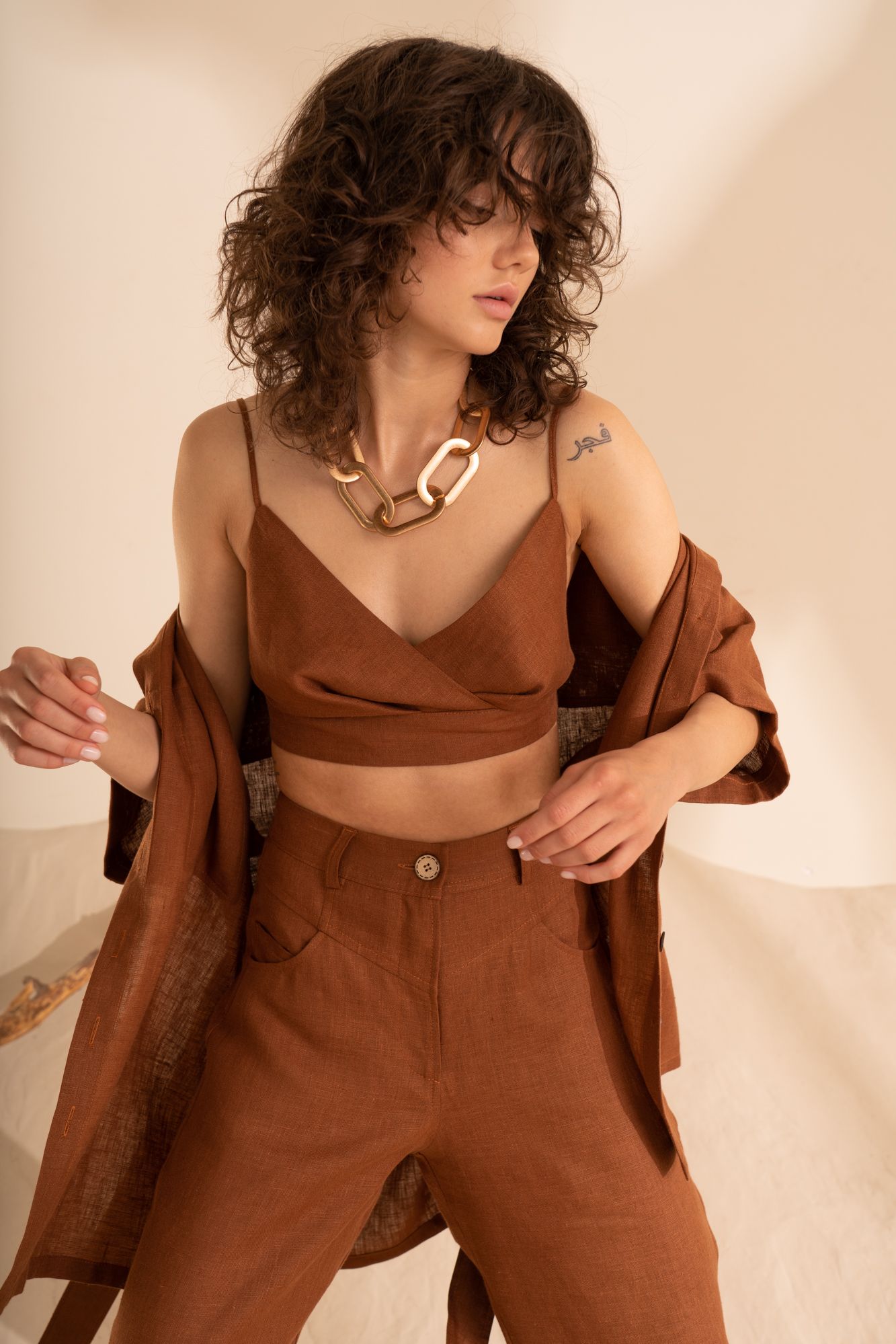 - Рекомендуем сушить льняные вещи по возможности на плечиках или в расправленном виде;