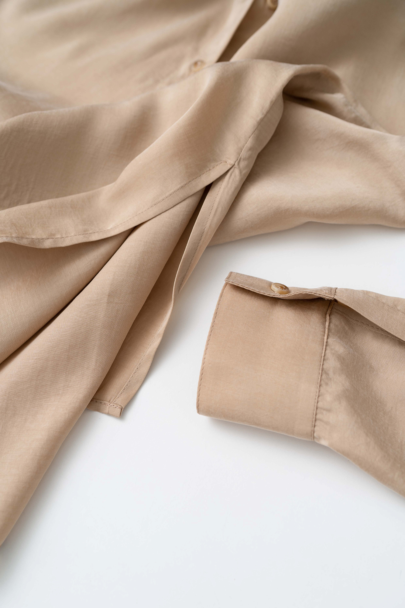 Классическая рубашка из 100% купры со спущенным рукавом и неровным низом.