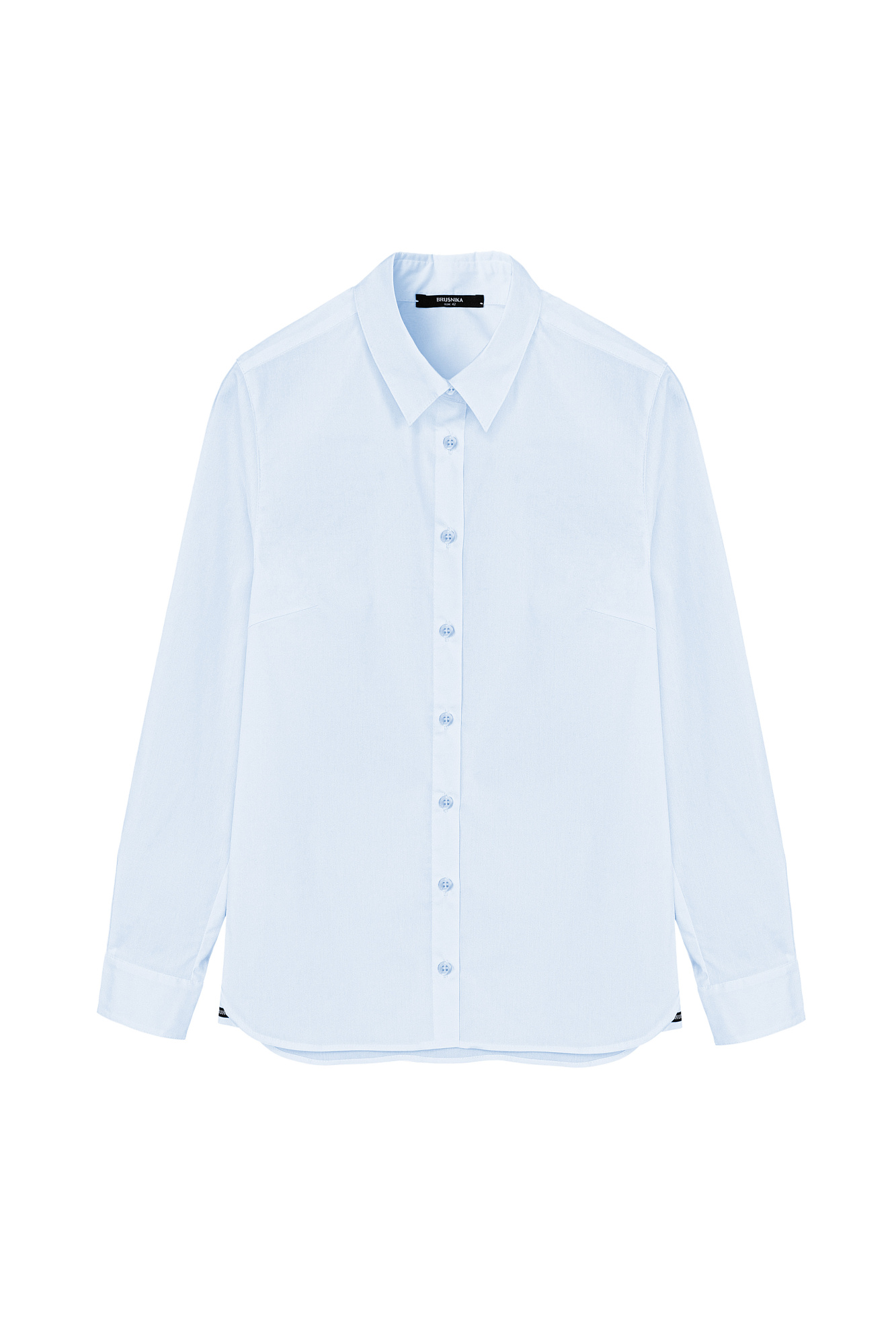 Классическая рубашка из хлопка. Модель прямого кроя, с длинными рукавами с манжетами, отложным воротником и застежкой на пуговицы.
