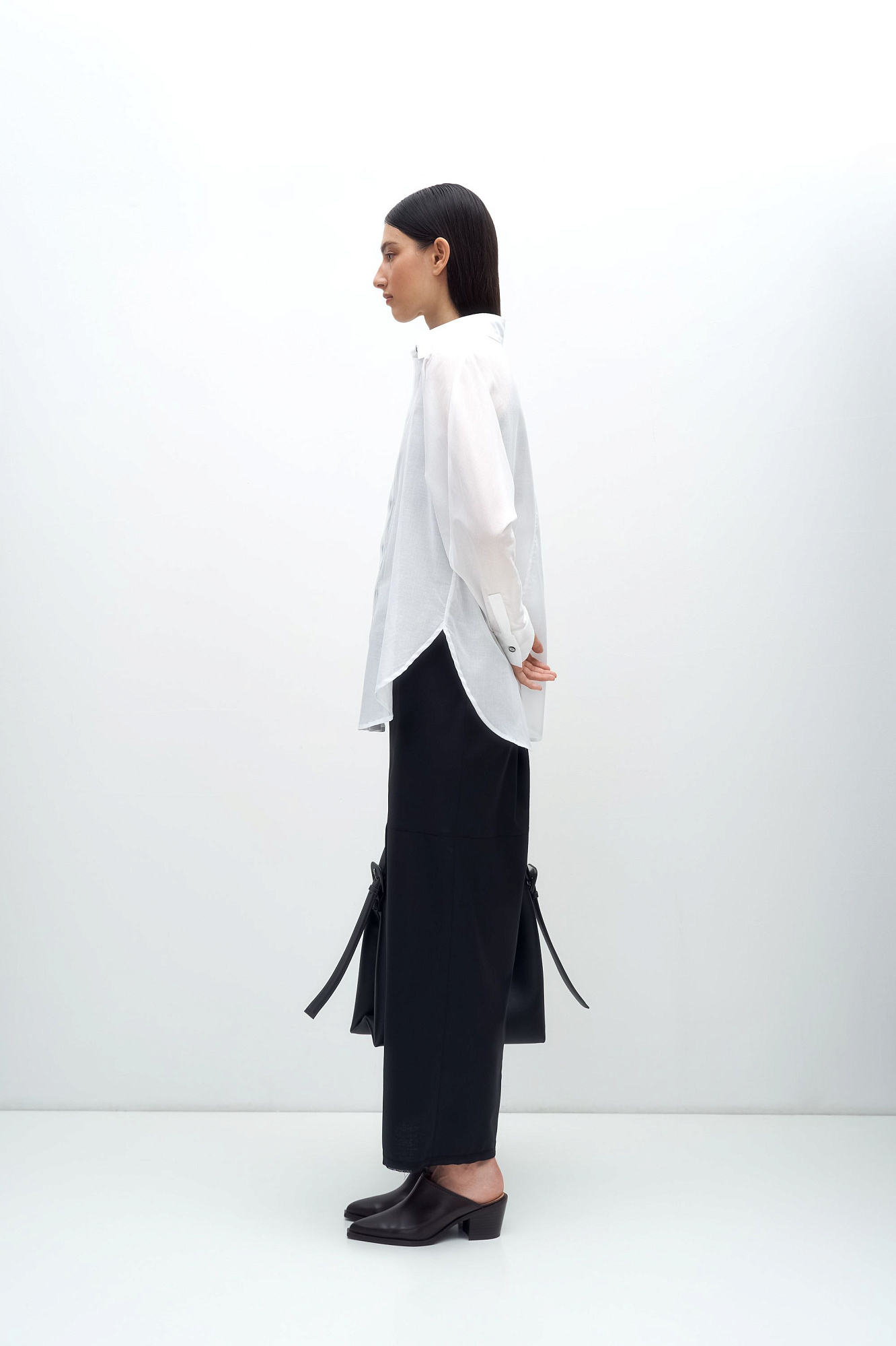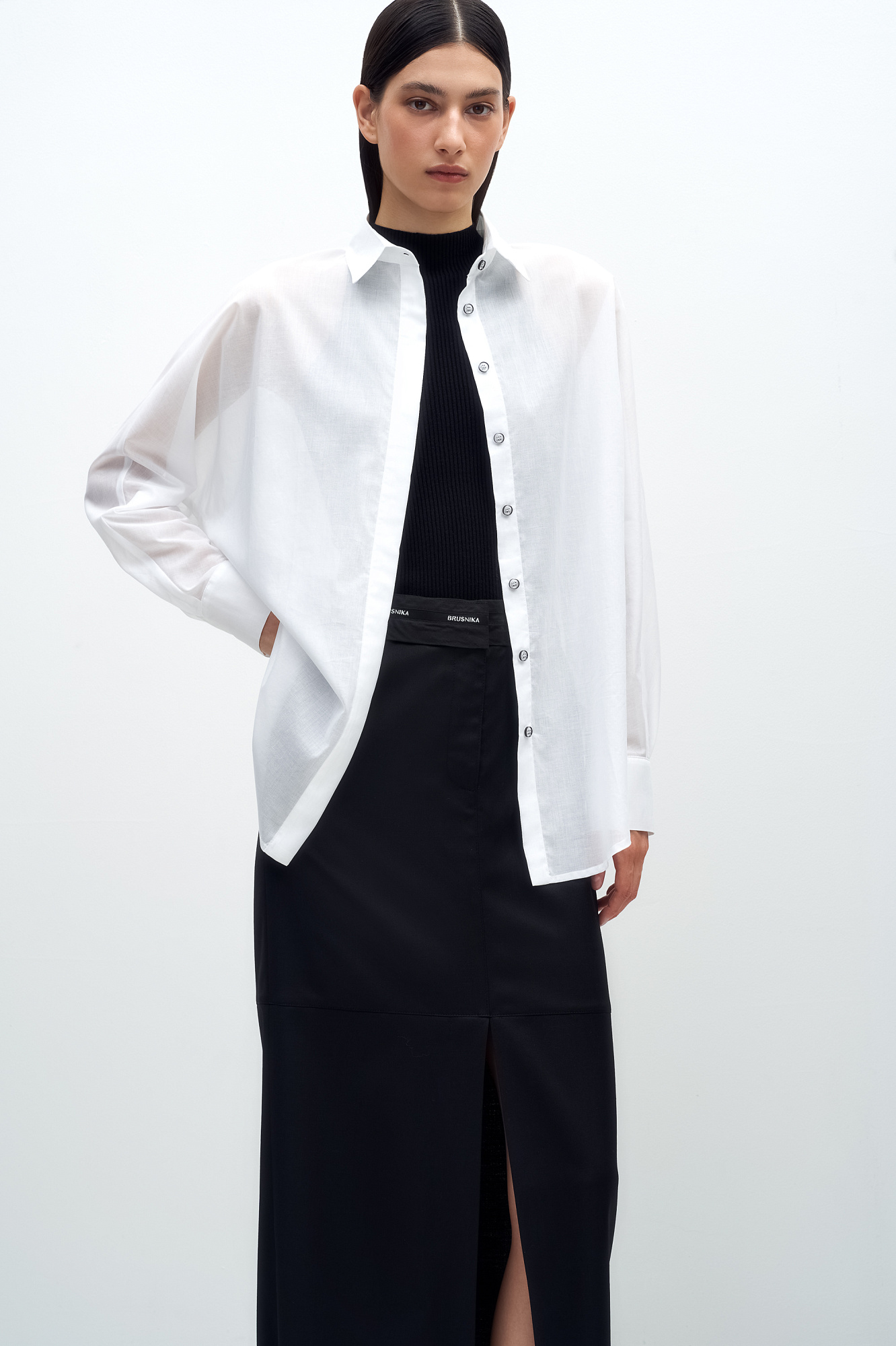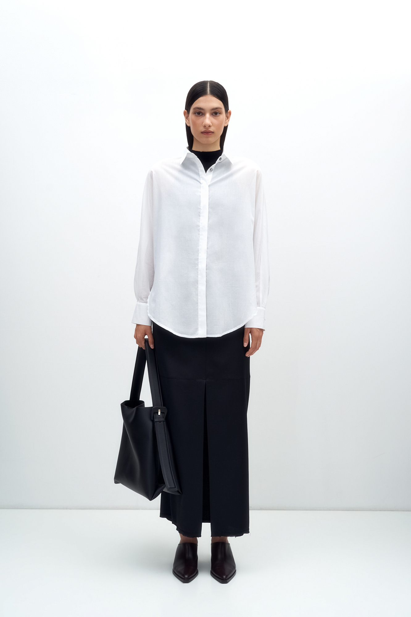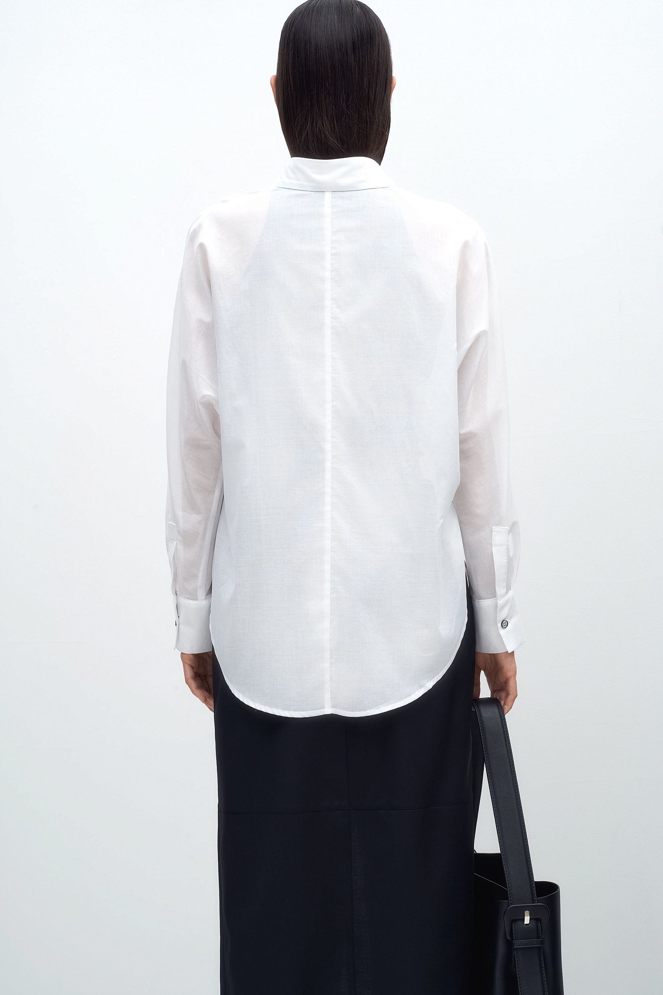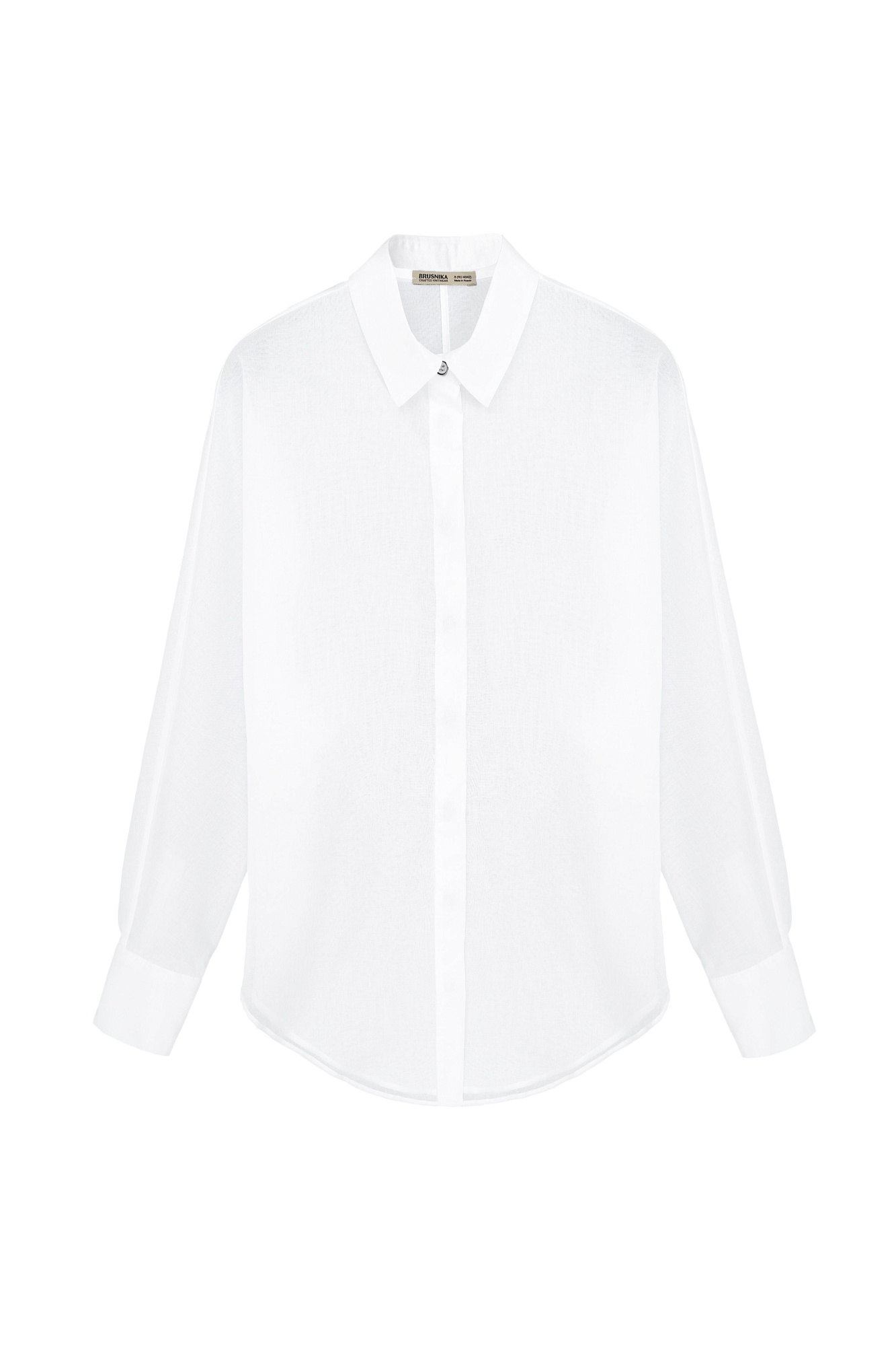 Классическая рубашка из 100% хлопка. Отложной воротник, длинные рукава с манжетами на пуговицах и закругленный нижний край. Застежка на пуговицы под планкой.