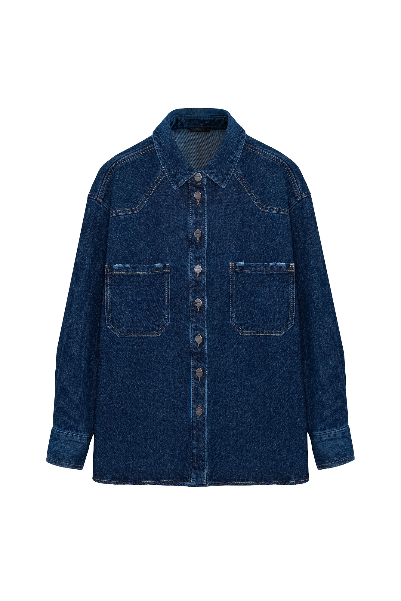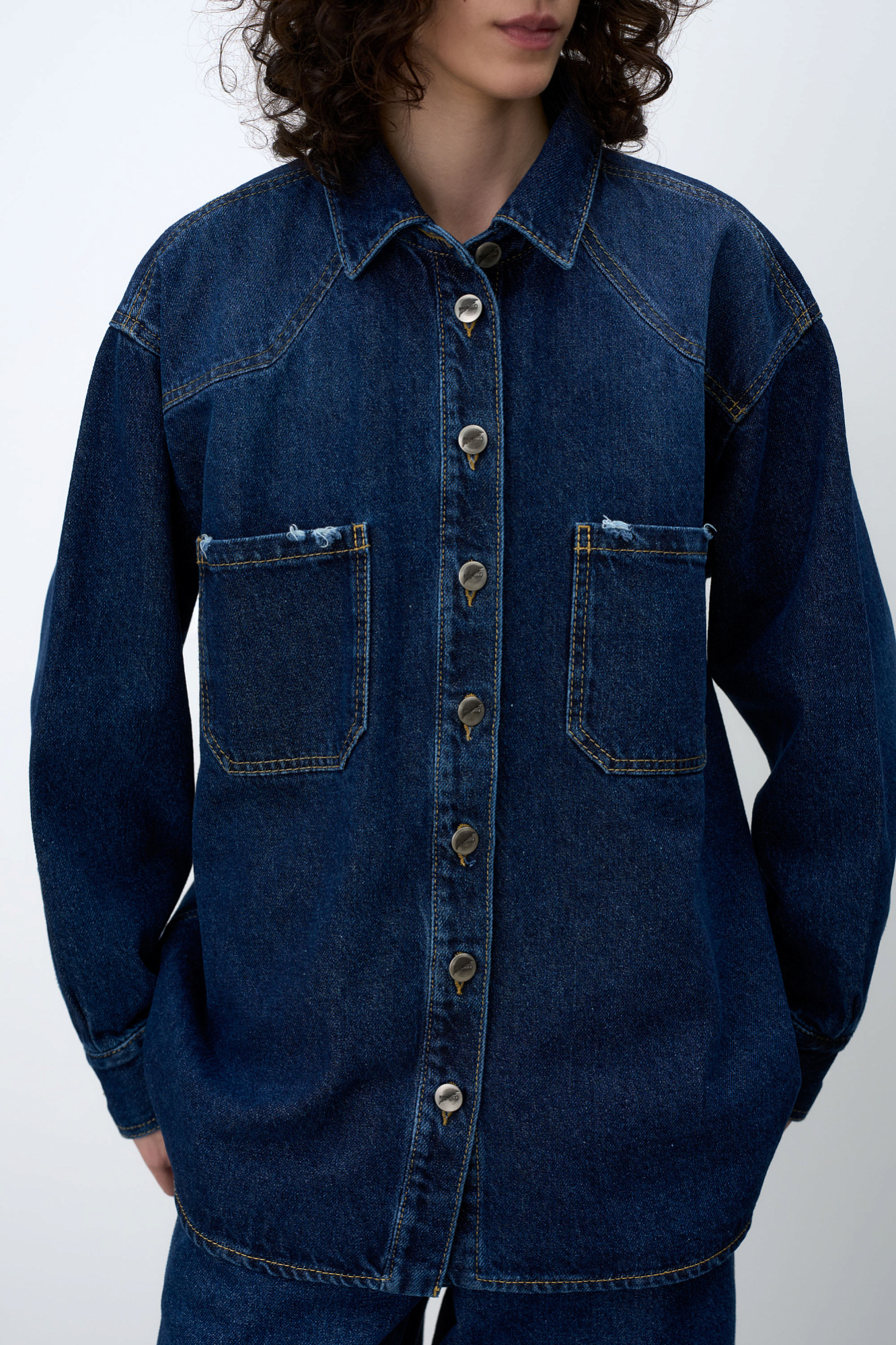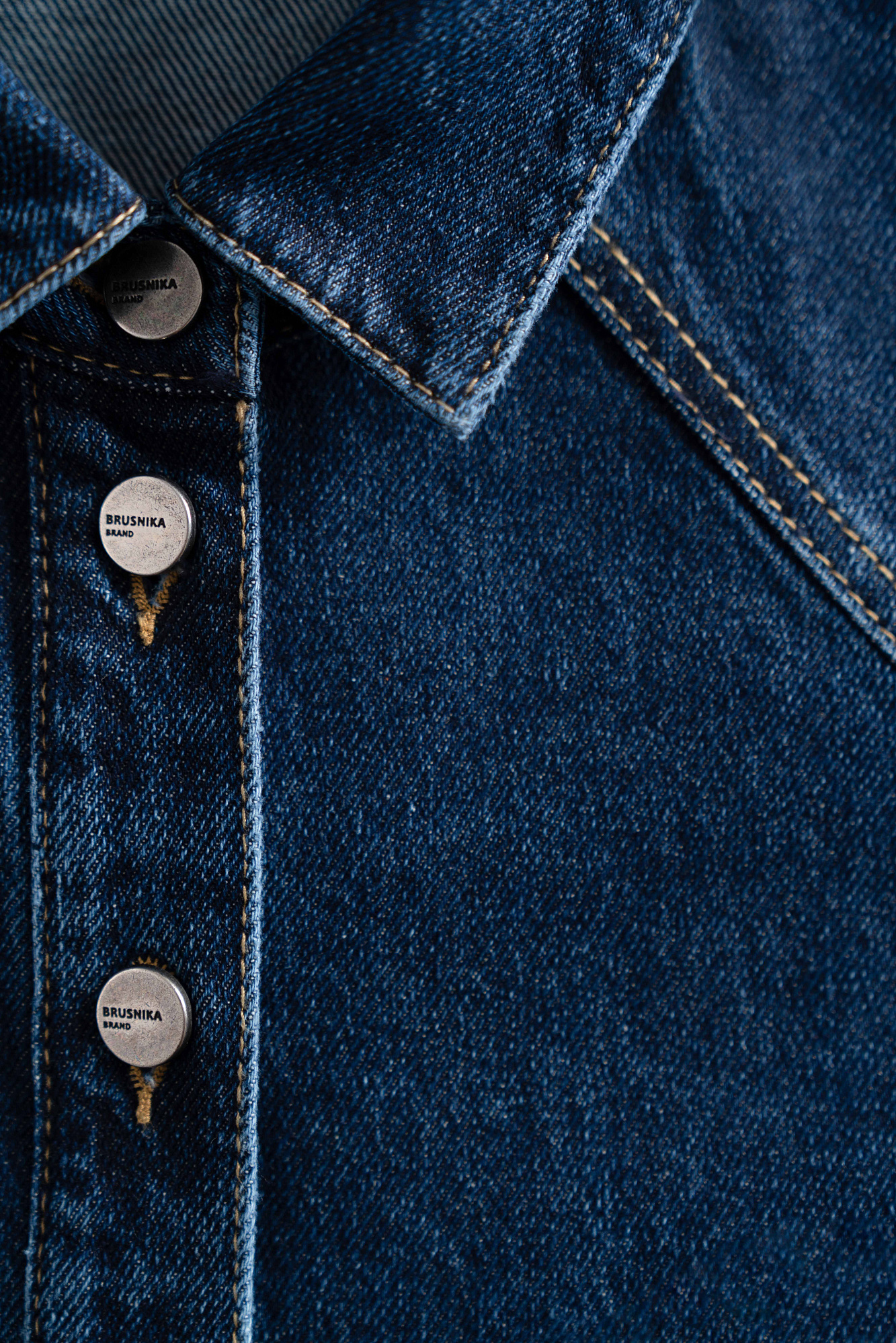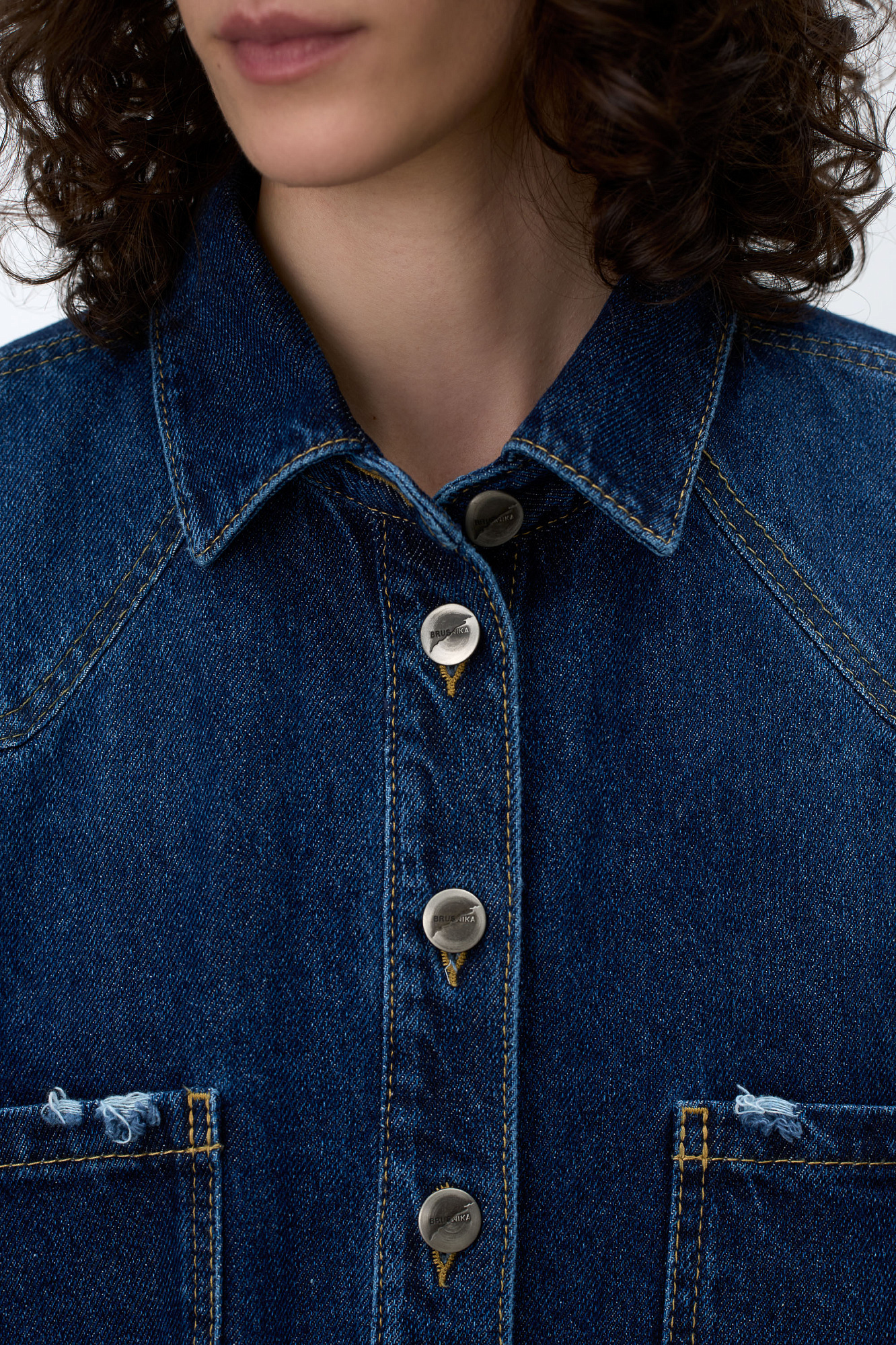 Джинсовая рубашка из 100% хлопка с накладными карманами на груди. Застежка на металлические пуговицы.
