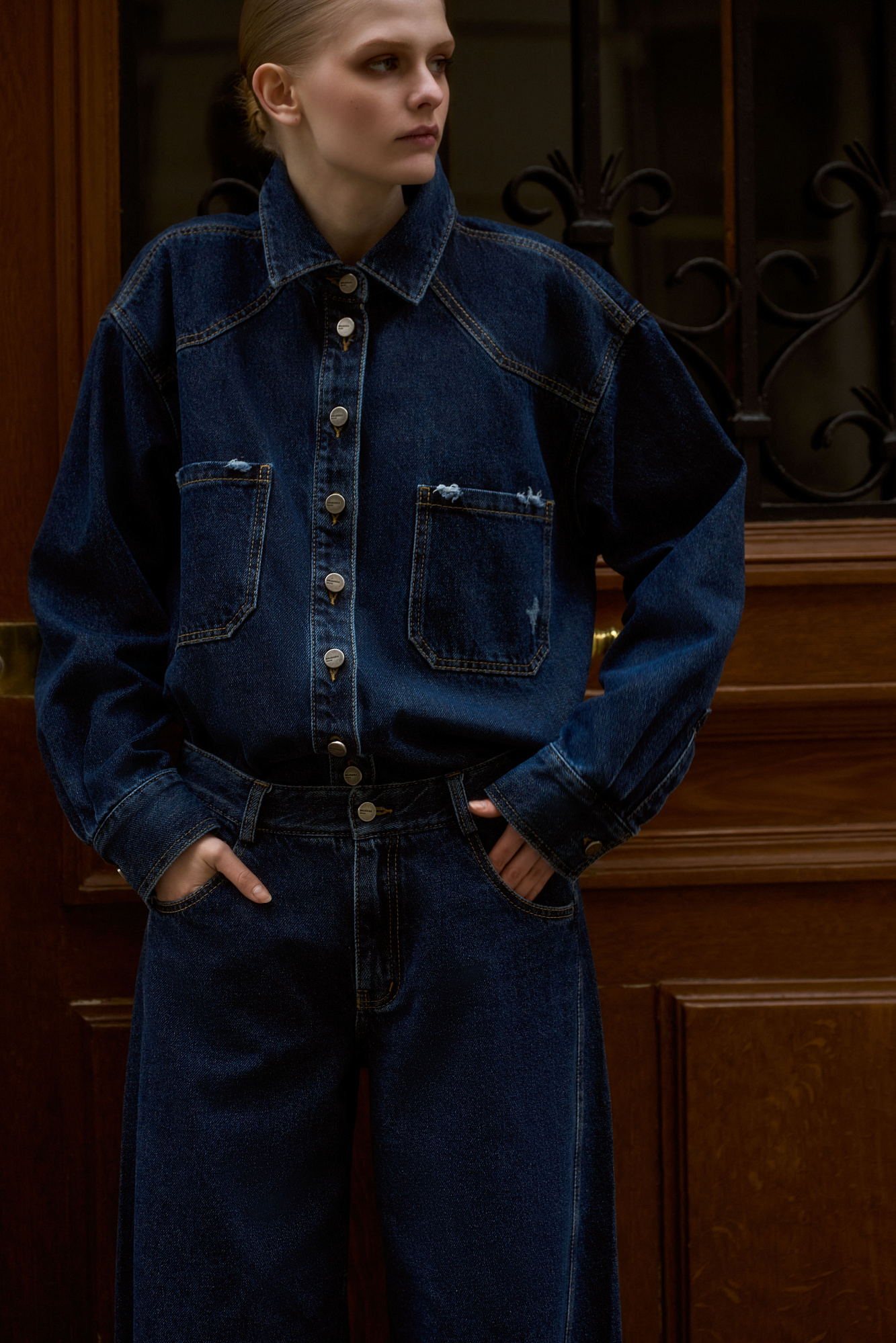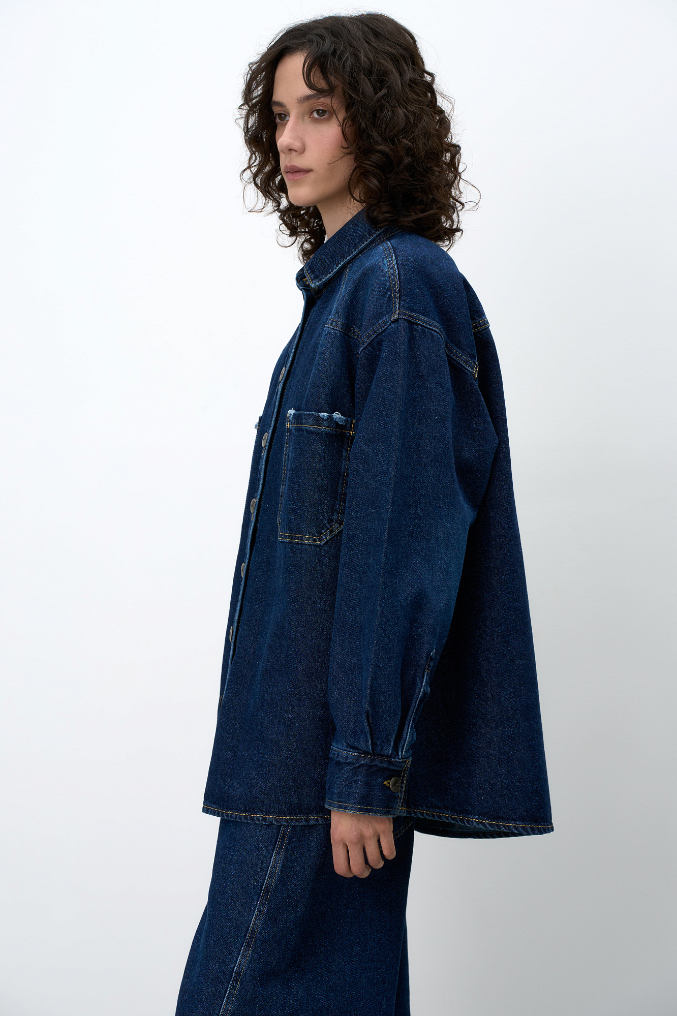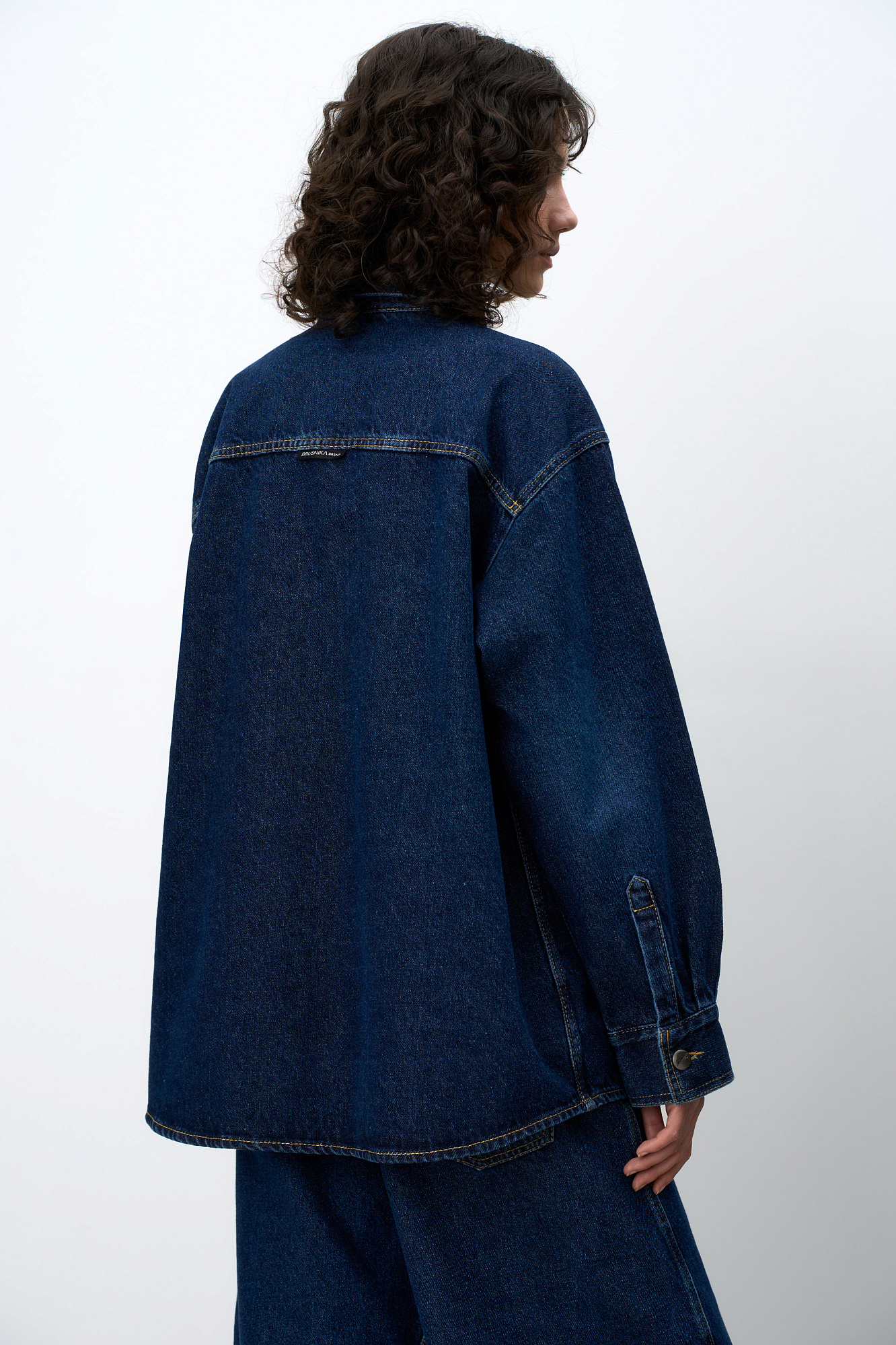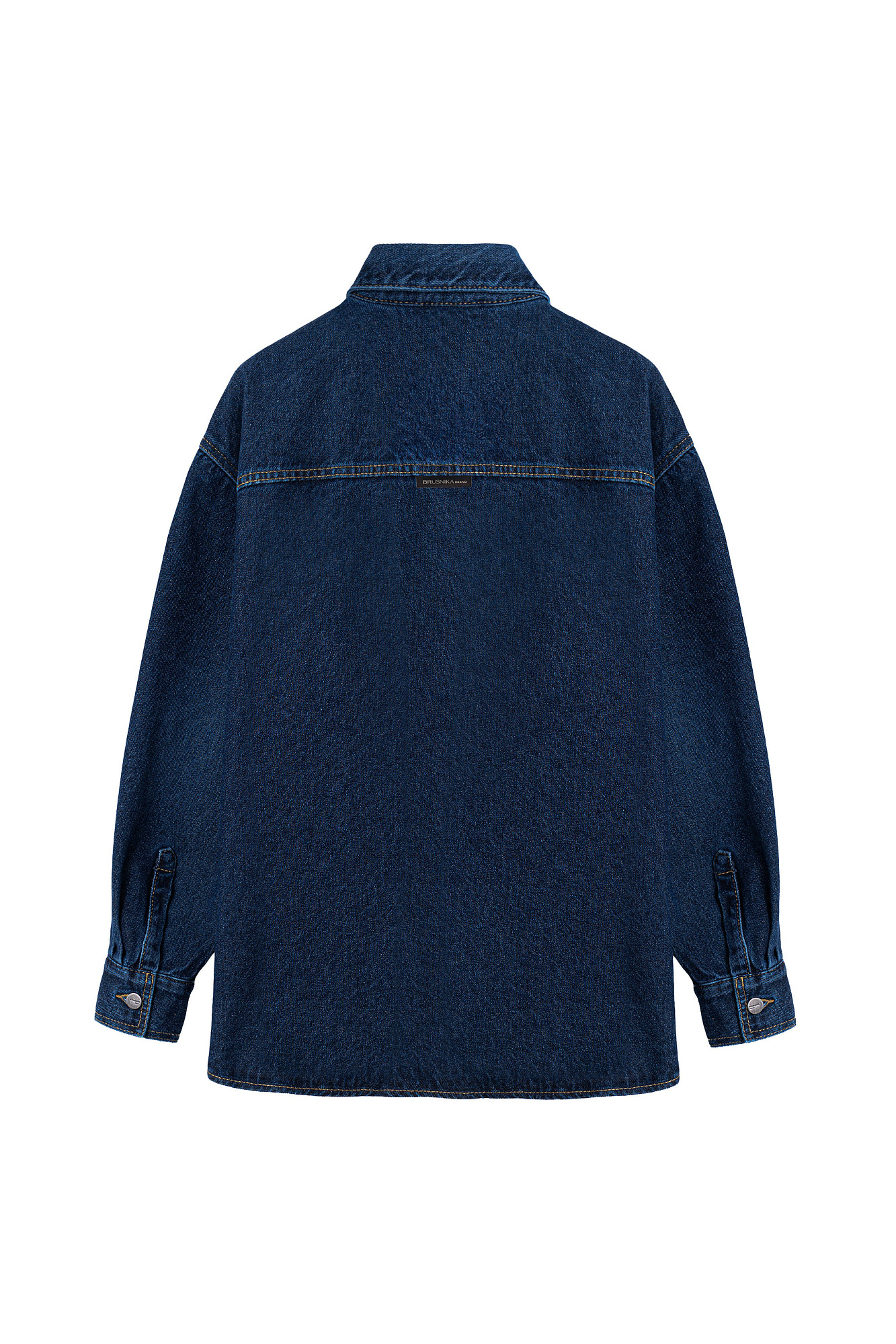 Джинсовая рубашка из 100% хлопка с накладными карманами на груди. Застежка на металлические пуговицы.